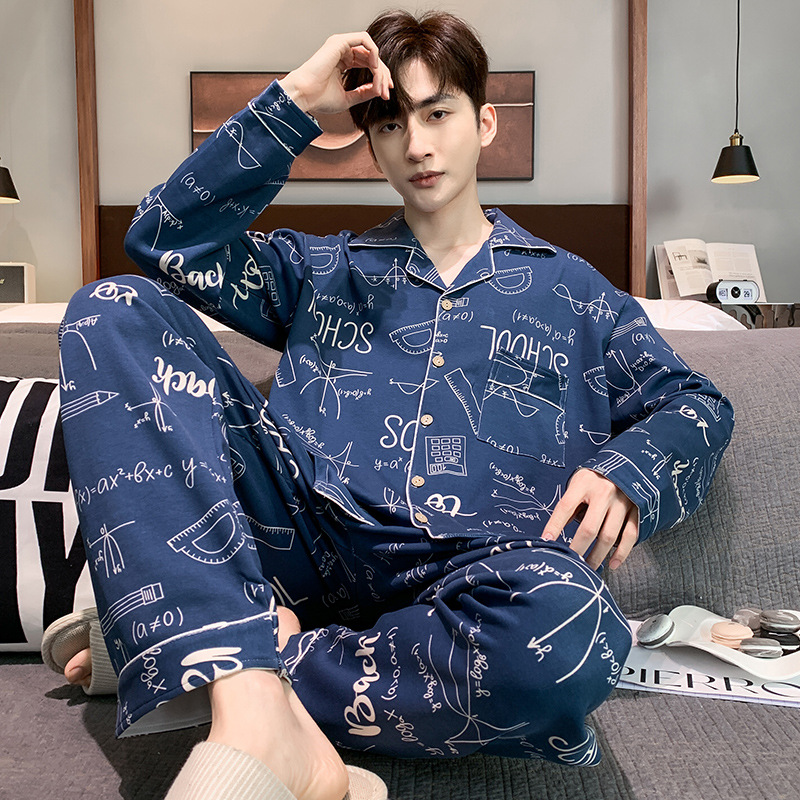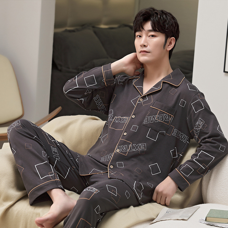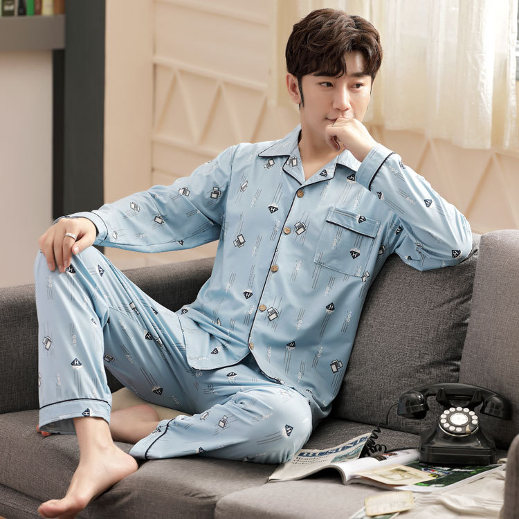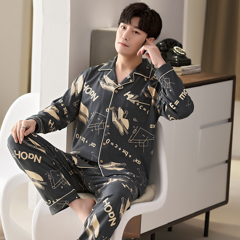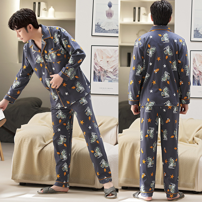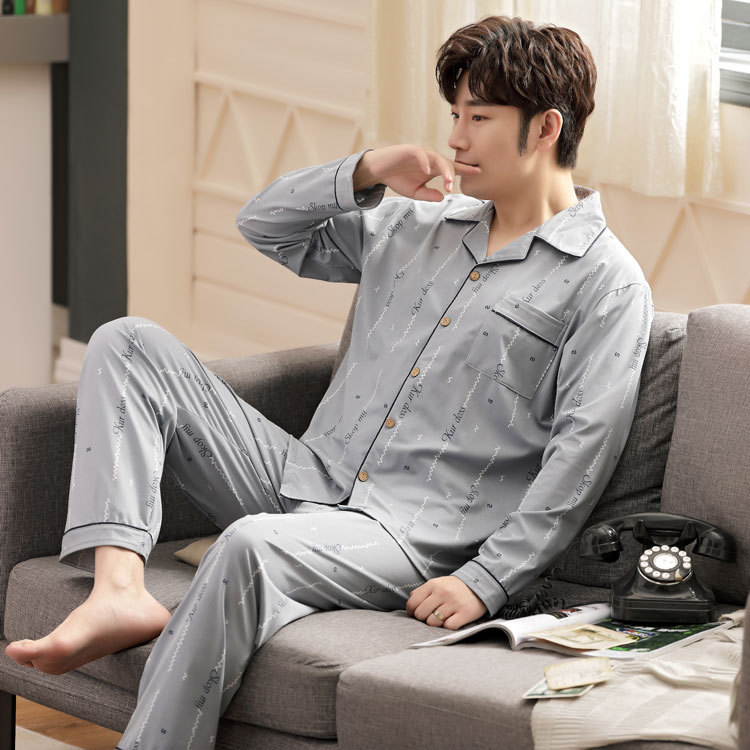 5XL 남성 잠옷 모조 면 긴 소매 봄과 가을 청소년 여름 날 소년 비료를 추가하여 280 진 홈 의류 증가스토어 가기