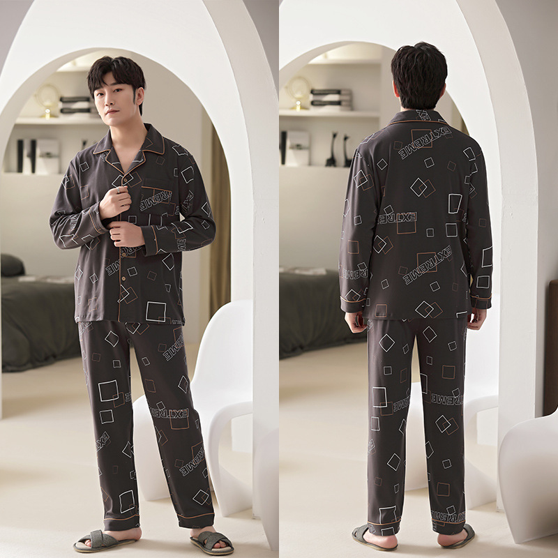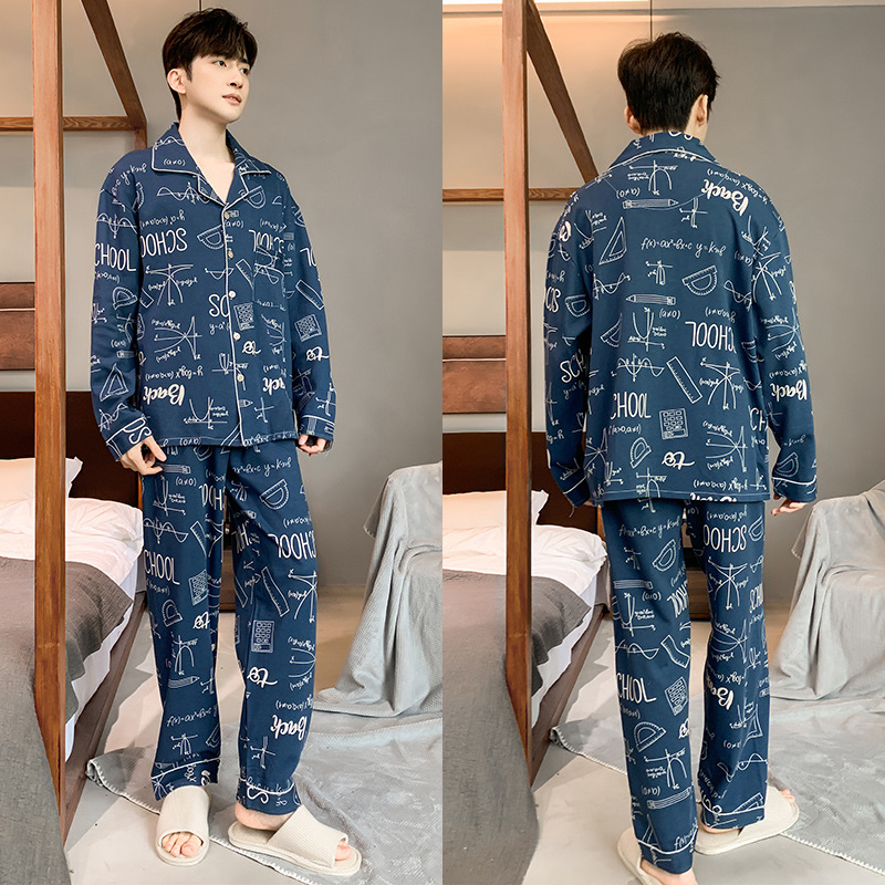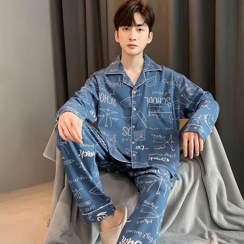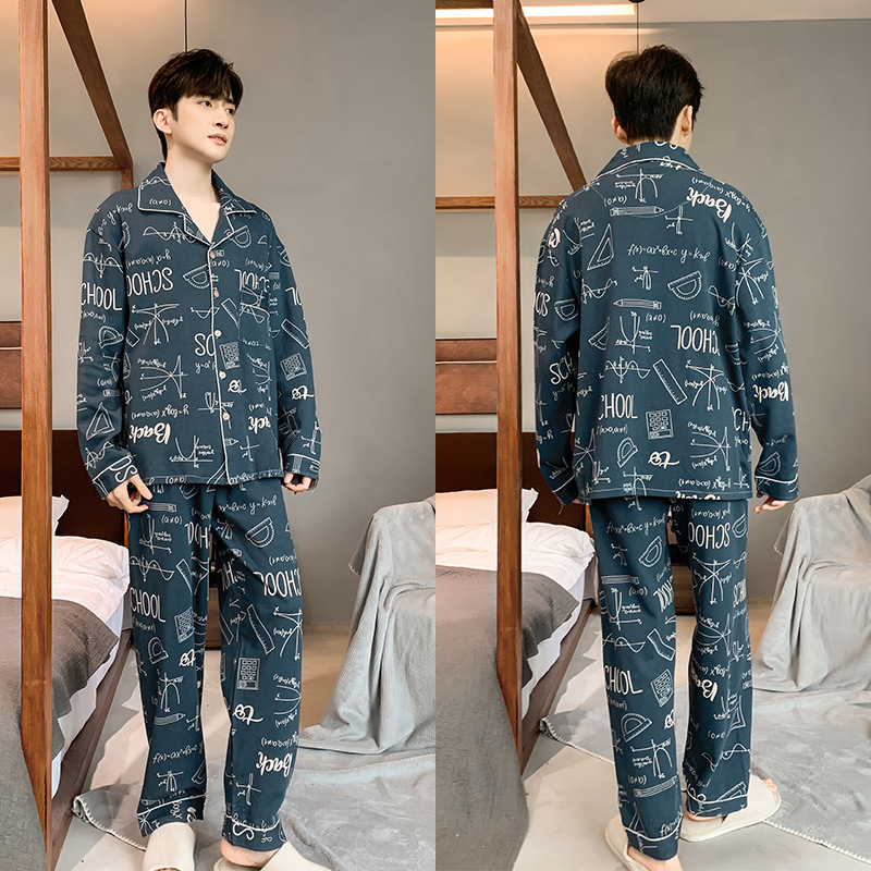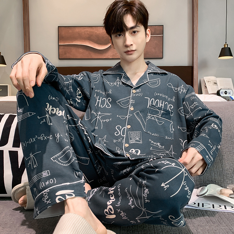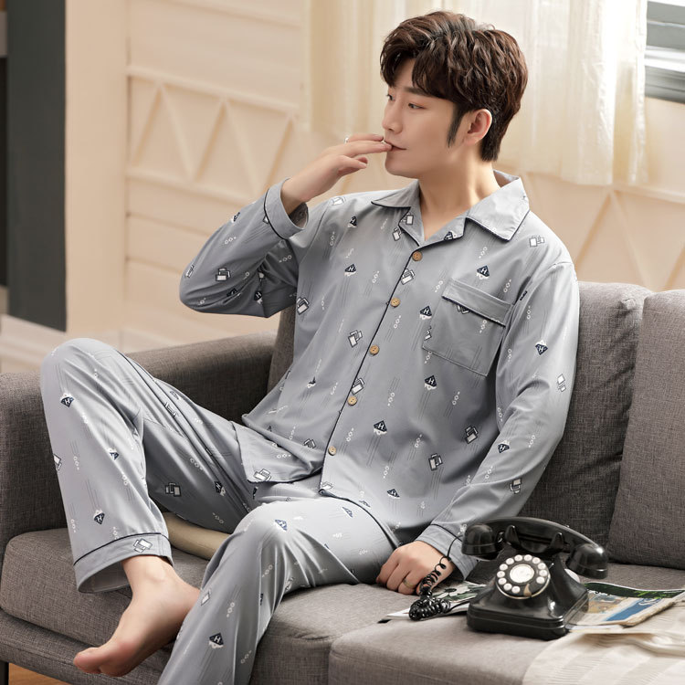5XL 남성 잠옷 모조 면 긴 소매 봄과 가을 청소년 여름 날 소년 비료를 추가하여 280 진 홈 의류 증가스토어 가기