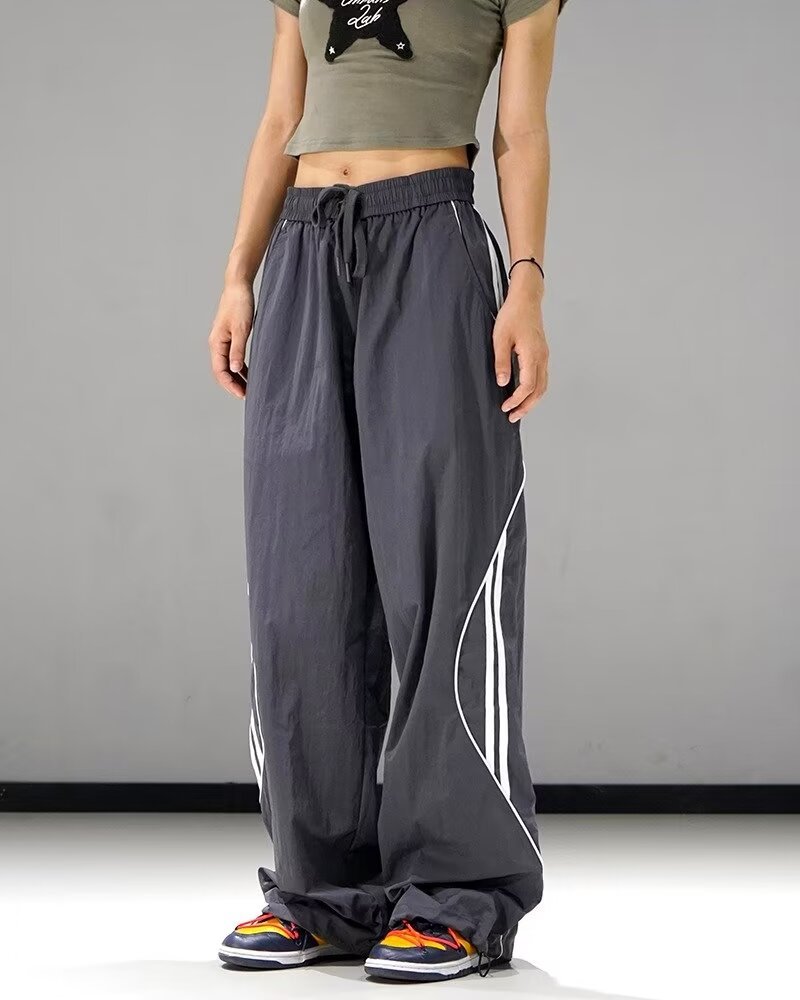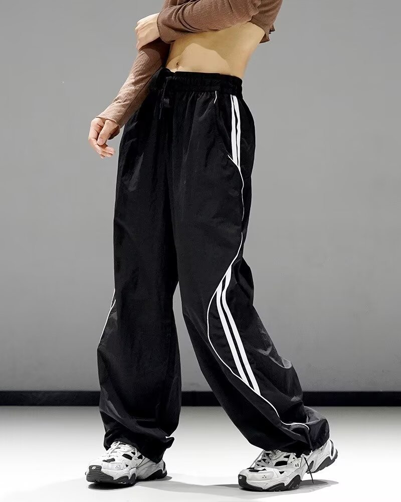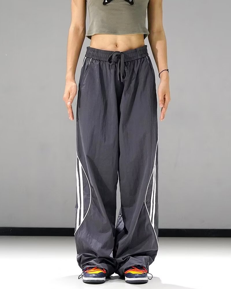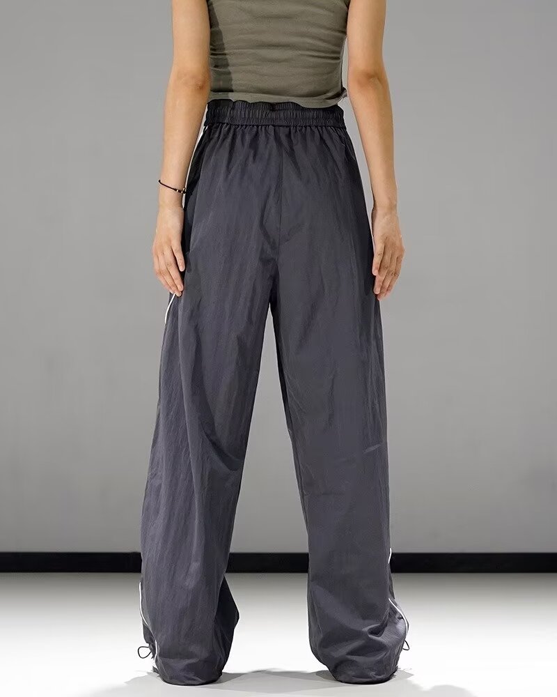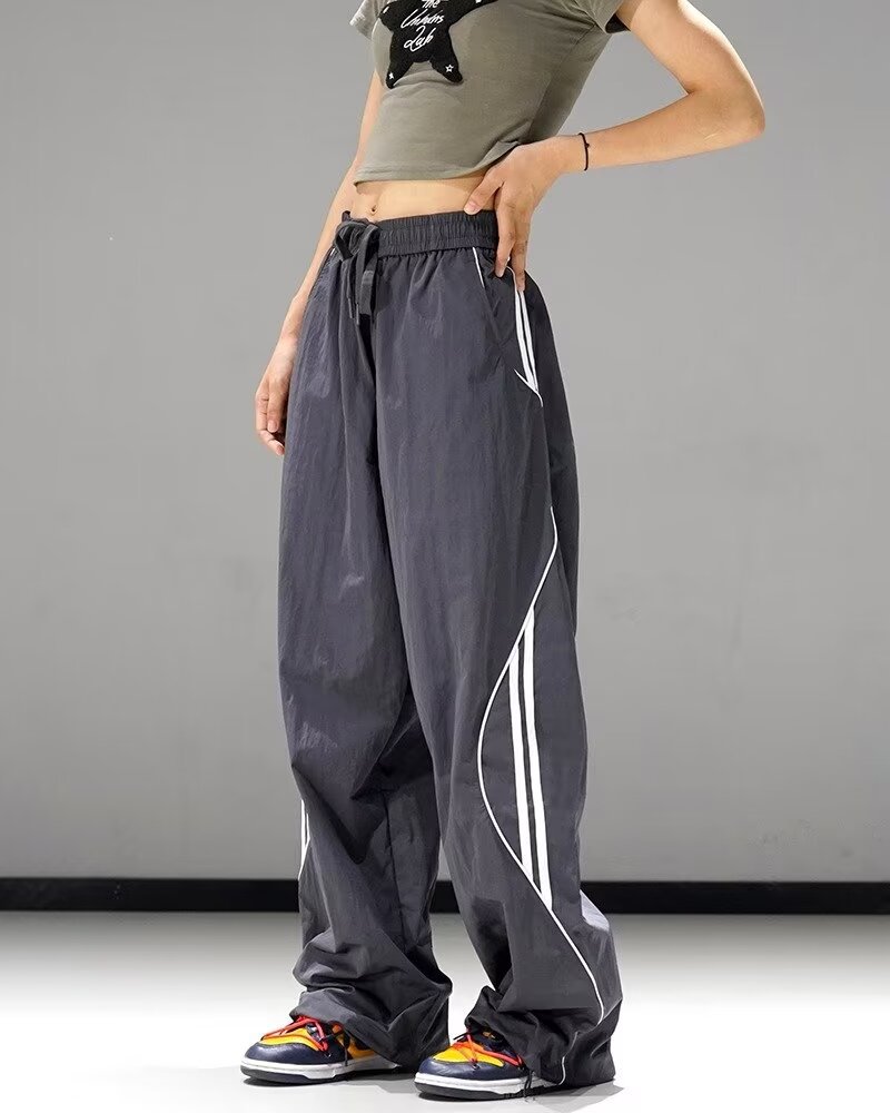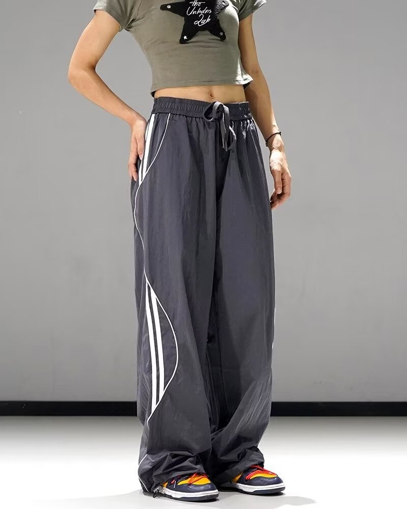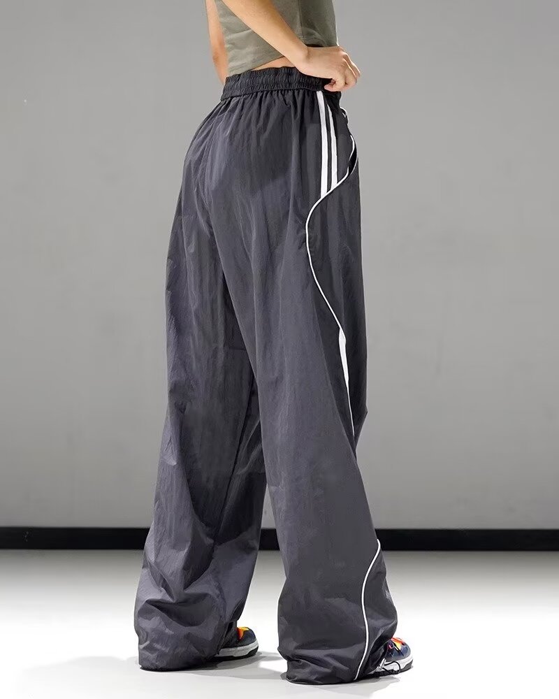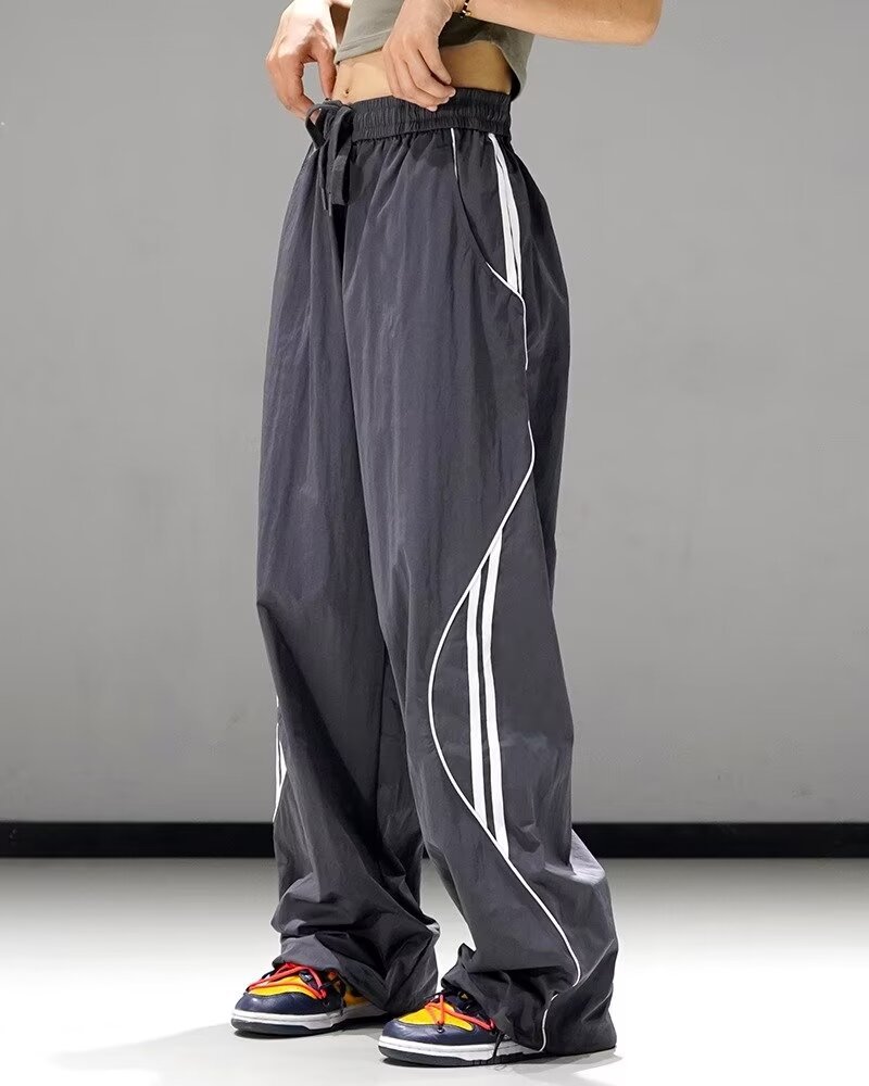 하이 스트리트 스트레이트 캐주얼 바지 여성의 봄과 여름 느슨한 얇은 스포츠 다리 러시 바지 여성용 줄무늬 빠른 건조 바지
