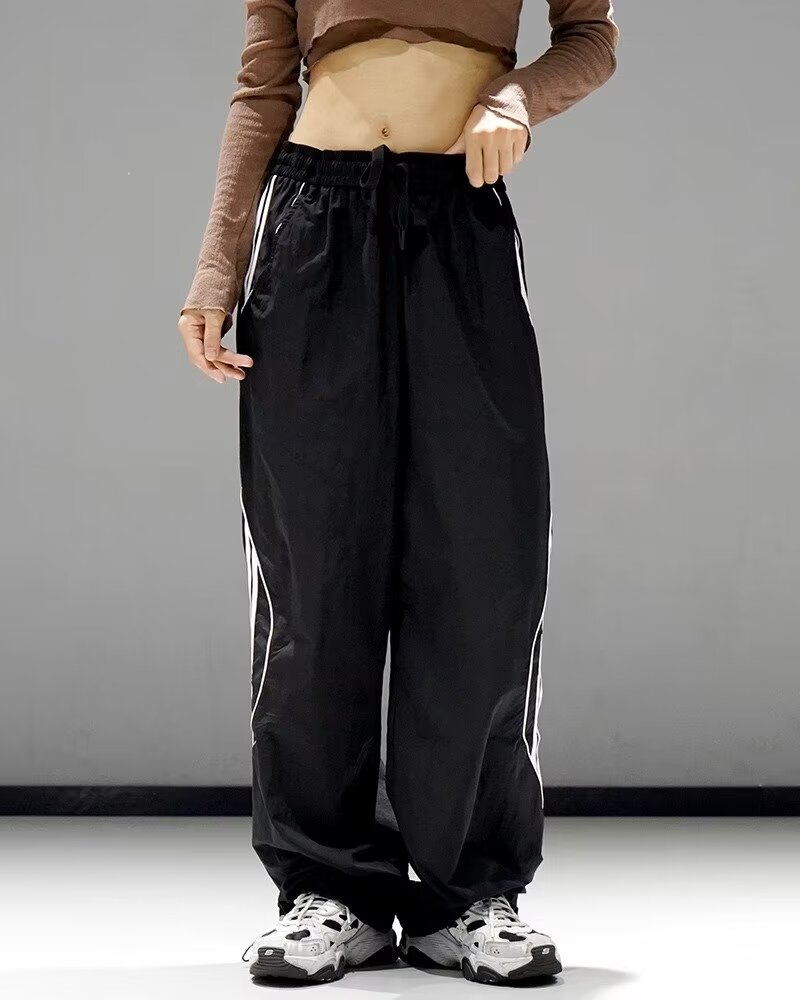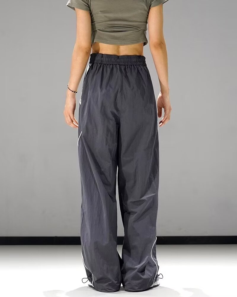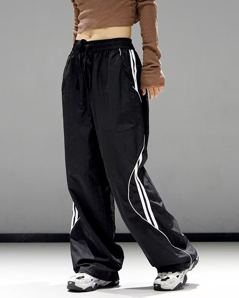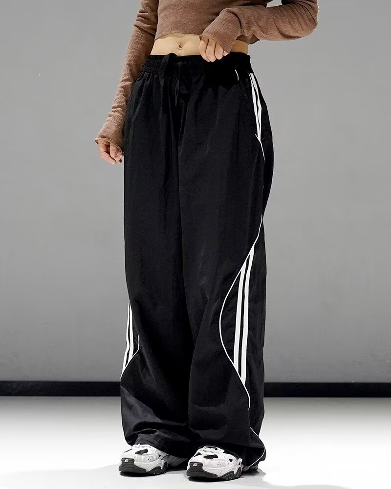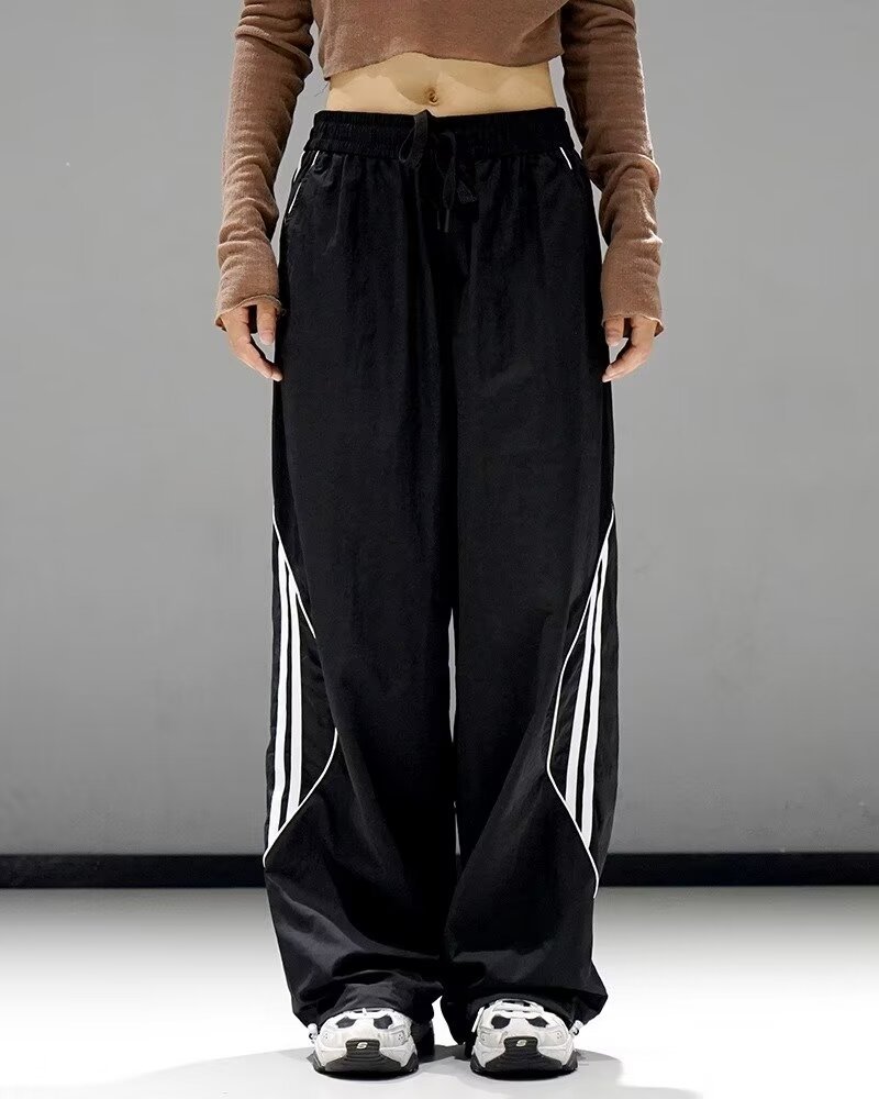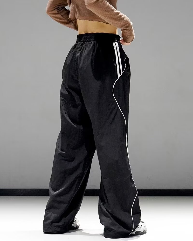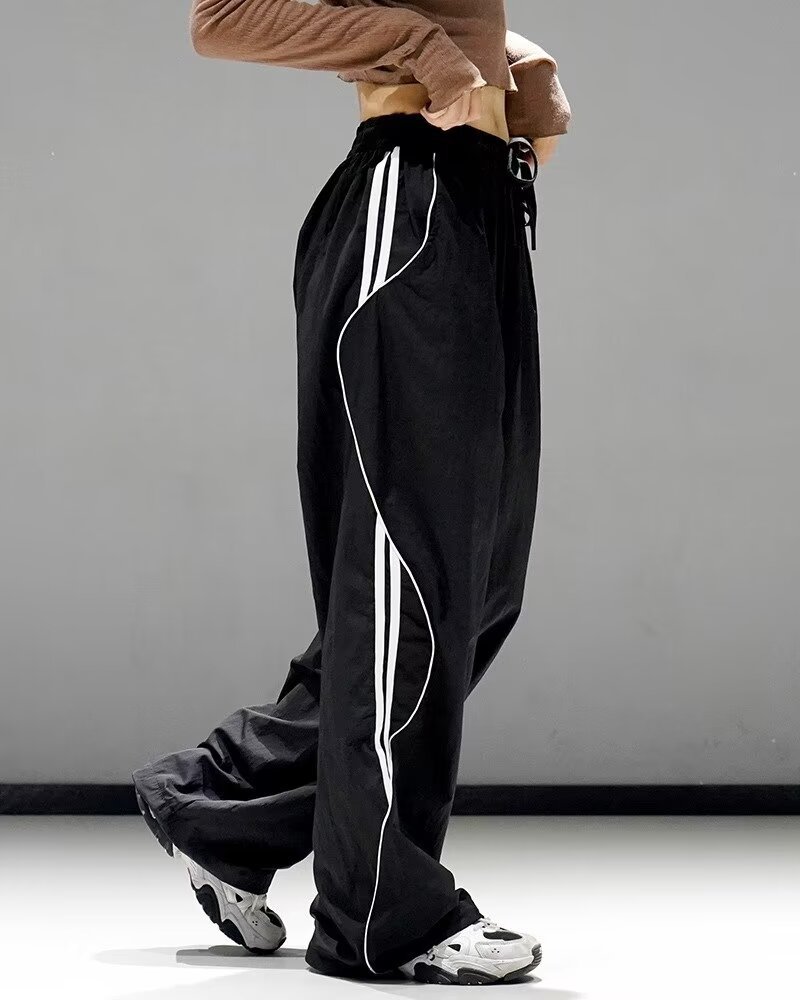 하이 스트리트 스트레이트 캐주얼 바지 여성의 봄과 여름 느슨한 얇은 스포츠 다리 러시 바지 여성용 줄무늬 빠른 건조 바지