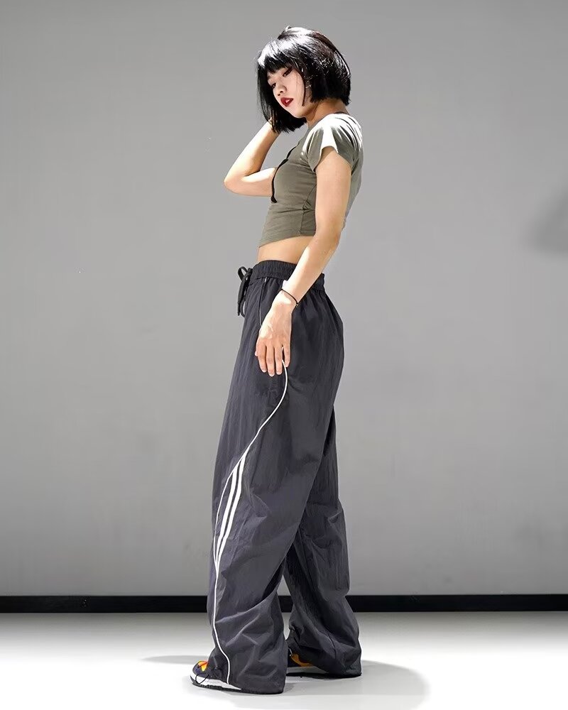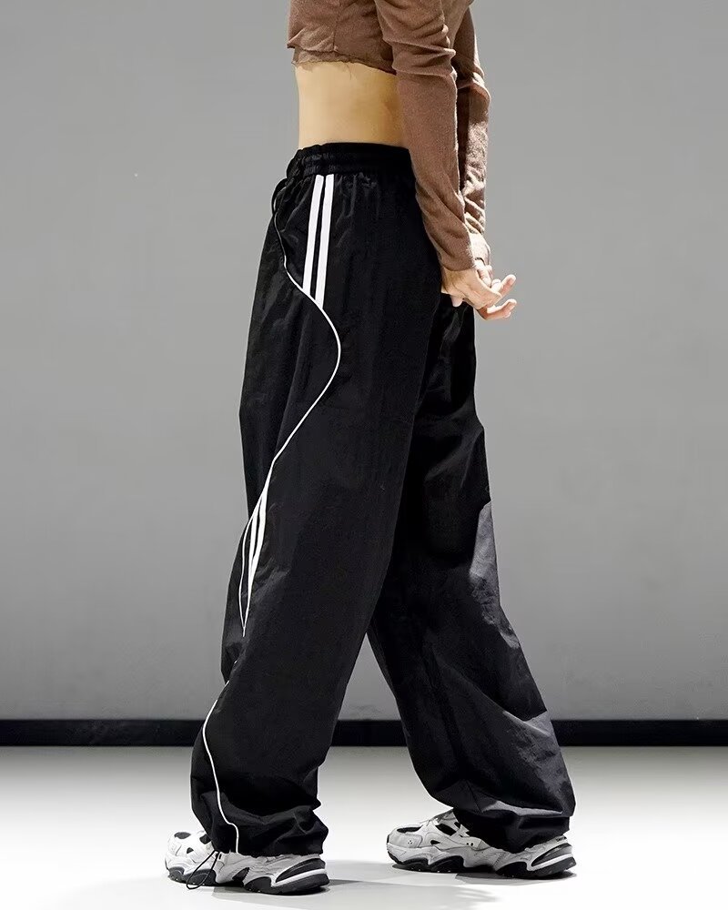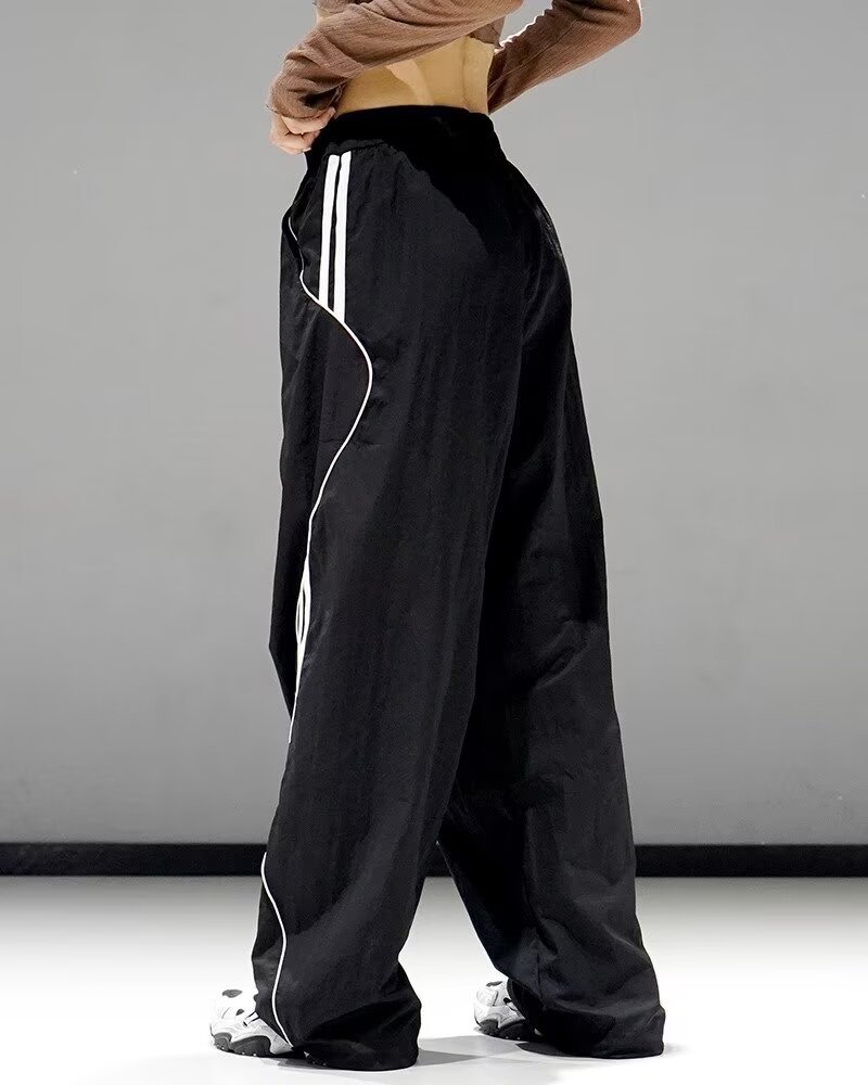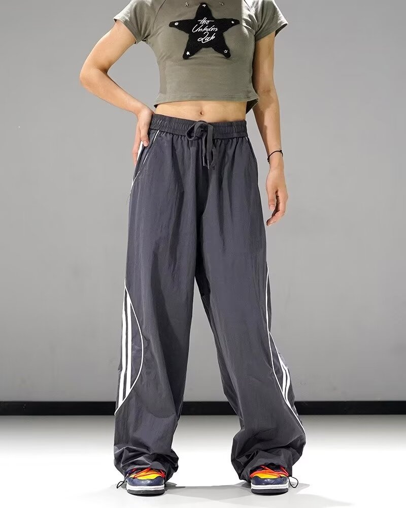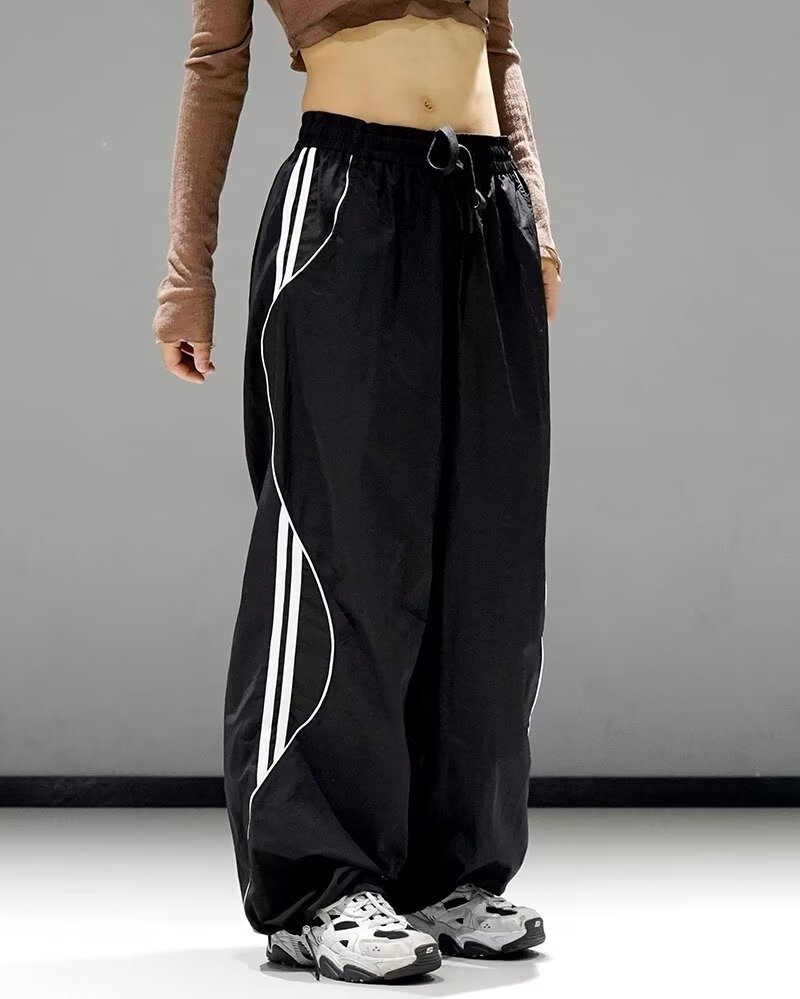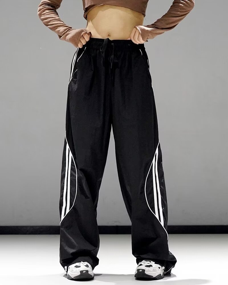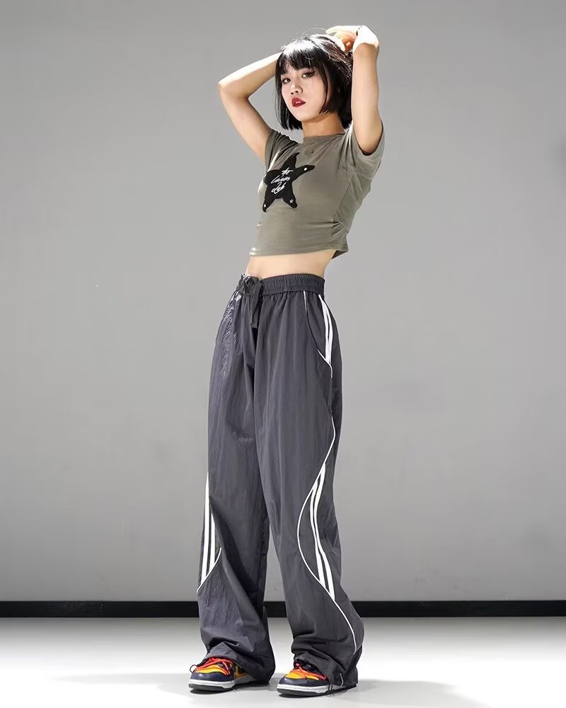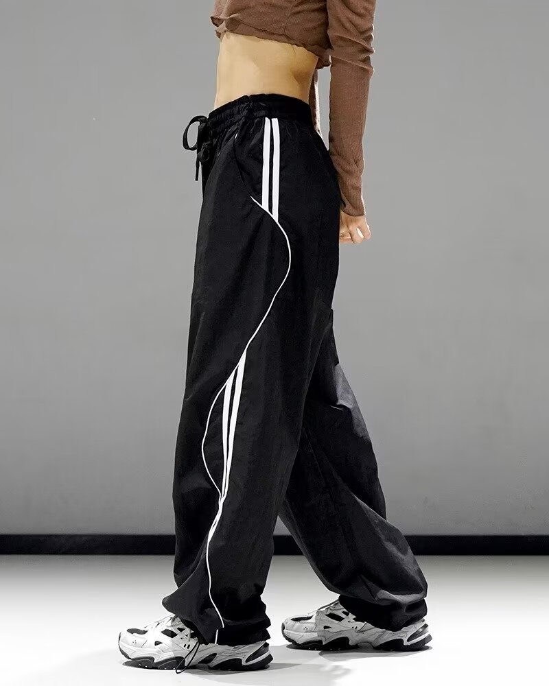 하이 스트리트 스트레이트 캐주얼 바지 여성의 봄과 여름 느슨한 얇은 스포츠 다리 러시 바지 여성용 줄무늬 빠른 건조 바지