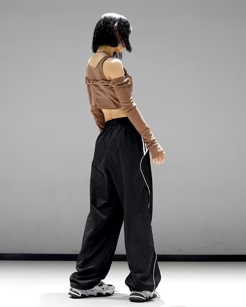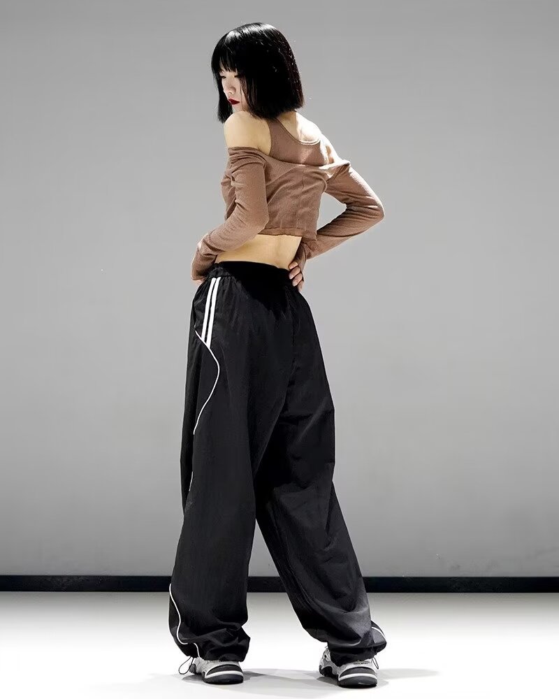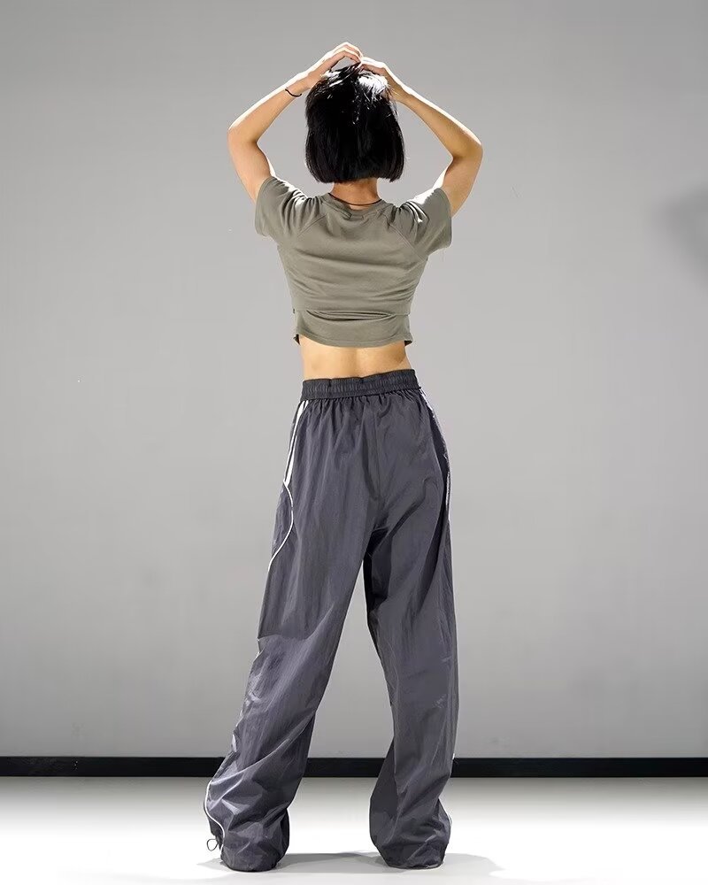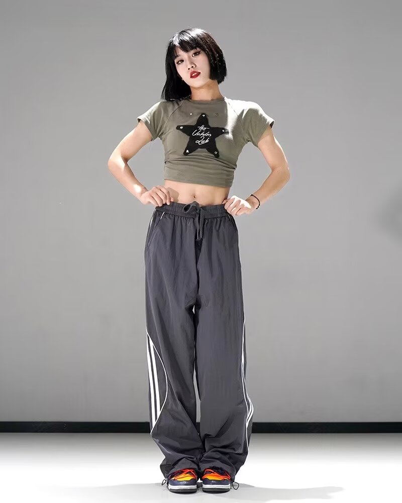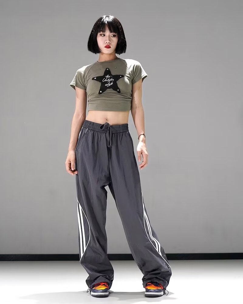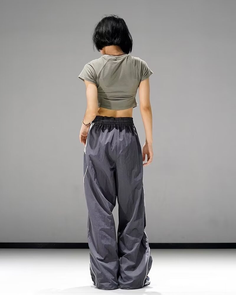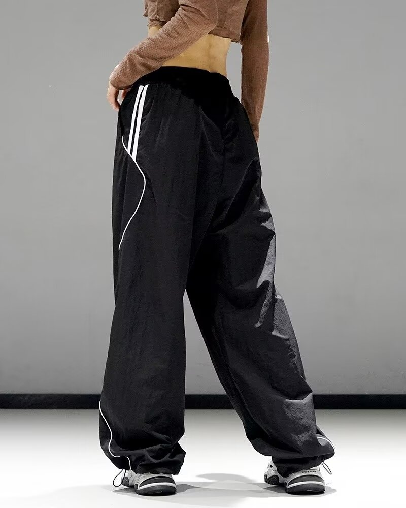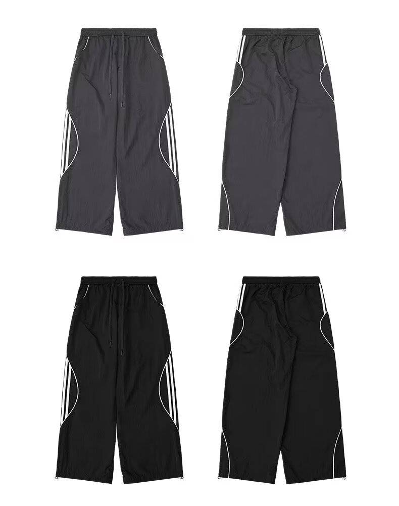하이 스트리트 스트레이트 캐주얼 바지 여성의 봄과 여름 느슨한 얇은 스포츠 다리 러시 바지 여성용 줄무늬 빠른 건조 바지