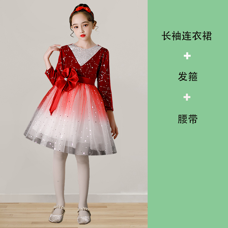 • 180-빨간 거즈 스커트 여성용 긴 소매