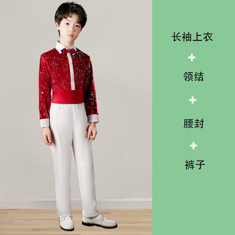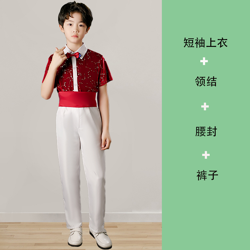 유치원 의류 어린이 합창 공연 의류 초중고 학생 백밴드 바지 레드 스타 스파클링 시 암송 공연 의류