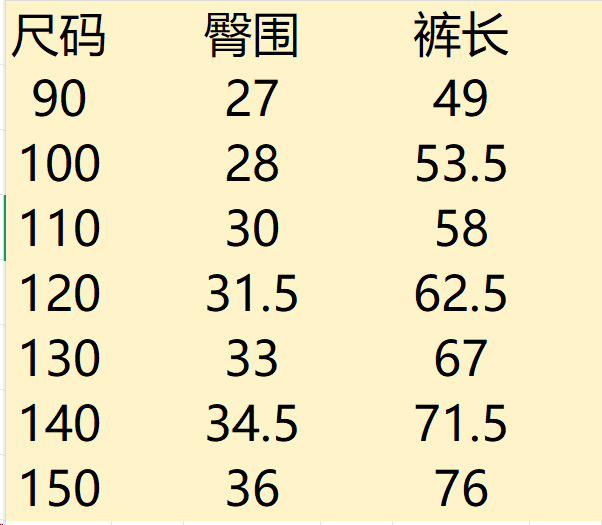 尺码 臀围 裤长