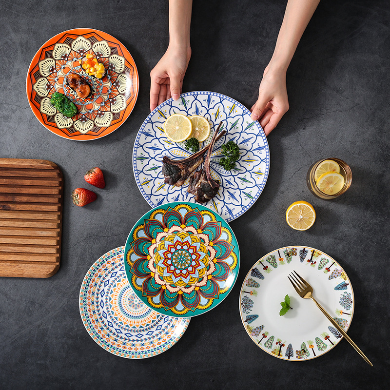 보헤미안 스타일 창조적 인 세라믹 접시 아침 식사 접시 인터넷 축하 샐러드 플레이트 독특한 홈 디저트 스시 플레이트