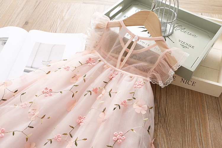 2025 여름 어린이 입체 꽃 메쉬 드레스 한국 스타일 서양식 소녀 베이비 조끼 a 라인 공주 드레스스토어 가기