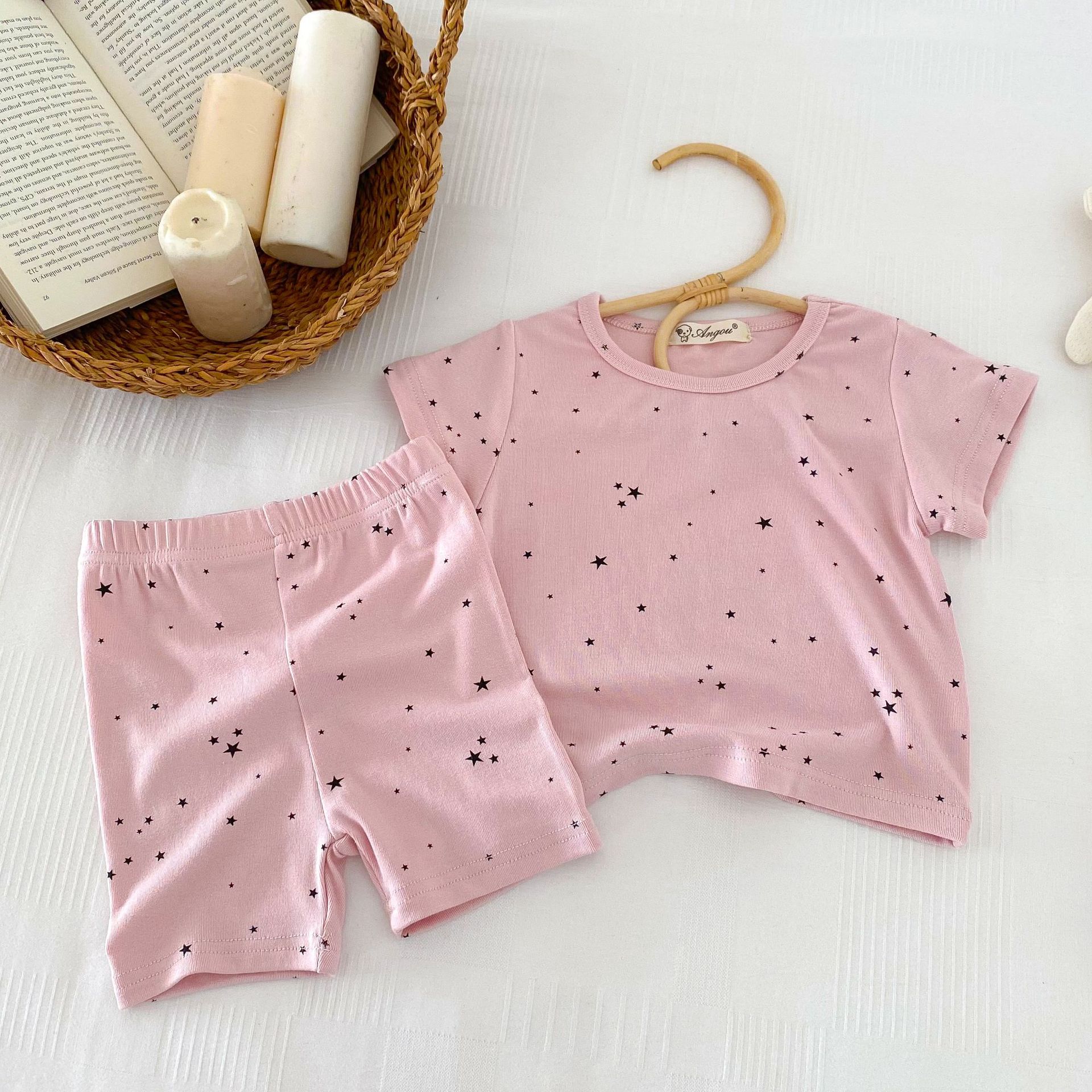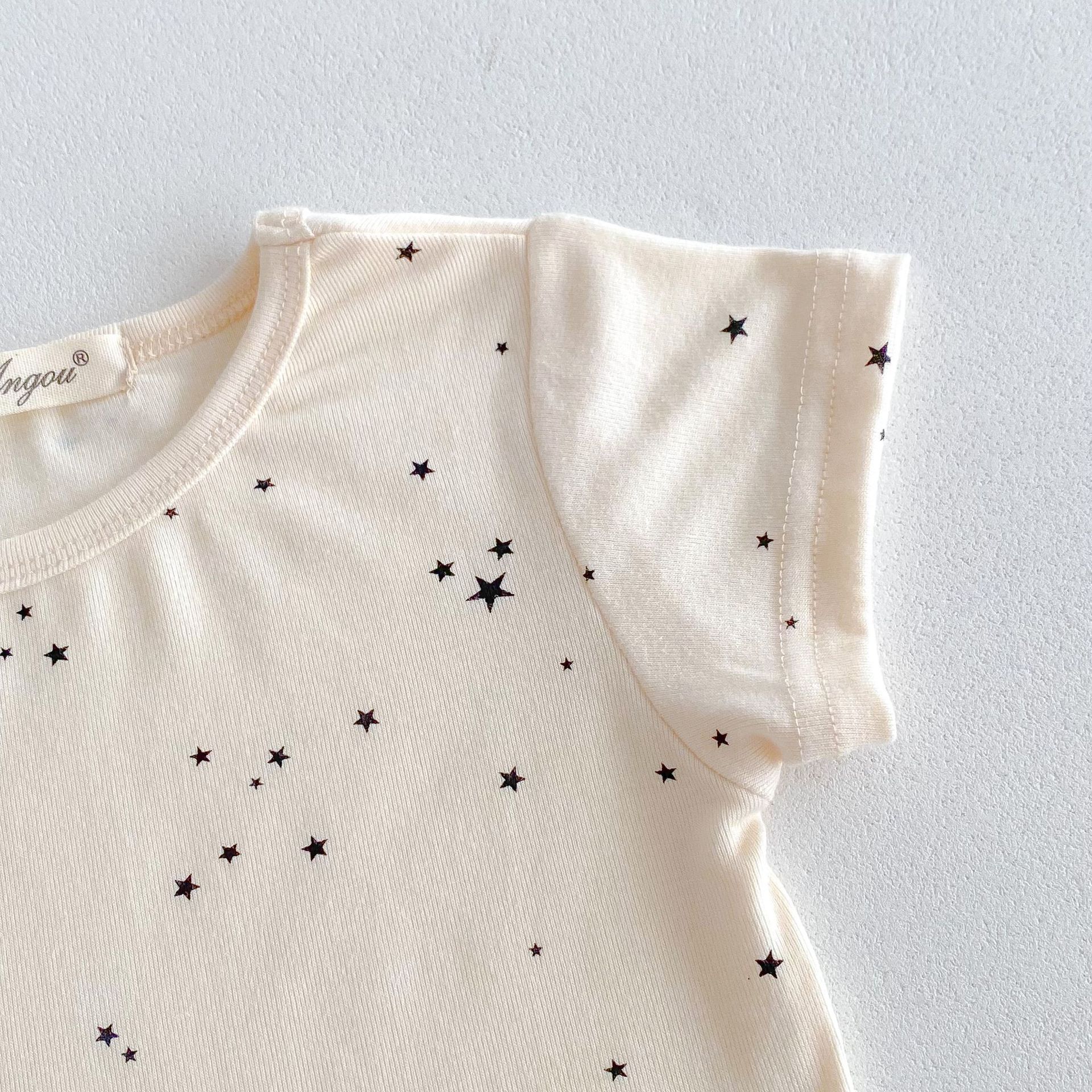 2026년 여름 신상품, 한국 스타일의 유아 여아용 홈웨어, 얇은 면 소재, 작은 별무늬 프린트, 여아용 에어컨 의류 세트