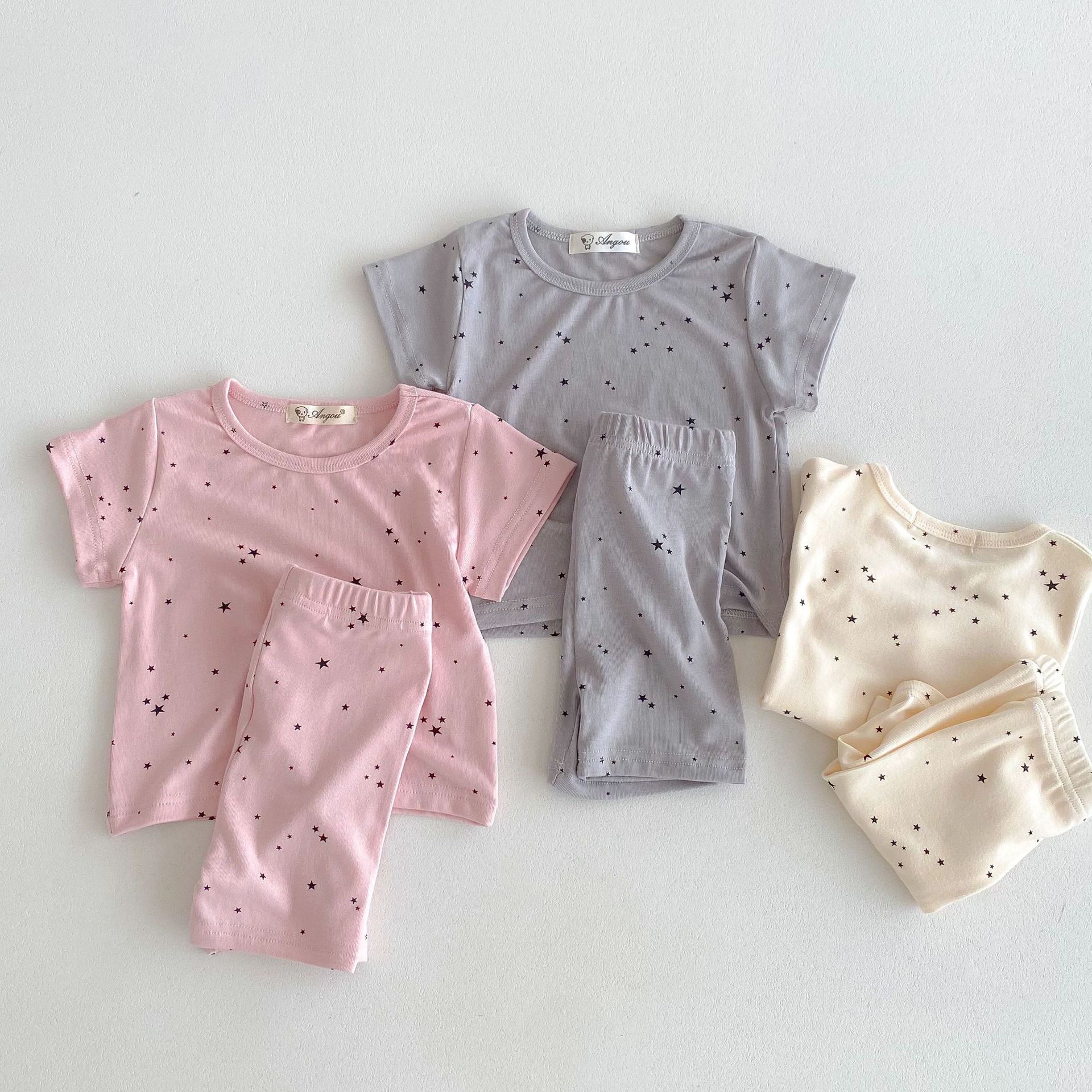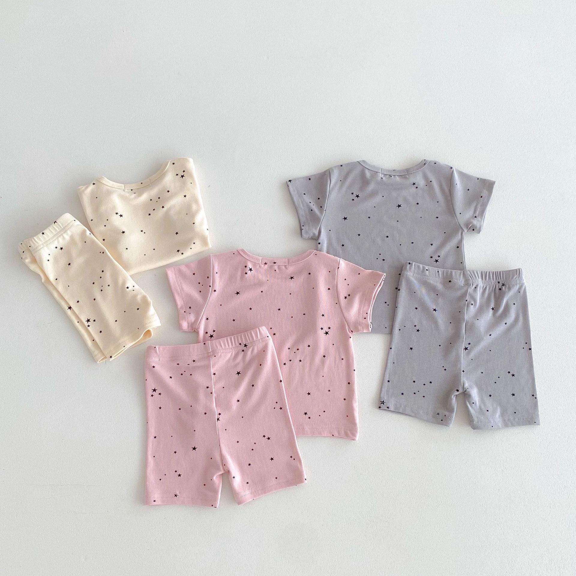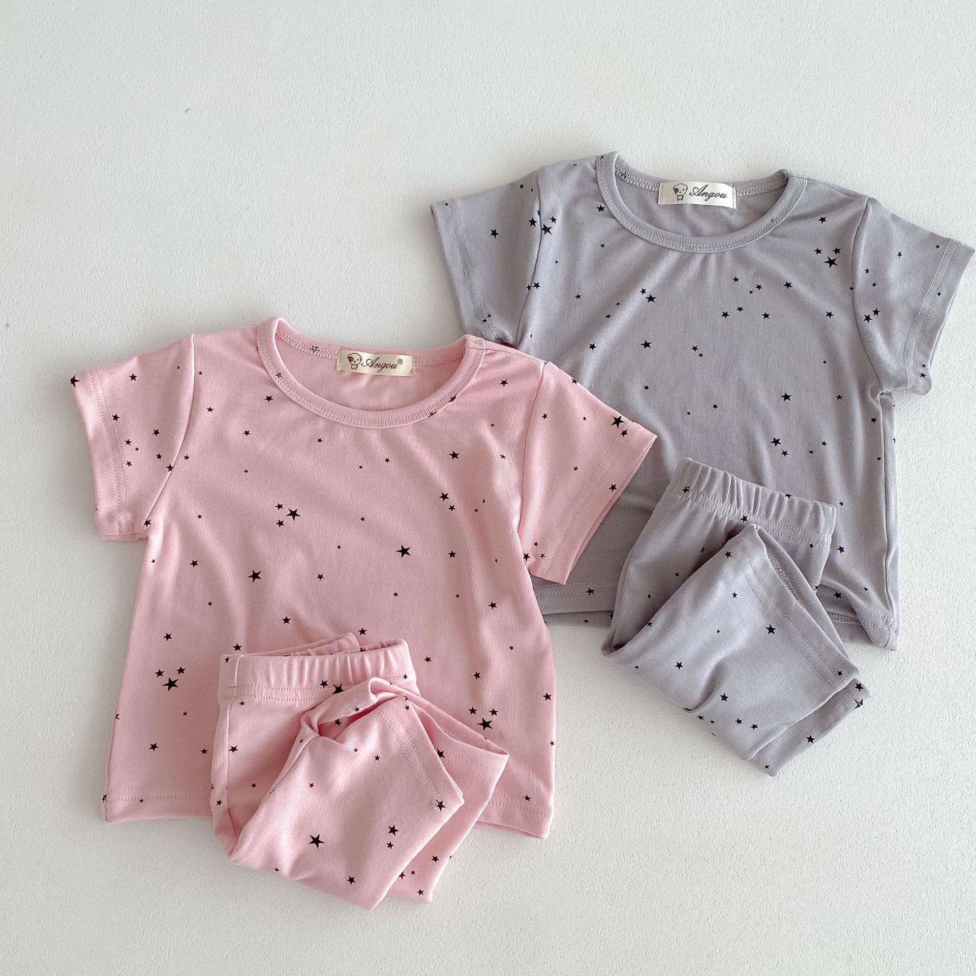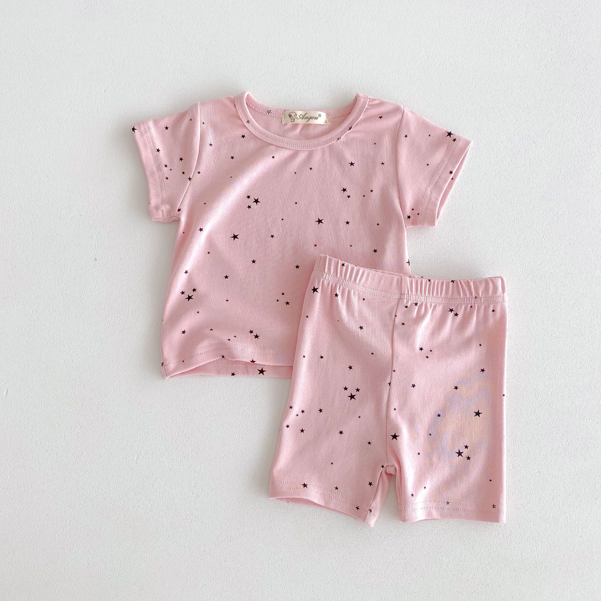 2026년 여름 신상품, 한국 스타일의 유아 여아용 홈웨어, 얇은 면 소재, 작은 별무늬 프린트, 여아용 에어컨 의류 세트스토어 가기