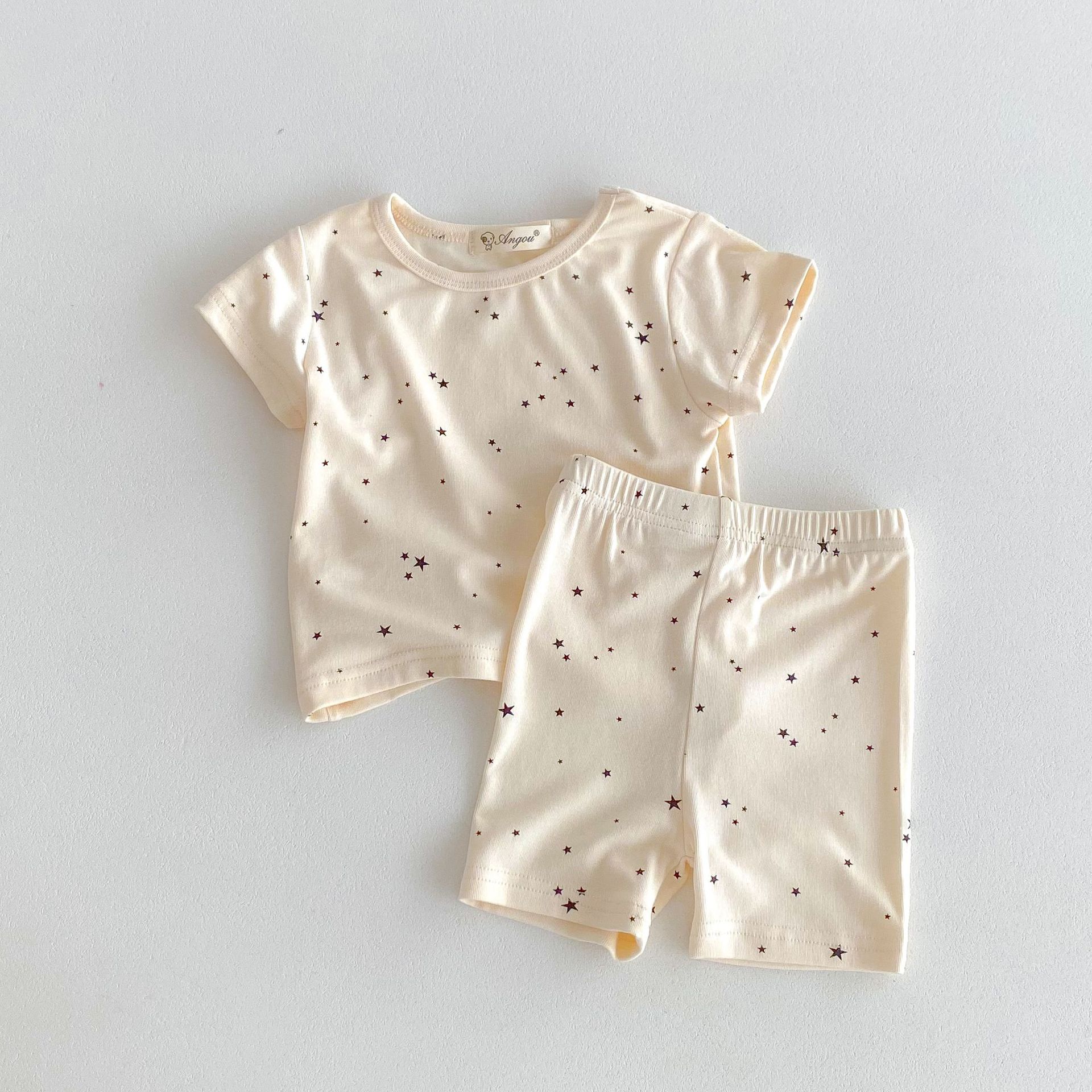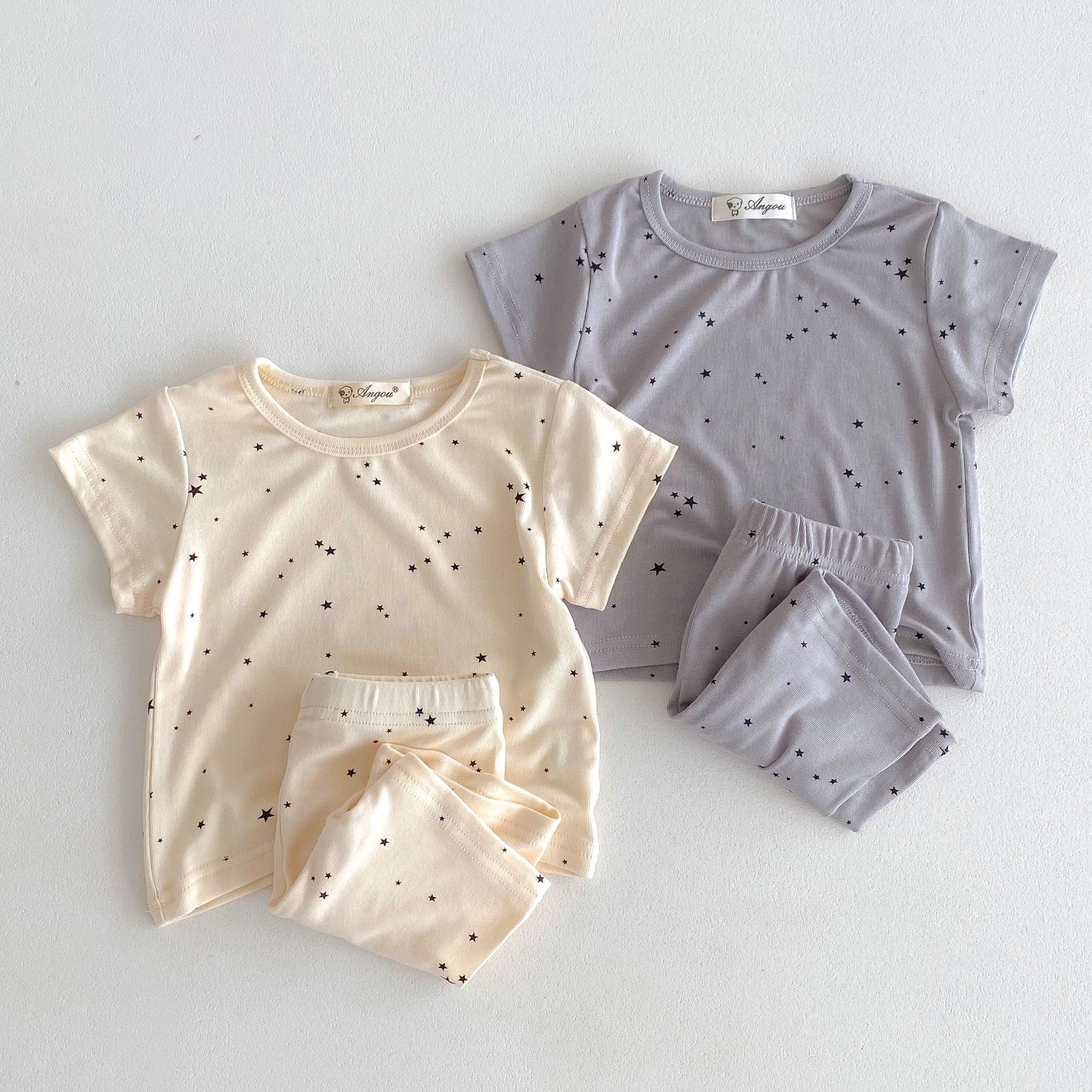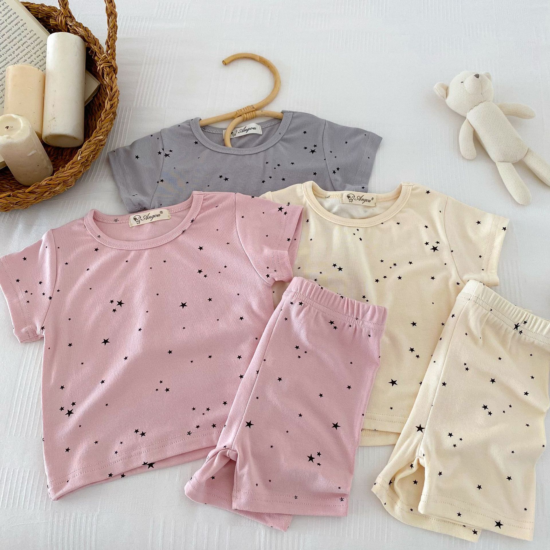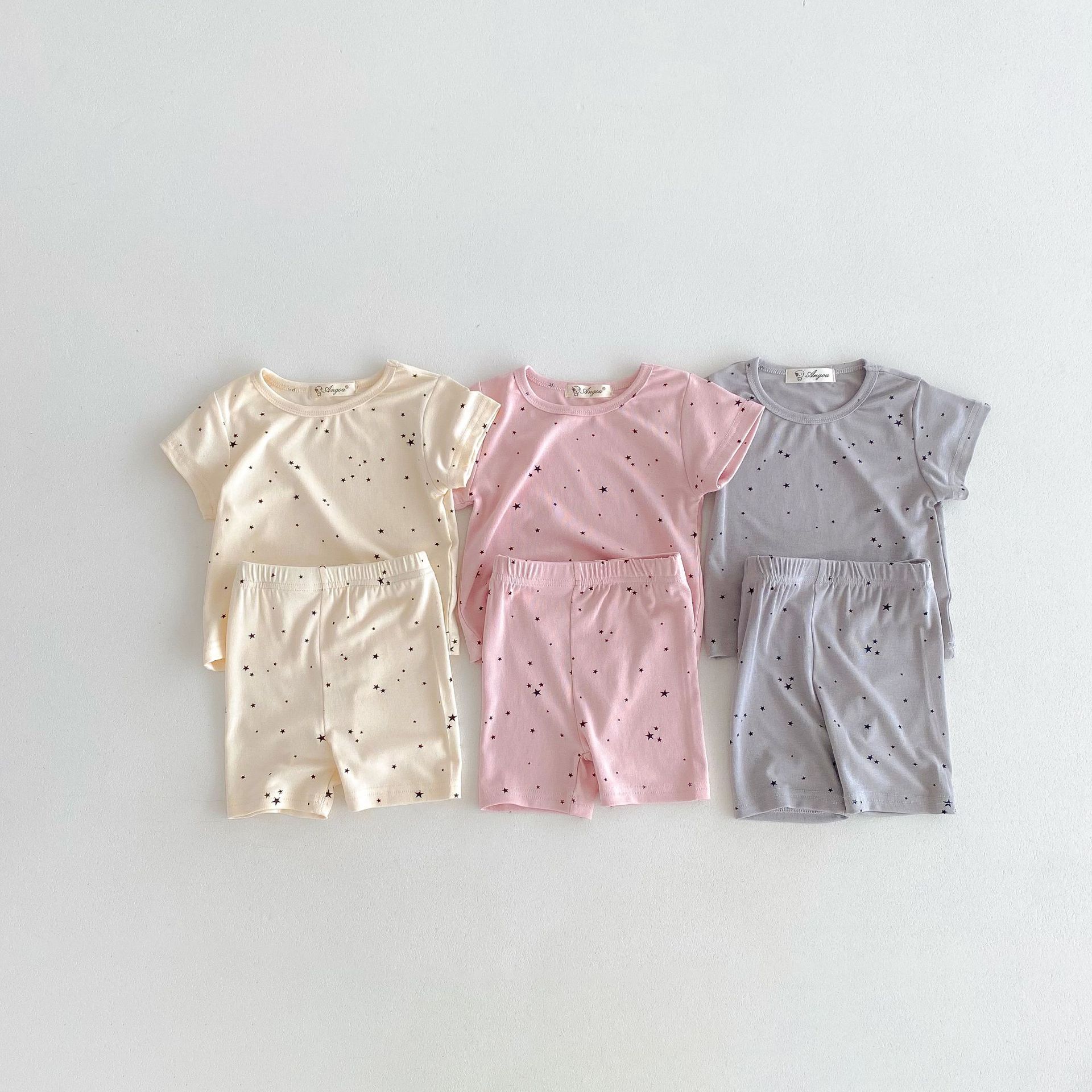 2026년 여름 신상품, 한국 스타일의 유아 여아용 홈웨어, 얇은 면 소재, 작은 별무늬 프린트, 여아용 에어컨 의류 세트스토어 가기