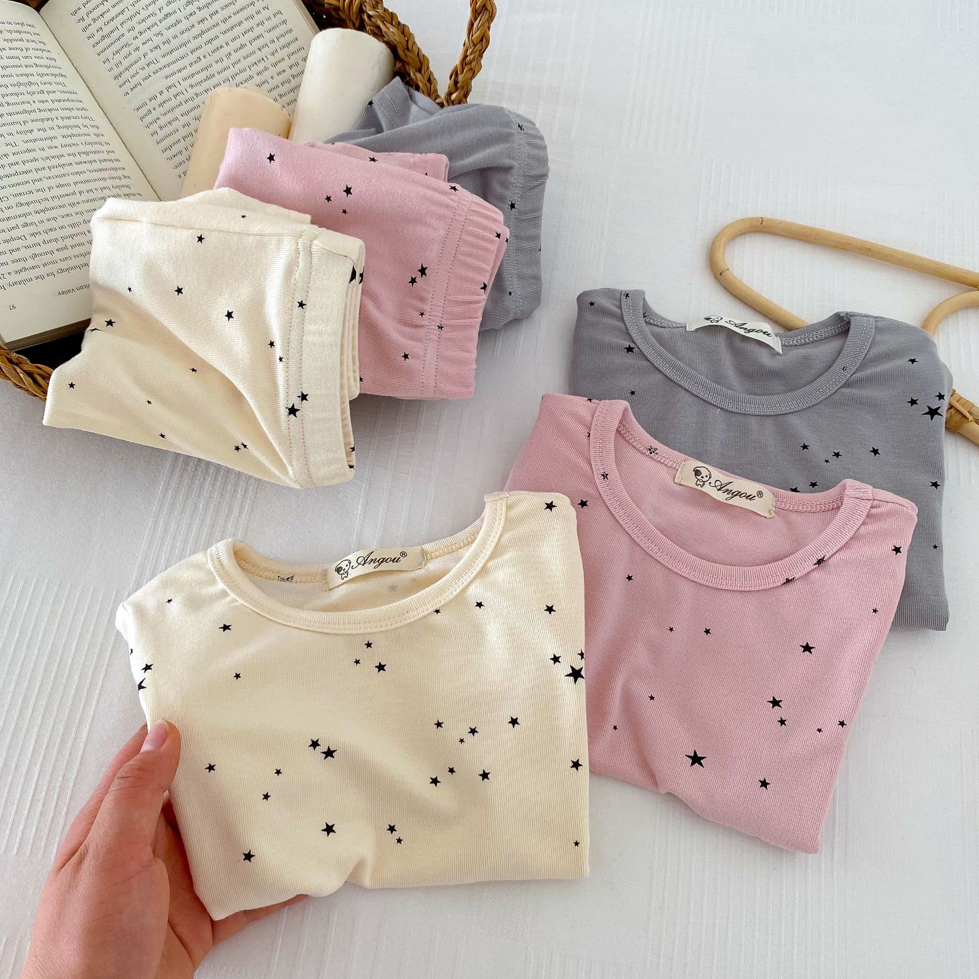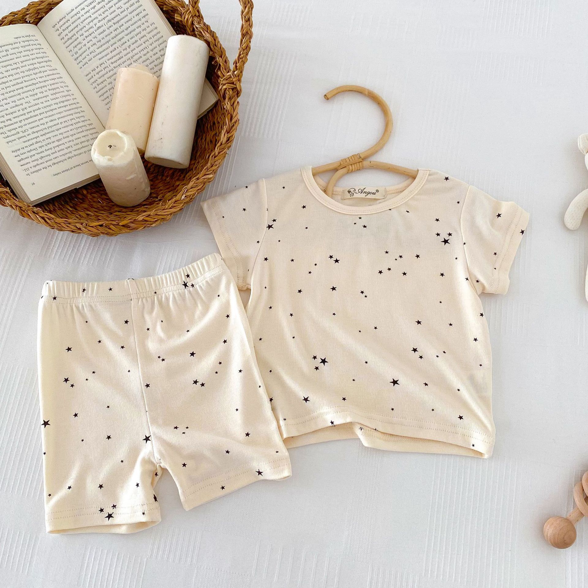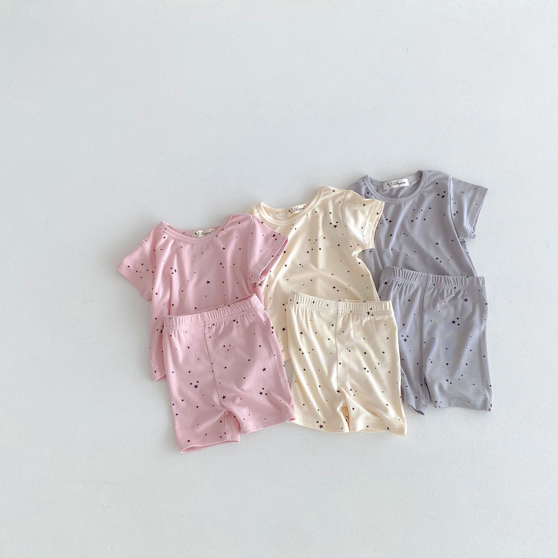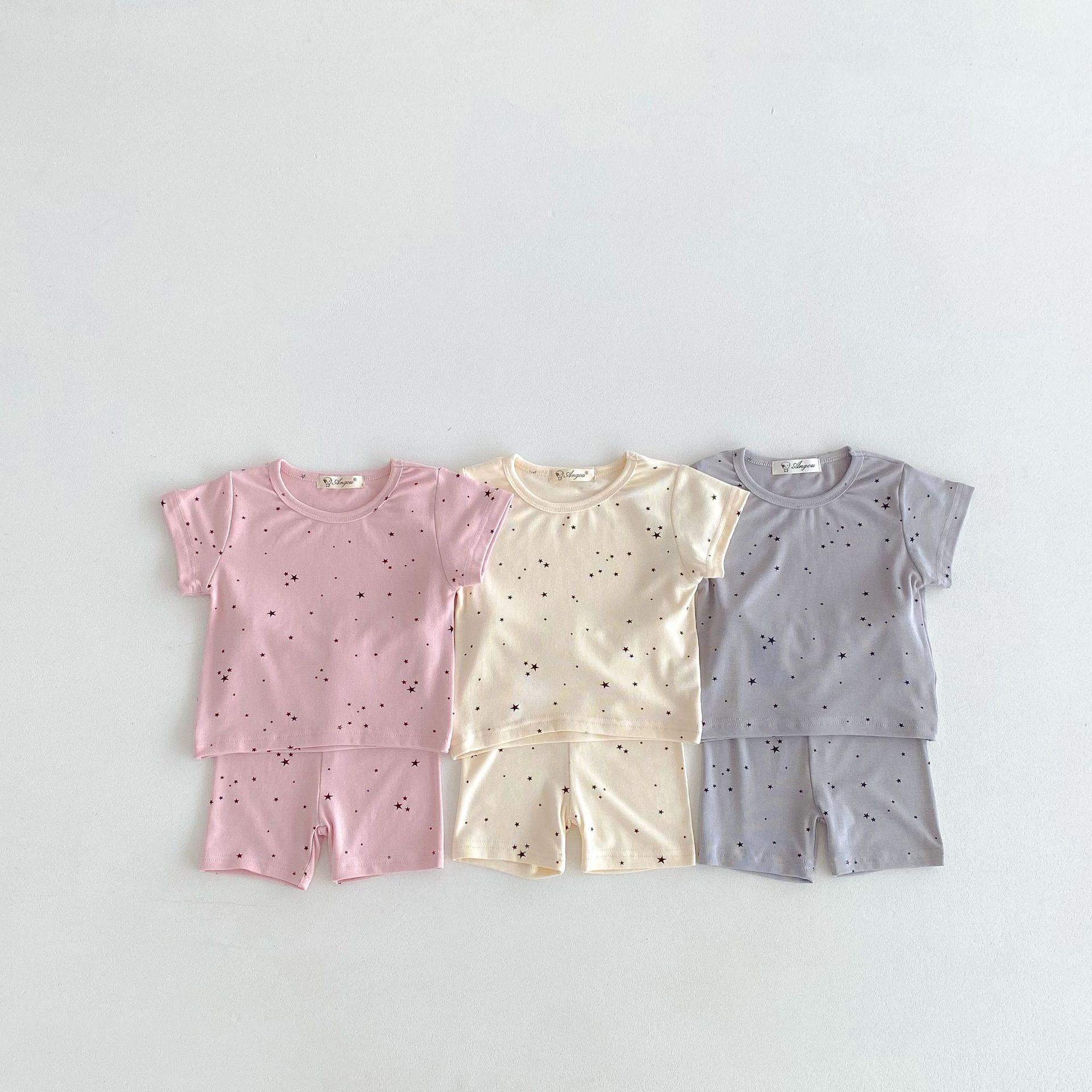2026년 여름 신상품, 한국 스타일의 유아 여아용 홈웨어, 얇은 면 소재, 작은 별무늬 프린트, 여아용 에어컨 의류 세트스토어 가기