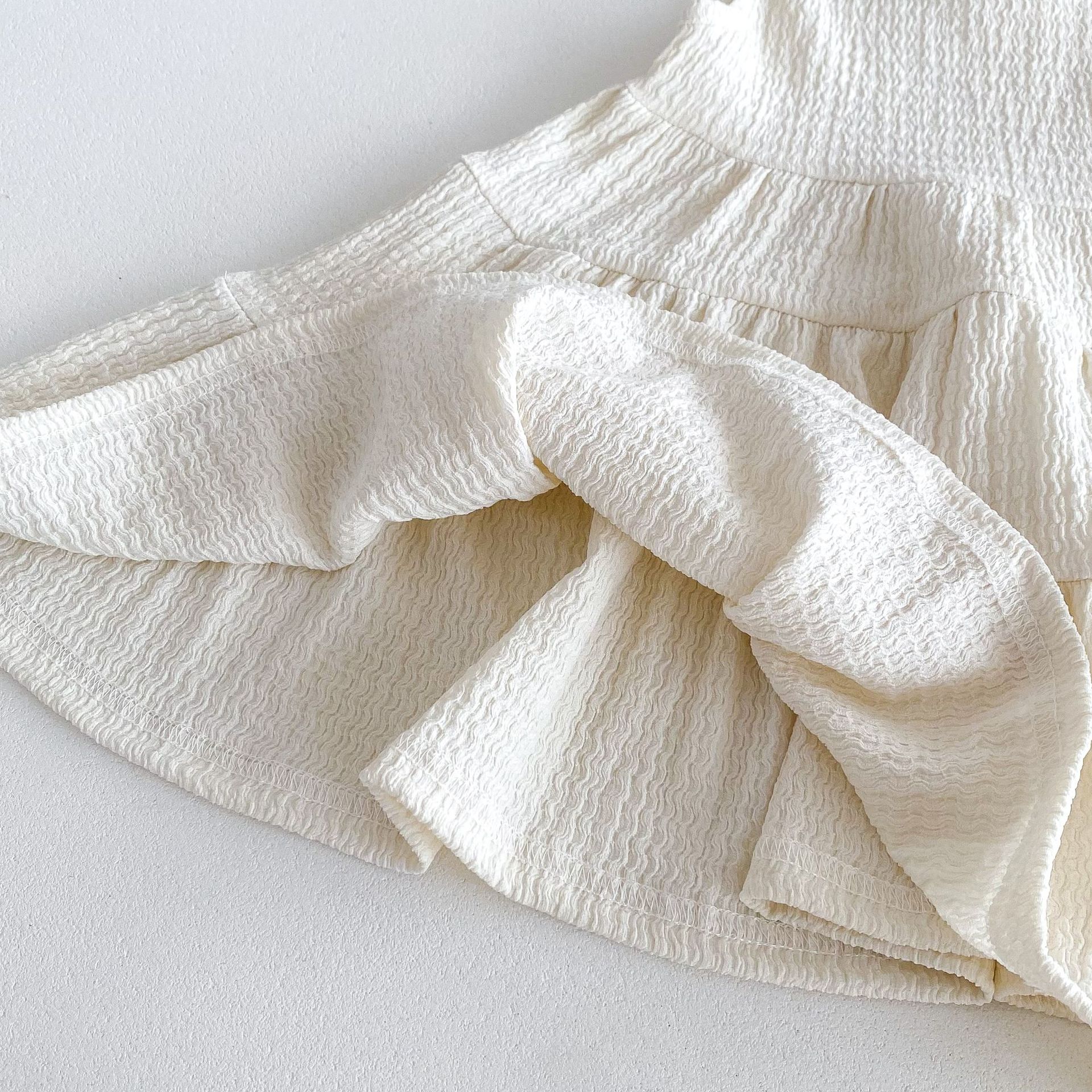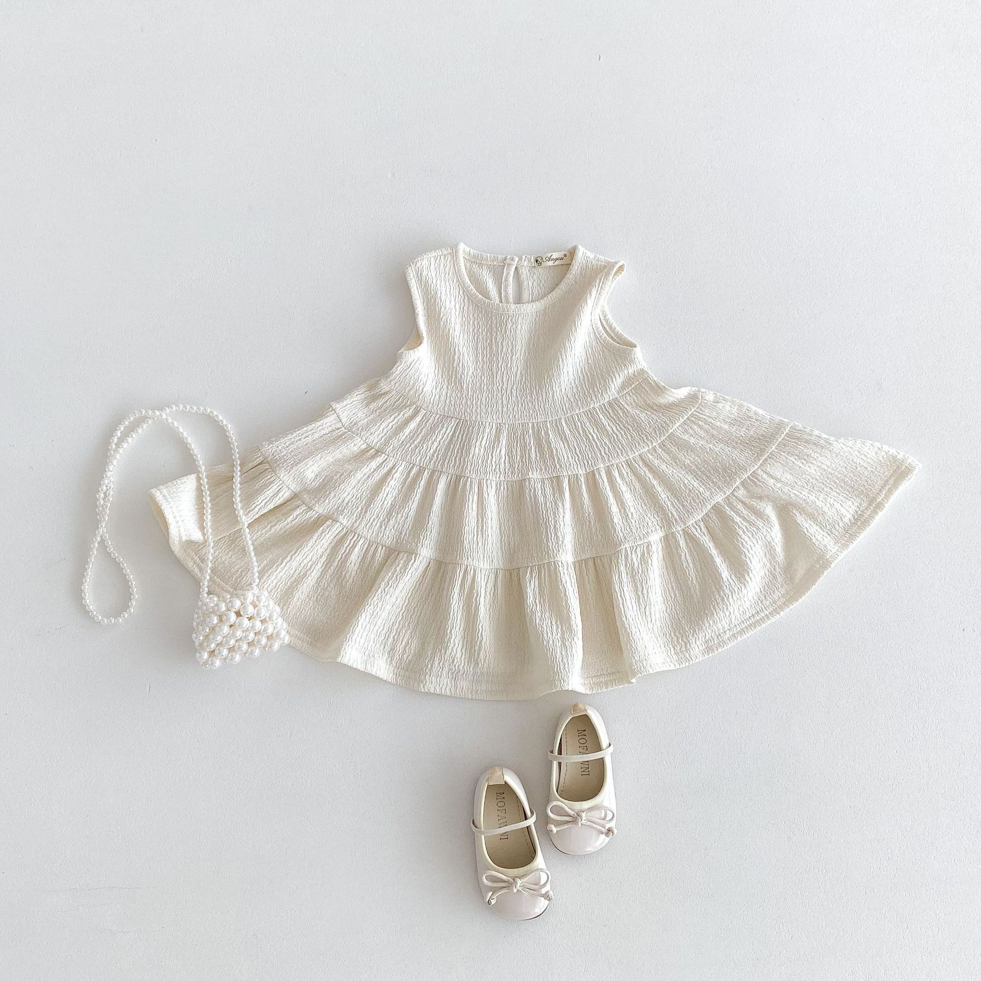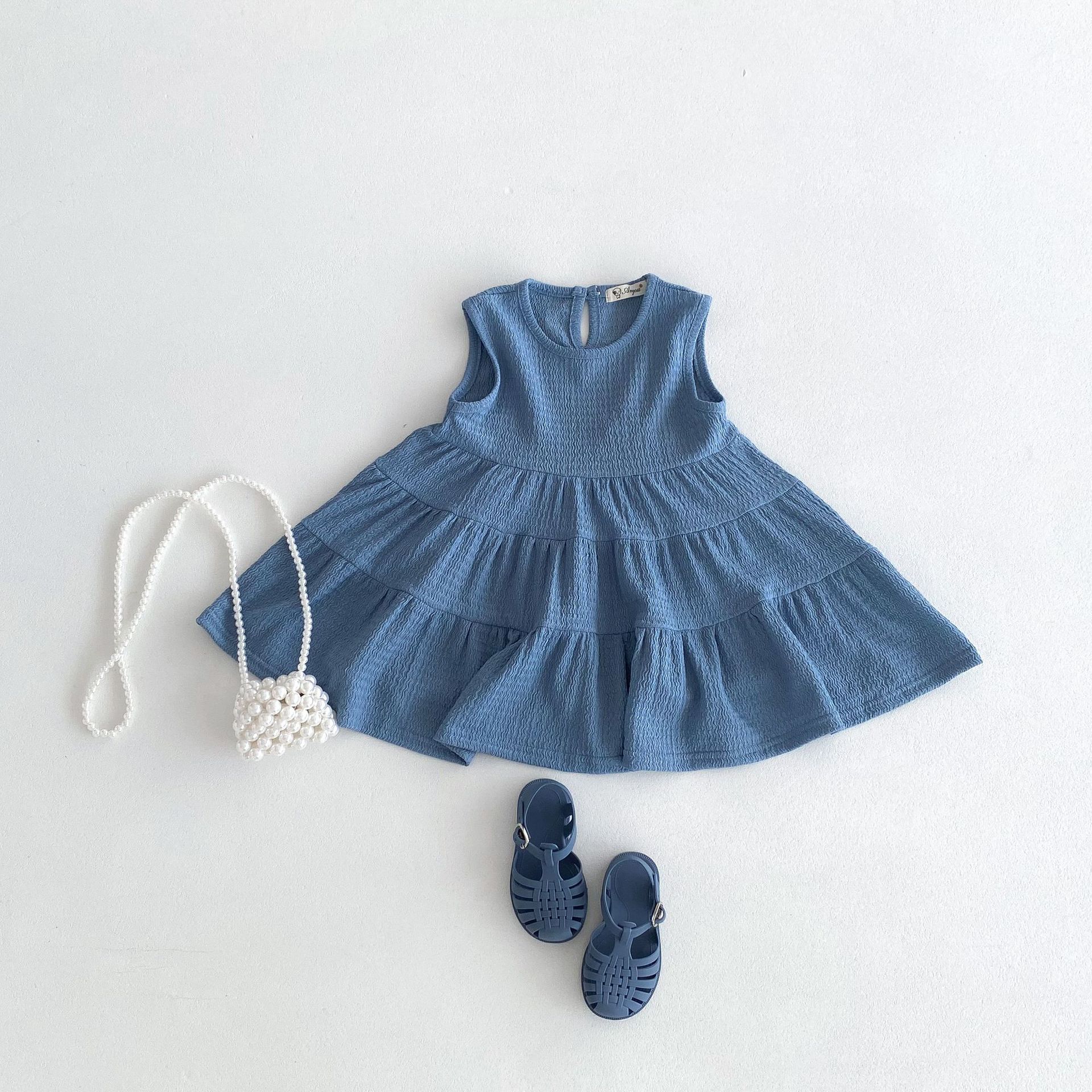 어린이 착용 한국식 여름 24 새로운 어린 시절 단색 주름 얇은 면 느슨한 소매 없는 빈 원피스 여자 원피스
