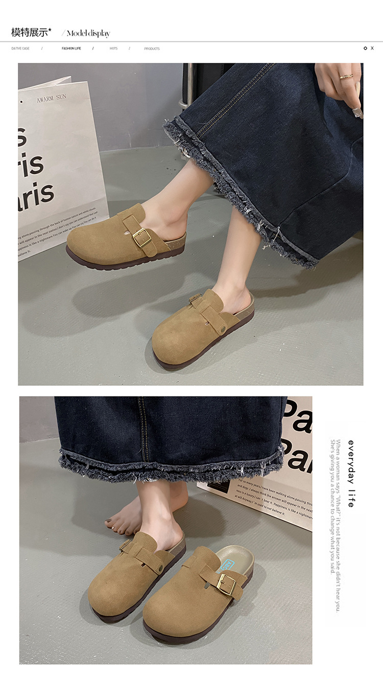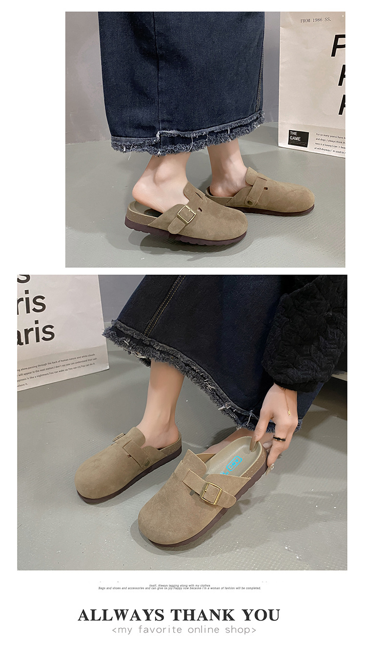 영국 Burken Shoes 여성용 2024 새로운 봄과 가을 두꺼운 밑창 Burken Half Slippers는 슬립 온 게으른 신발을 착용합니다.스토어 가기
