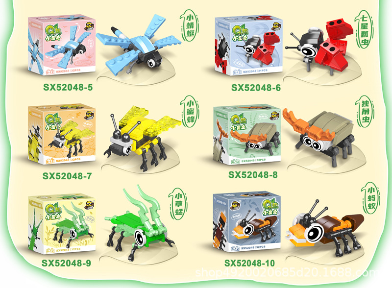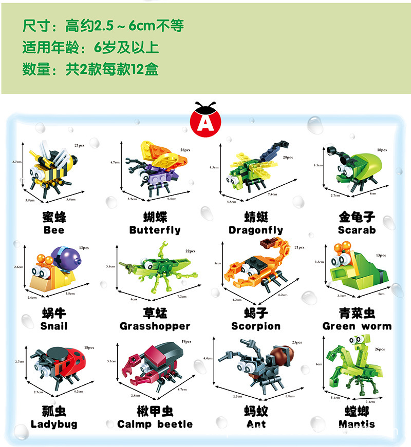 곤충 건물 블록 동물 바다 세계 작은 상자 호환 레고 조립 교육 장난감 초등 학교 선물 국경스토어 가기