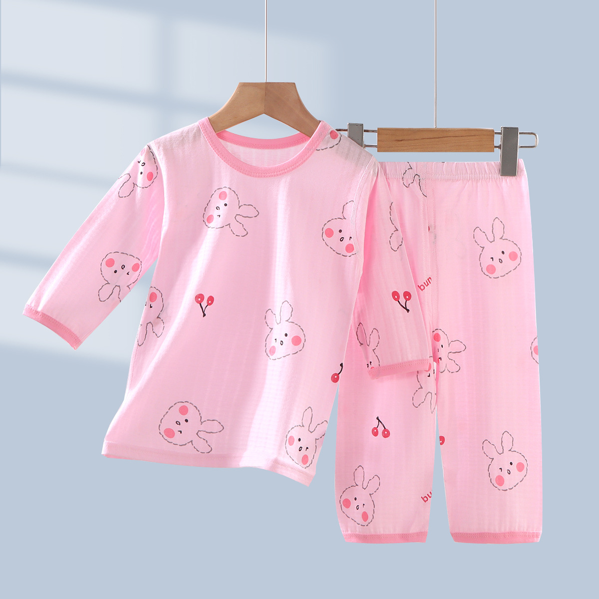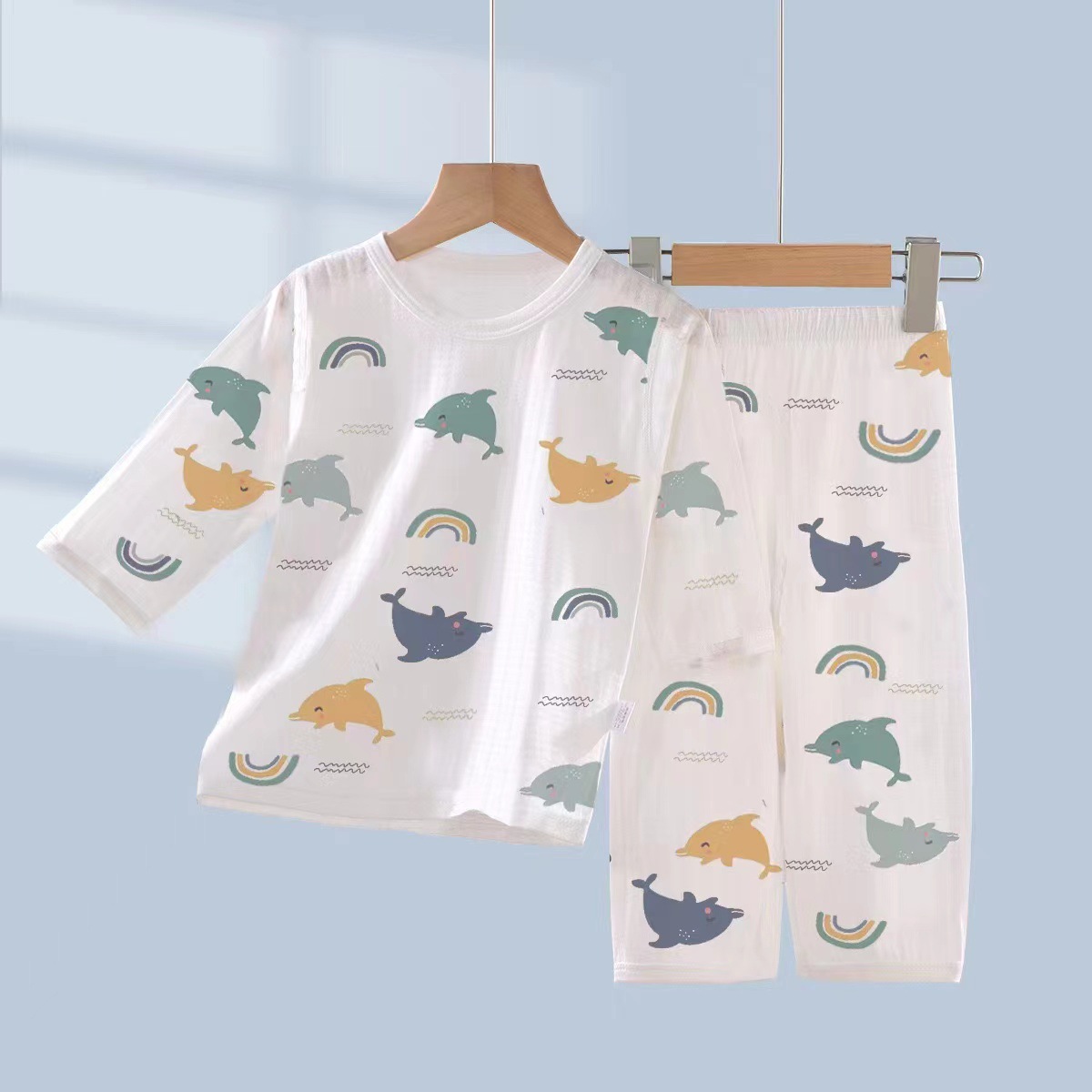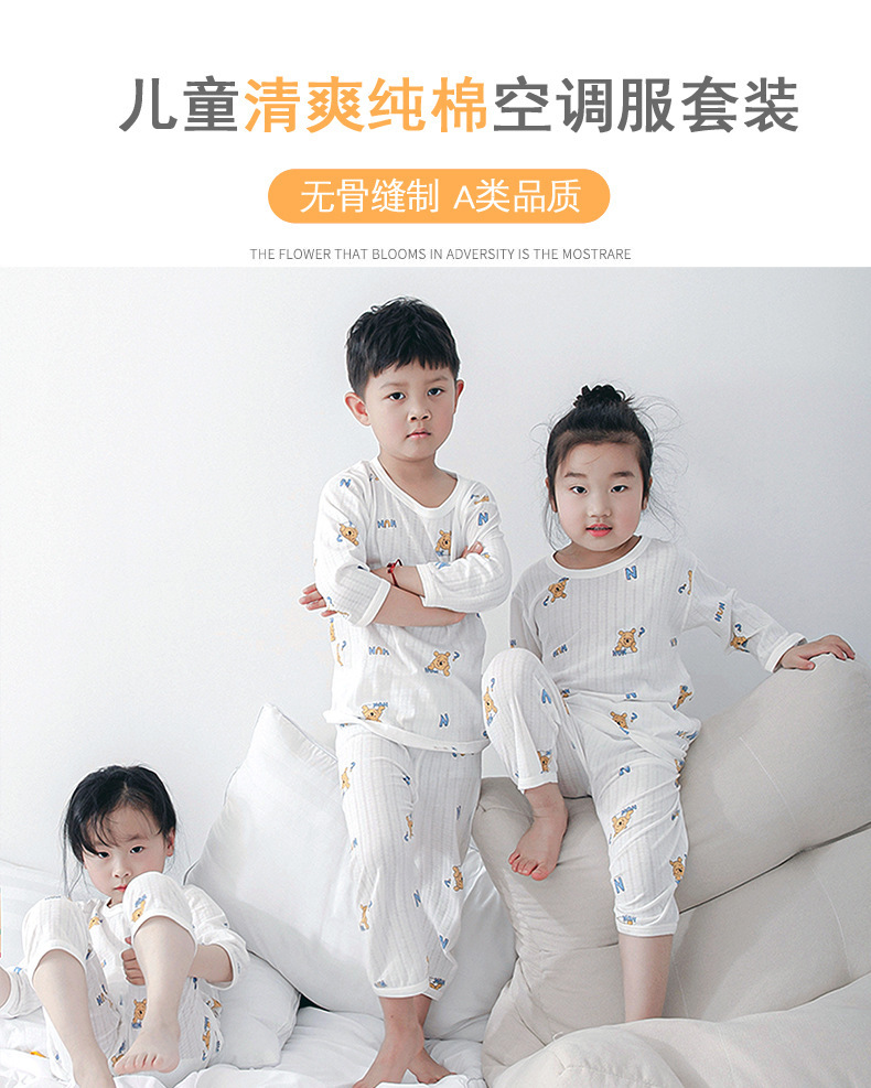 어린이 7 점 슬리브 코튼 클래스 A 봄과 여름 남녀 아동용 얇은 뼈없는 파자마 에어컨 홈 의류