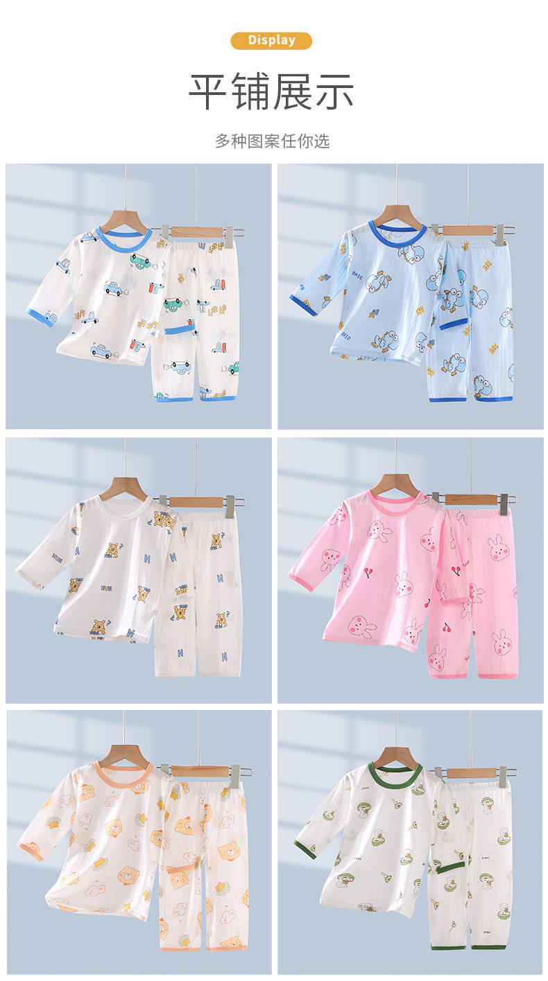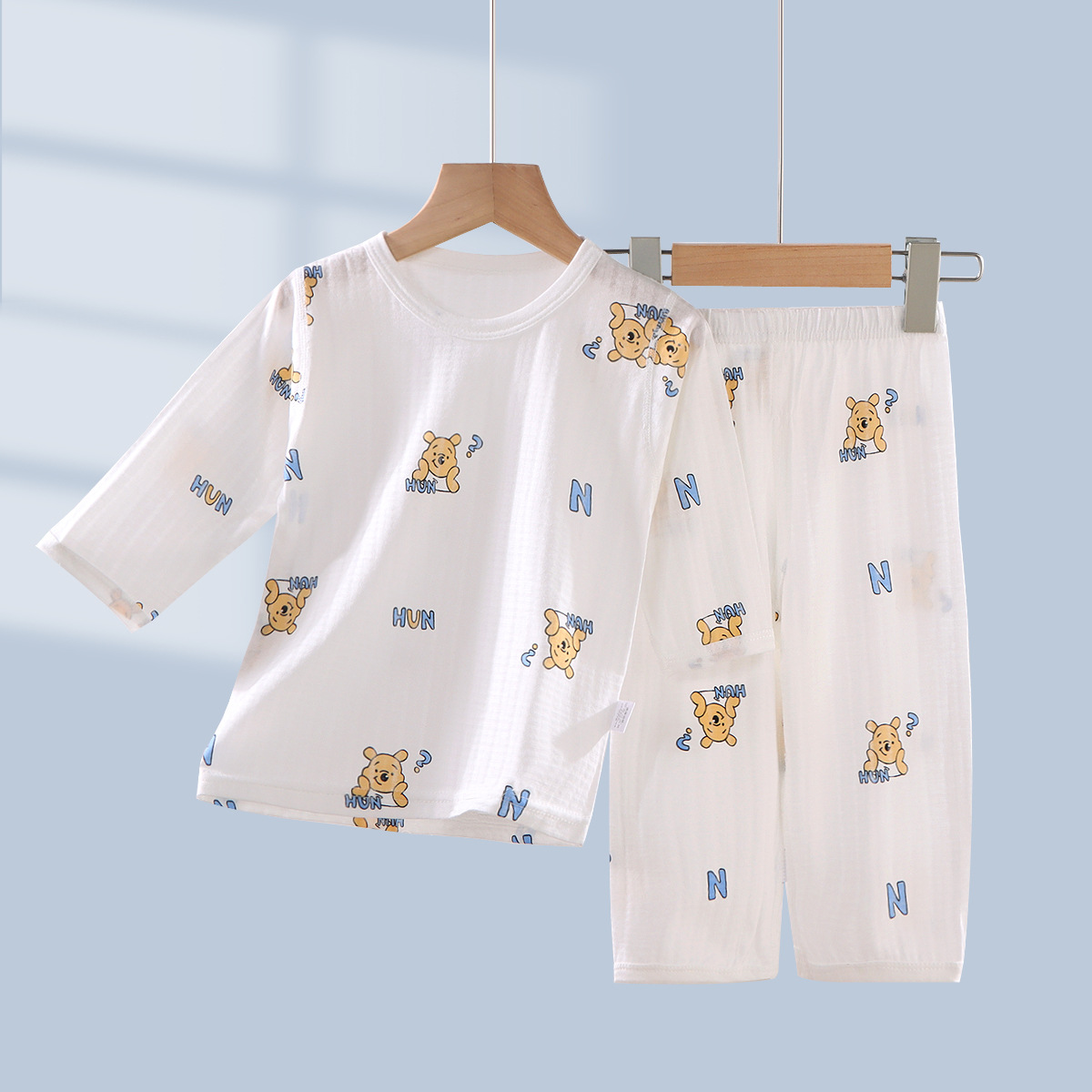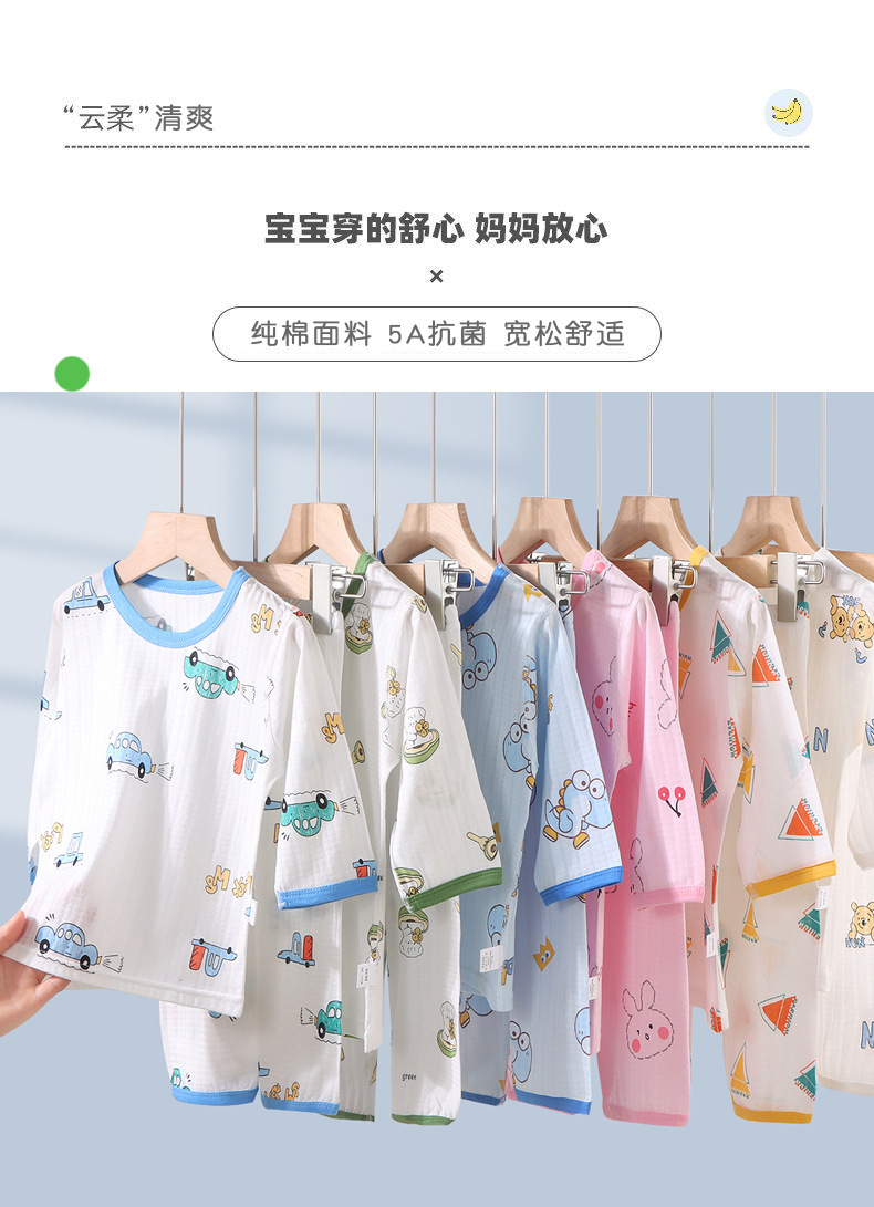 어린이 7 점 슬리브 코튼 클래스 A 봄과 여름 남녀 아동용 얇은 뼈없는 파자마 에어컨 홈 의류스토어 가기