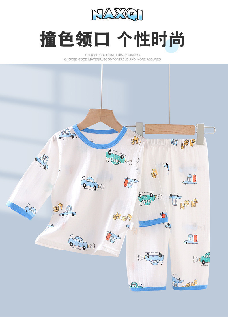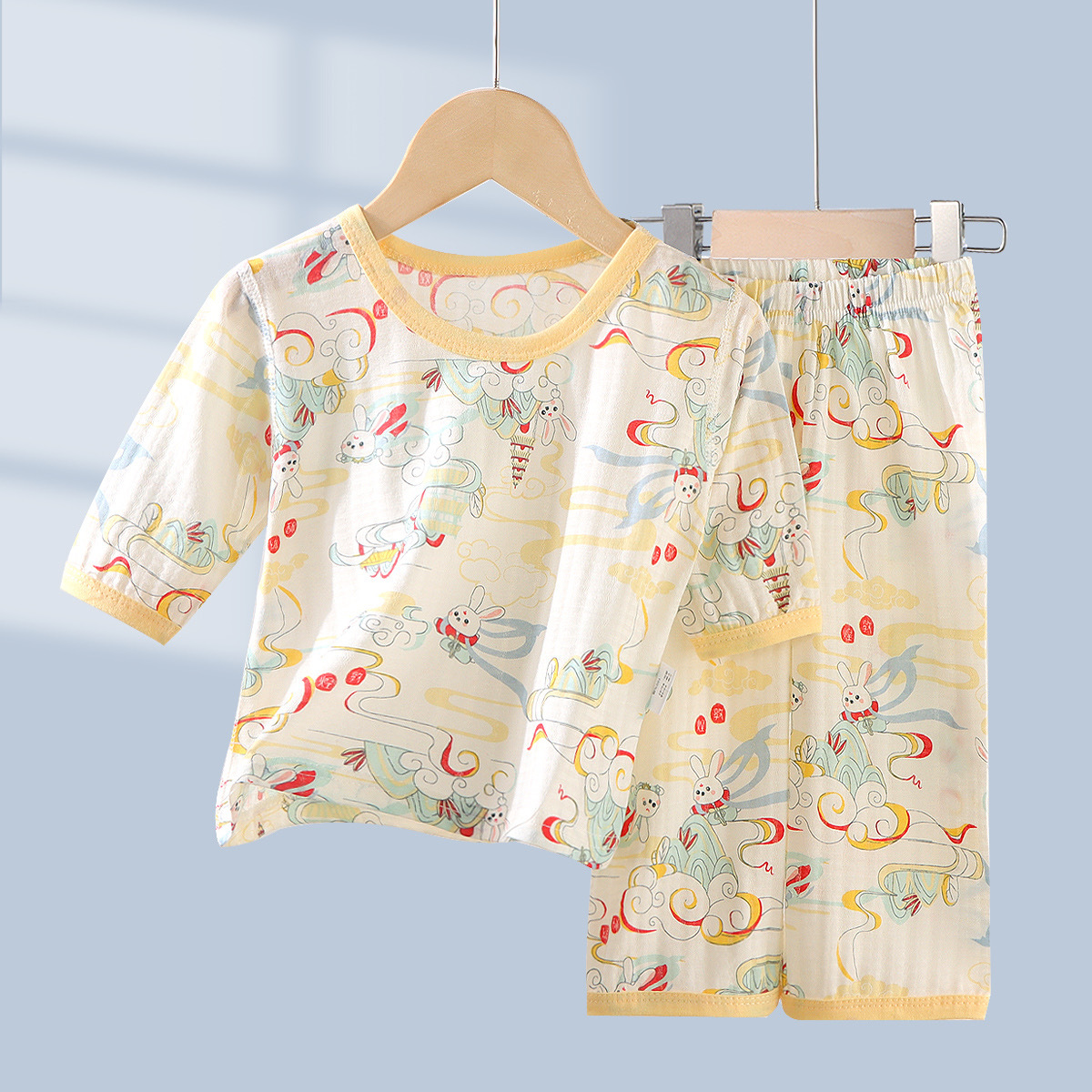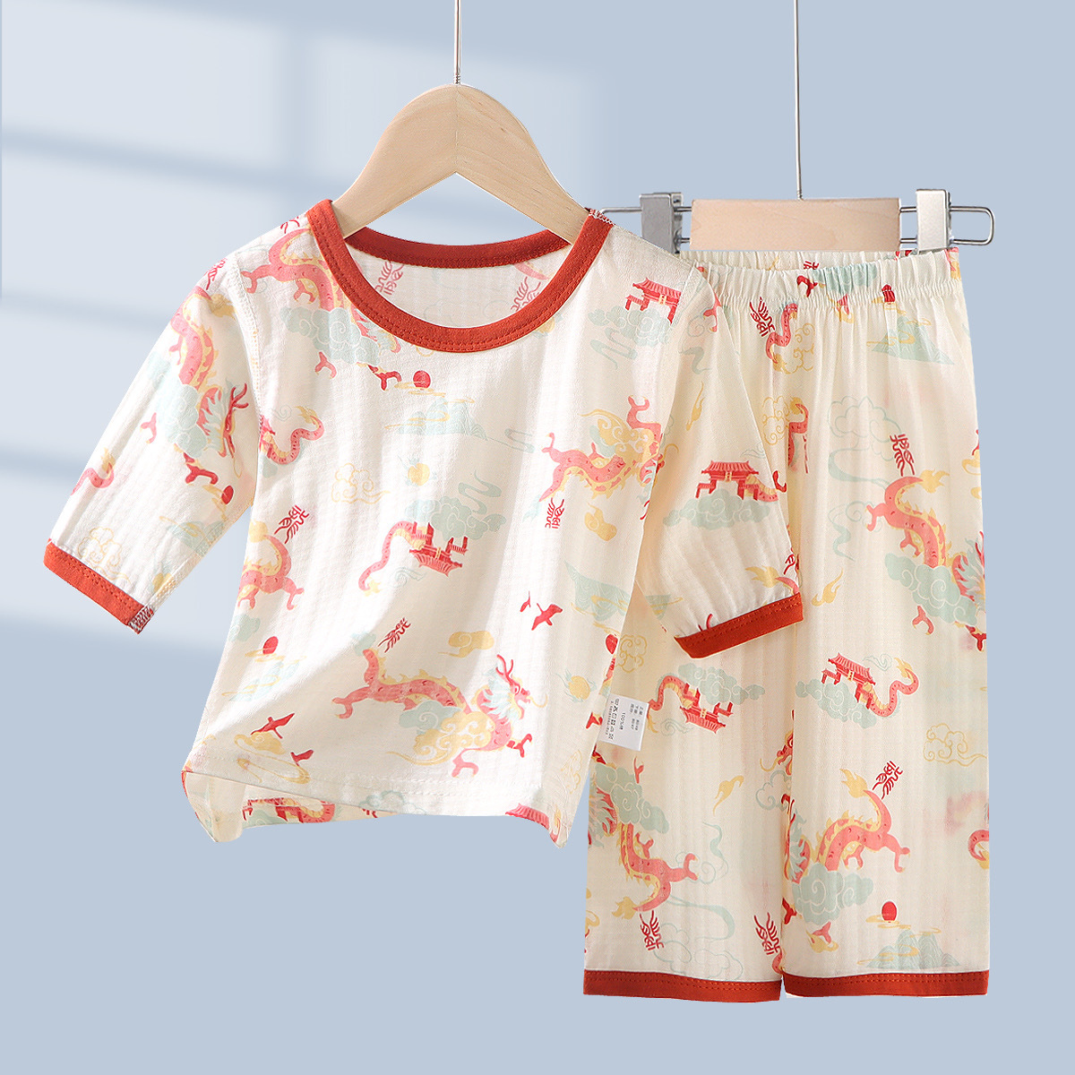 어린이 7 점 슬리브 코튼 클래스 A 봄과 여름 남녀 아동용 얇은 뼈없는 파자마 에어컨 홈 의류스토어 가기