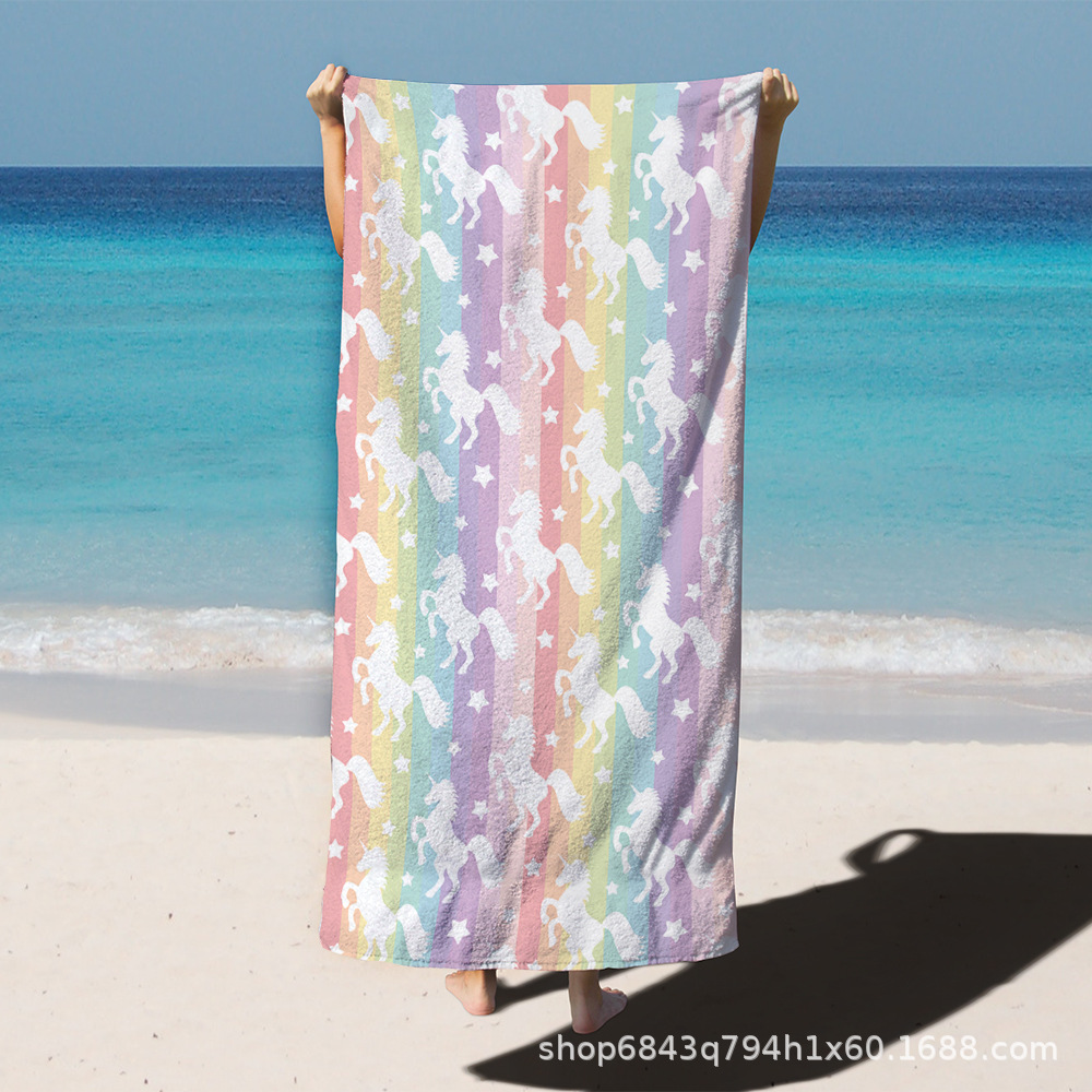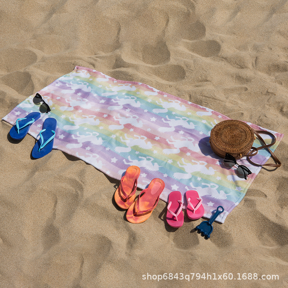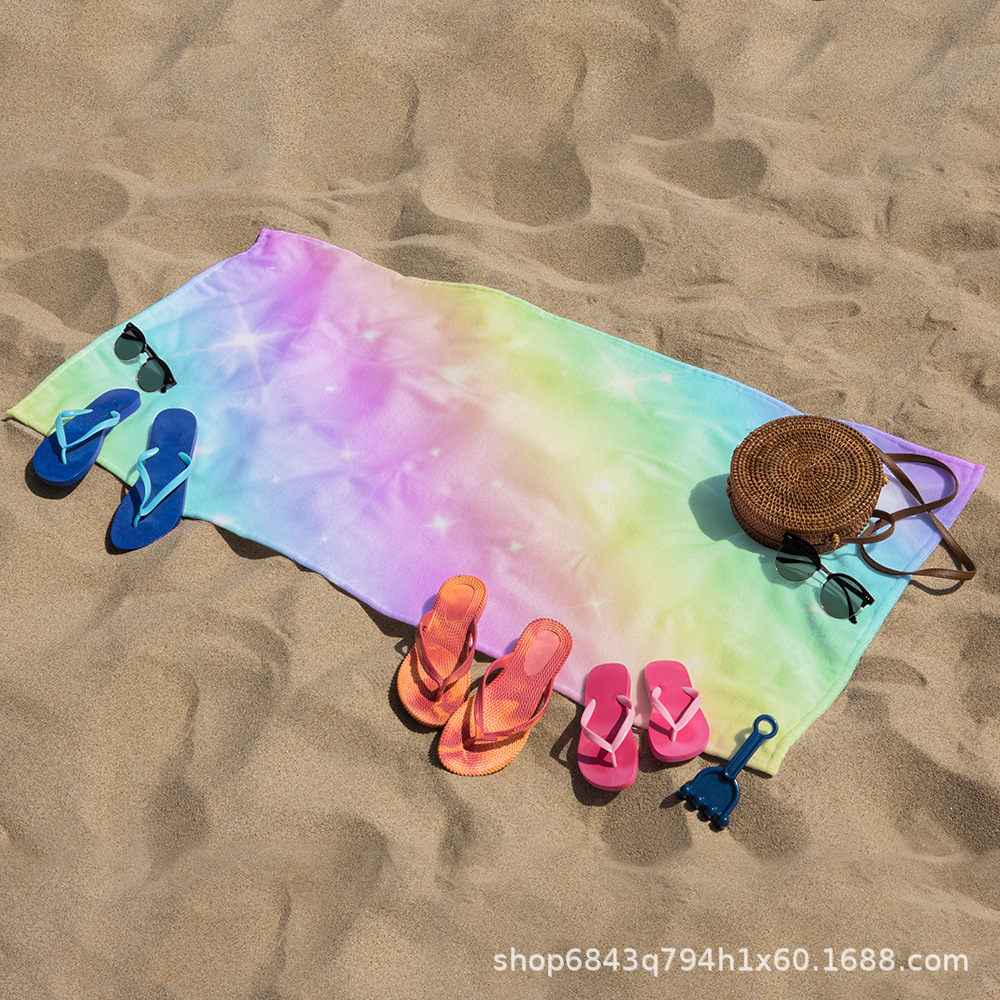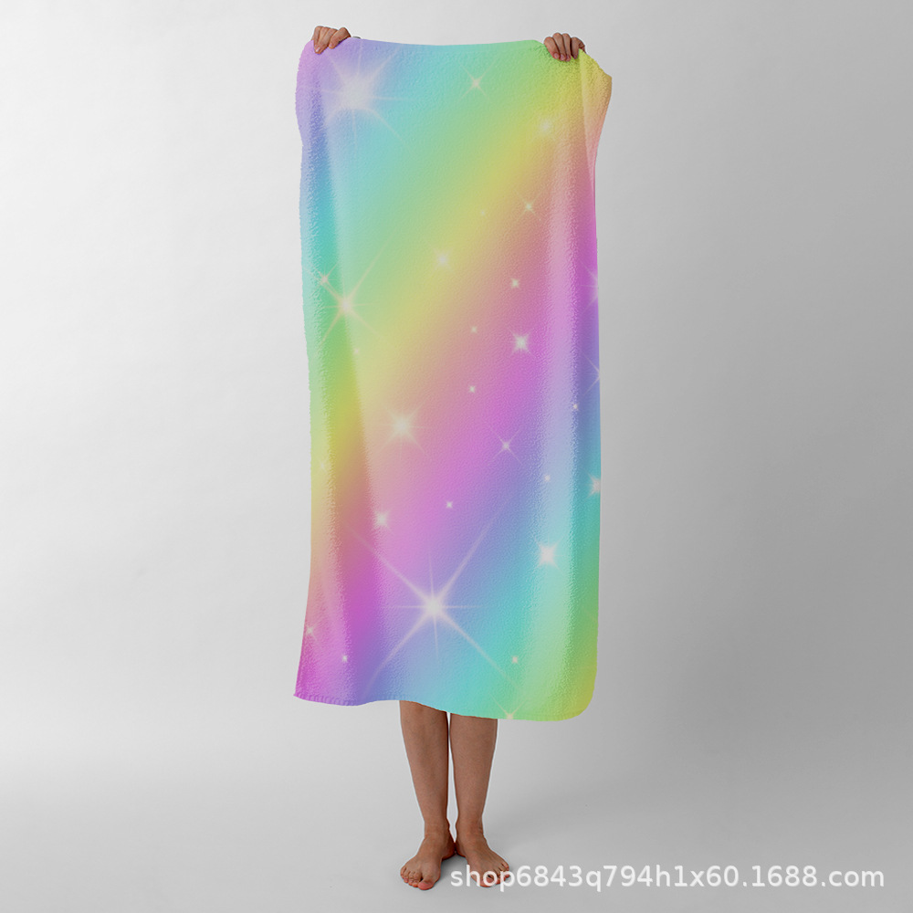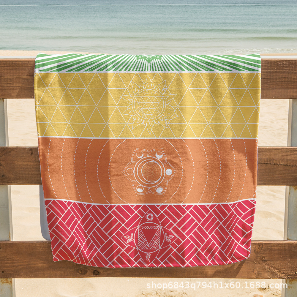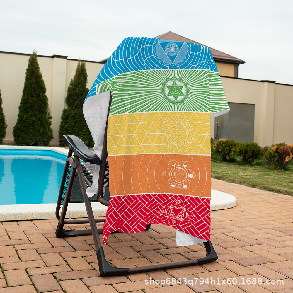 레인보우 차크라 비치 타월 마이크로 화이버 직사각형 다채로운 인쇄 목욕 타월 포시즌 유니버설 국경스토어 가기