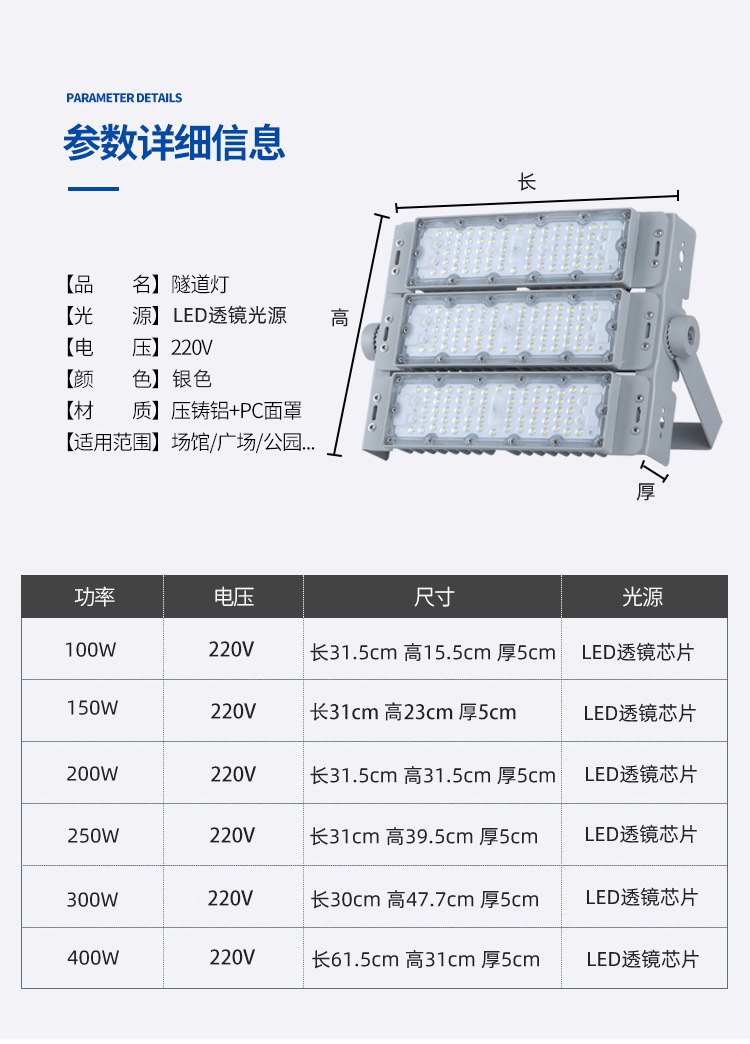 LED 실외 강광 방수 투광 조명 모듈 터널 500W 실외 고출력 광장 조명 투광 조명