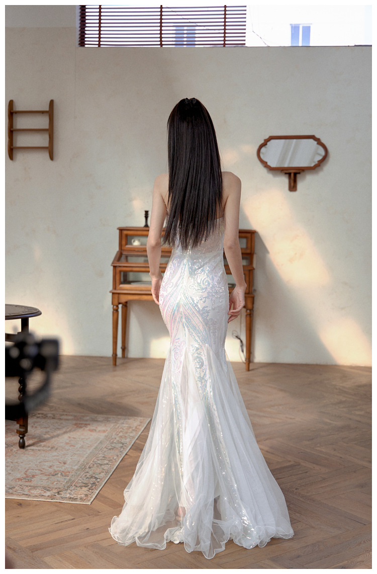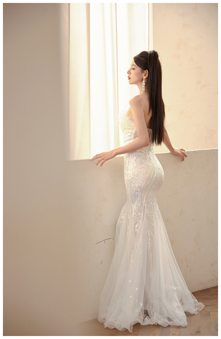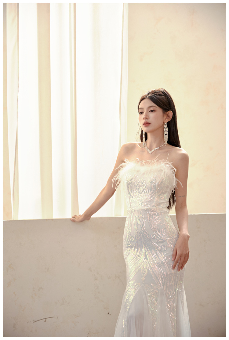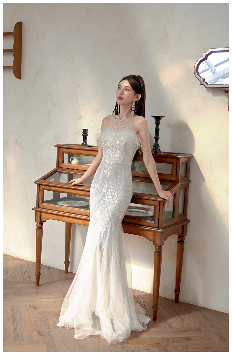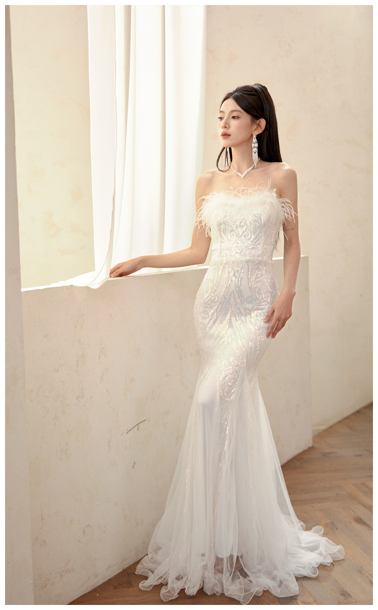 우아한 이브닝 드레스 2026 환상적인 인어공주풍 깃털 튜브탑 드레스 몸매를 돋보이게 하는 피쉬테일 드레스 파티 미니 드레스스토어 가기