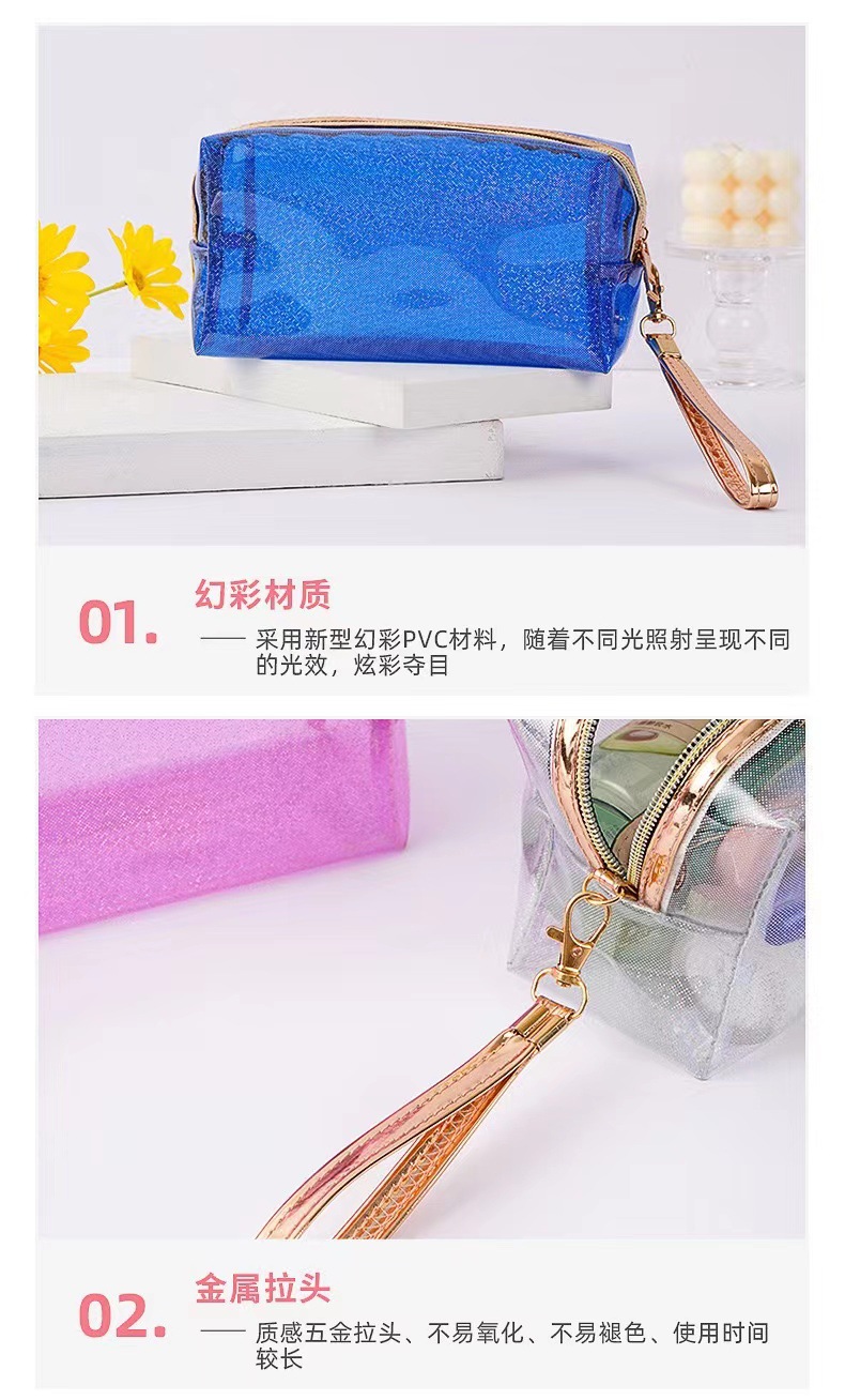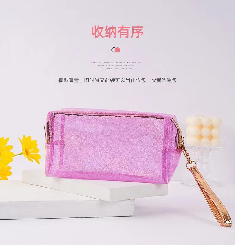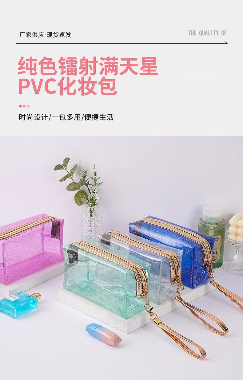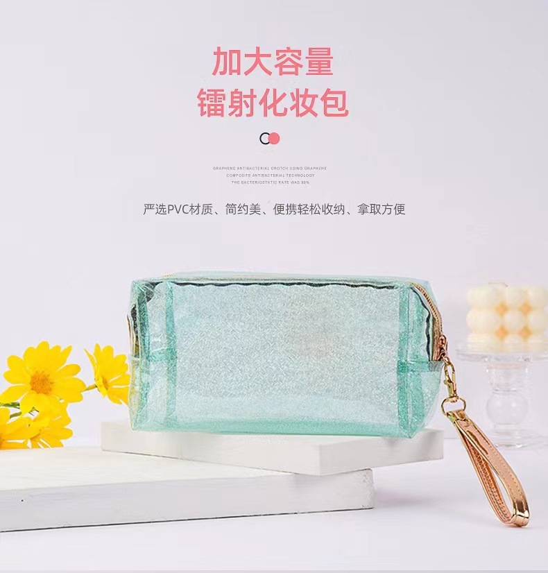 레이저 화장품 가방 PVC 투명 팔각형 세면도구 가방 방수 여행 수납 가방 대용량 여름 여행용스토어 가기