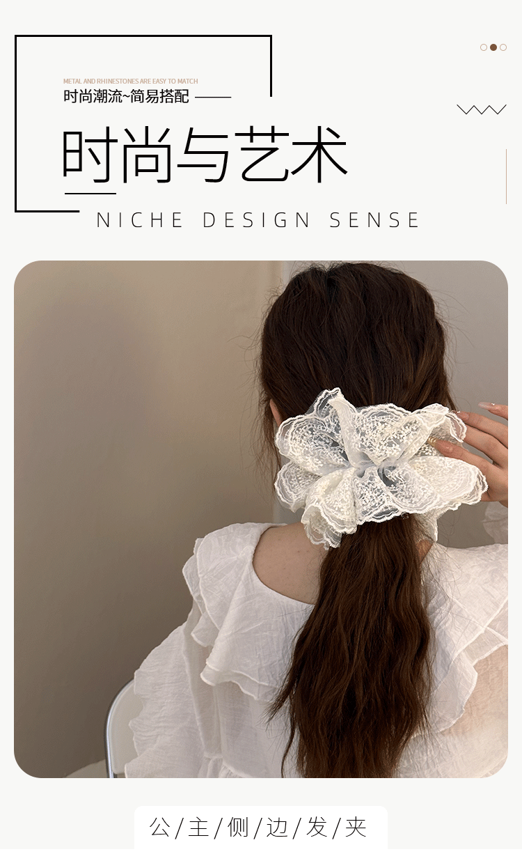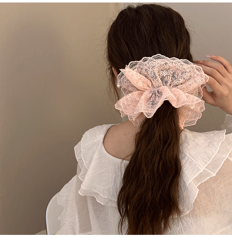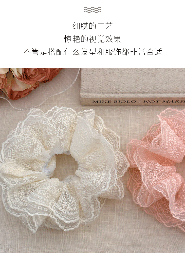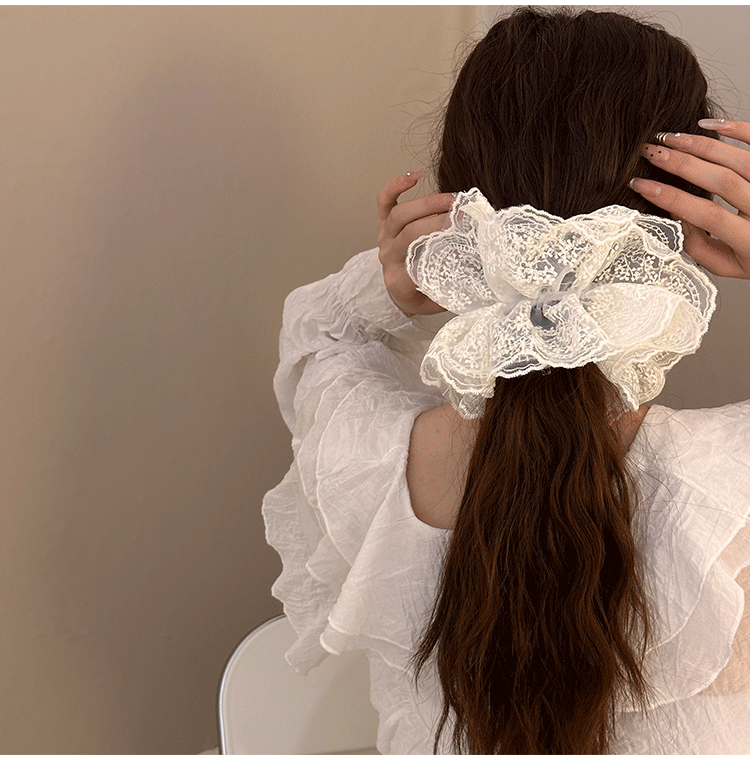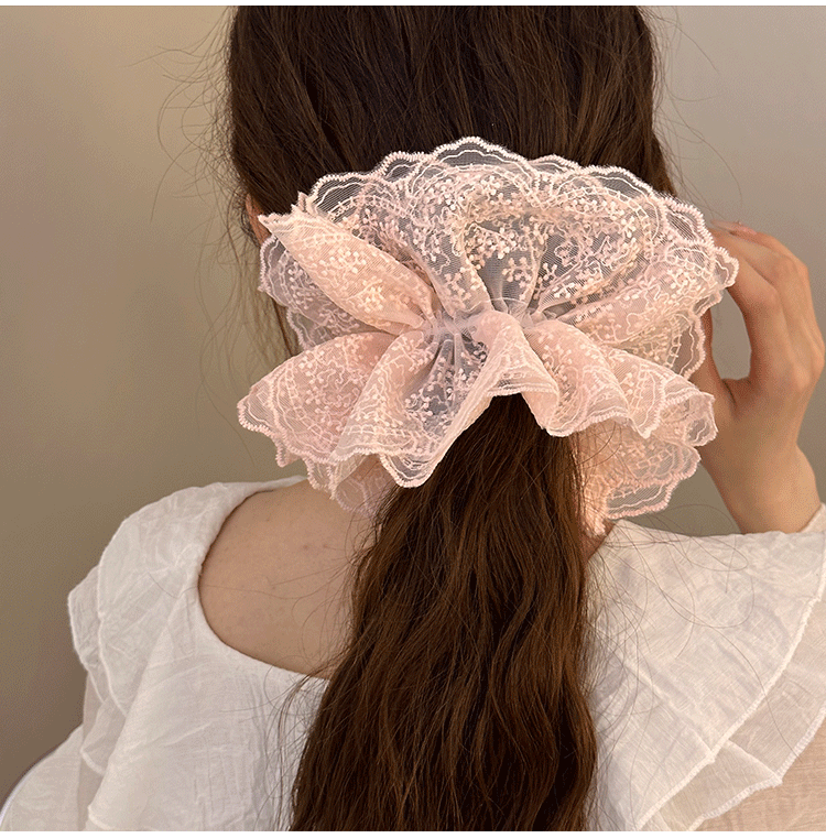 솔리드 컬러 레이스 대장 헤어 링 여성의 2024 새로운 헤어 로프 헤어 플라워 하이 엔드 헤어 액세서리 발열스토어 가기