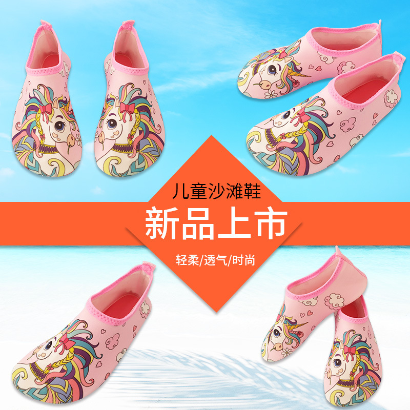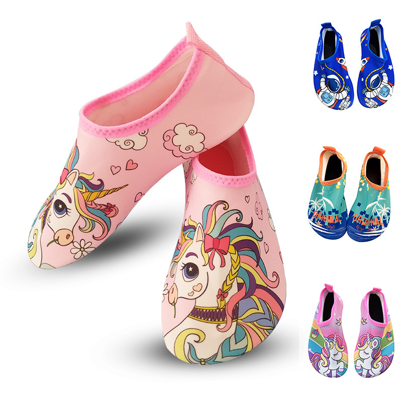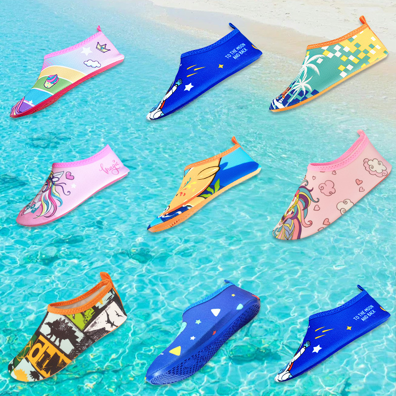 국경을 넘는 새로운 어린이 부드러운 밑창 미끄럼 방지 내마모성 남성용 및 여성용 해변 신발 워터 파크 웨이딩 통기성 인쇄 강 신발스토어 가기