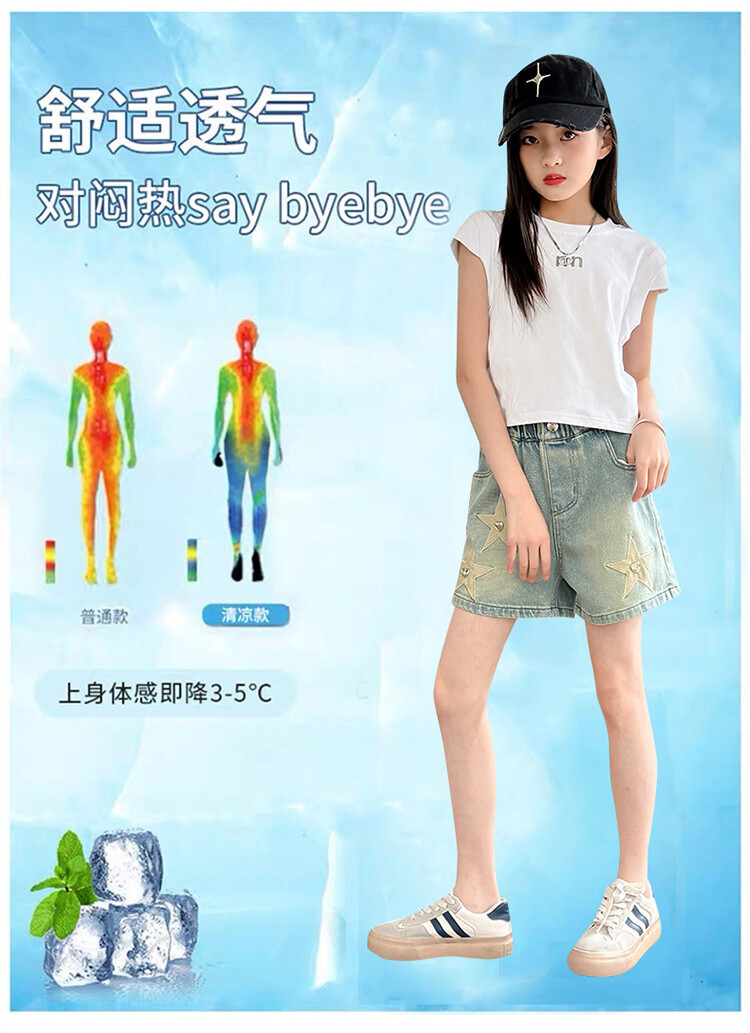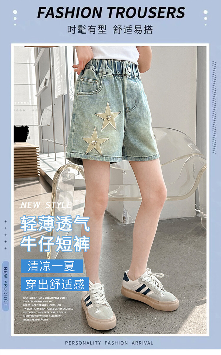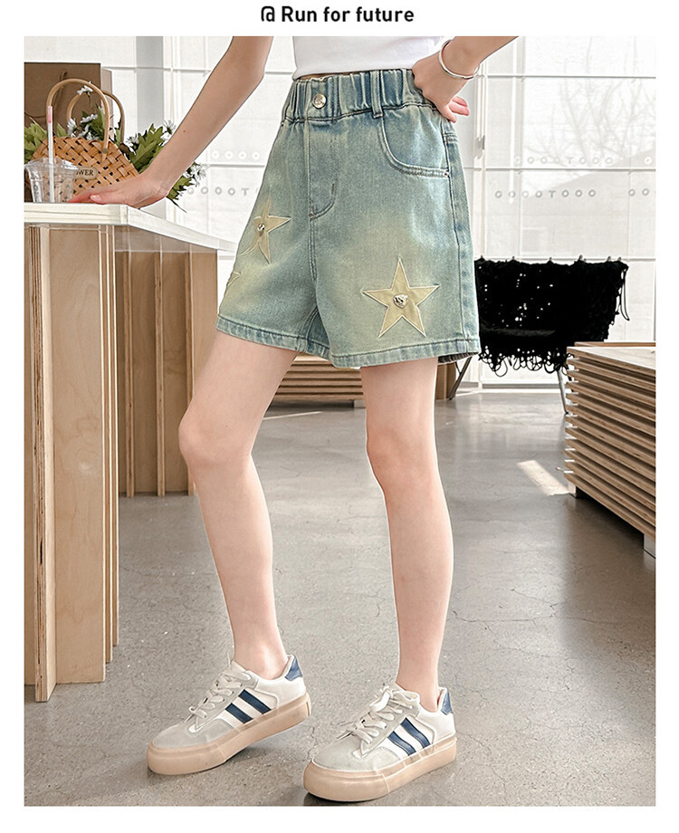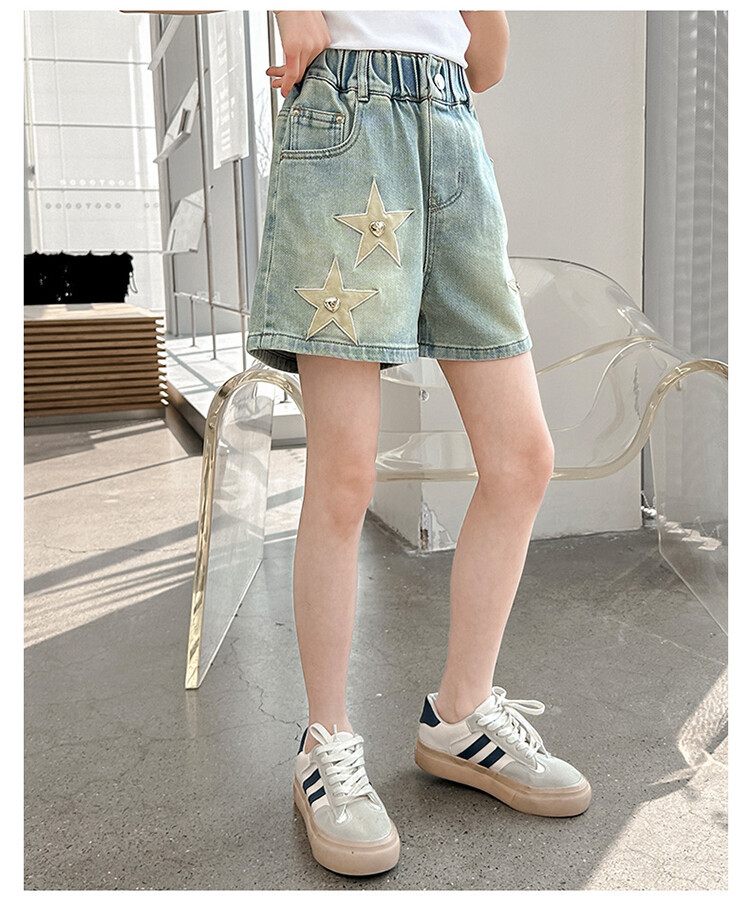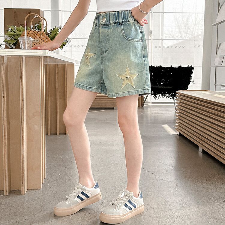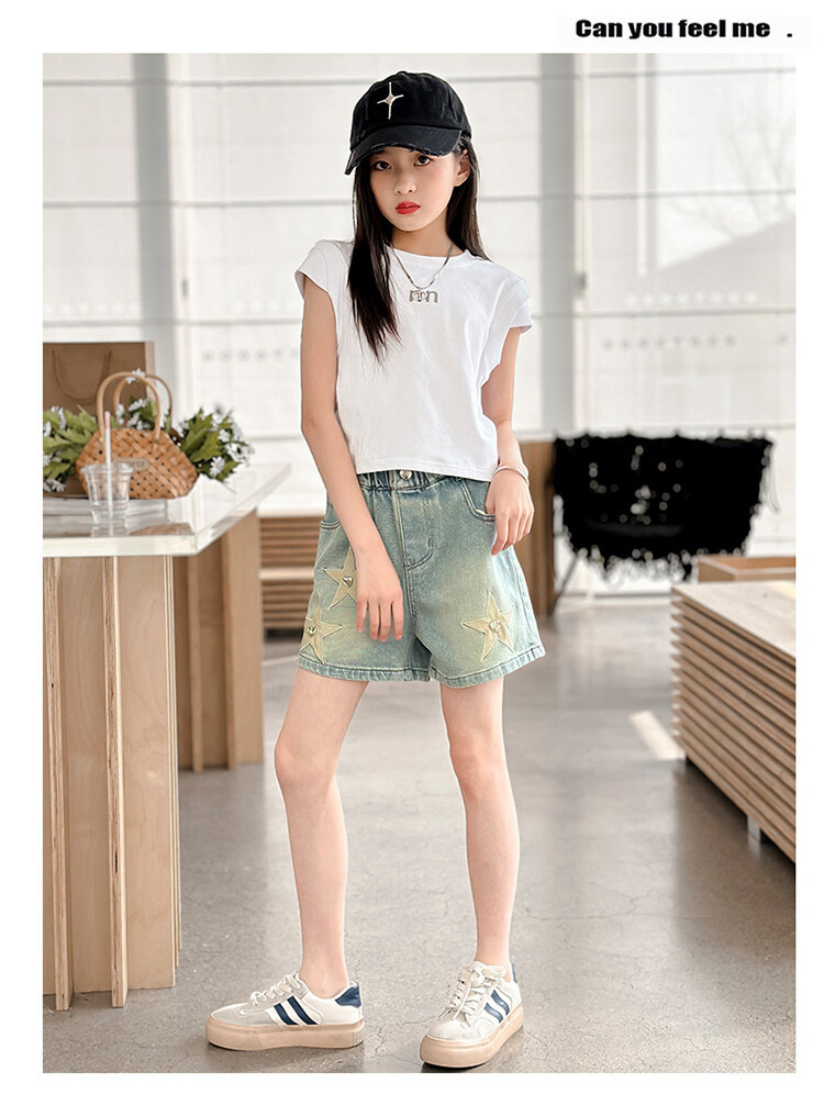 소녀의 서양식 여름 세트 2024 새로운 어린이 여름 원피스 스타 데님 반바지가 달린 투피스 세트