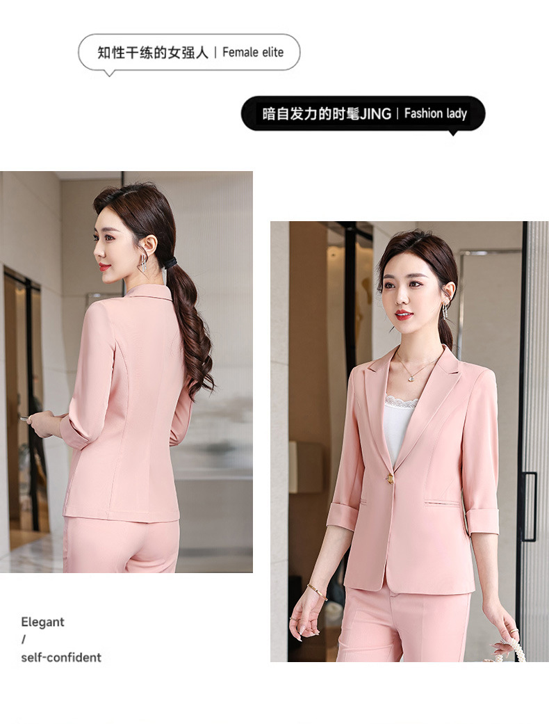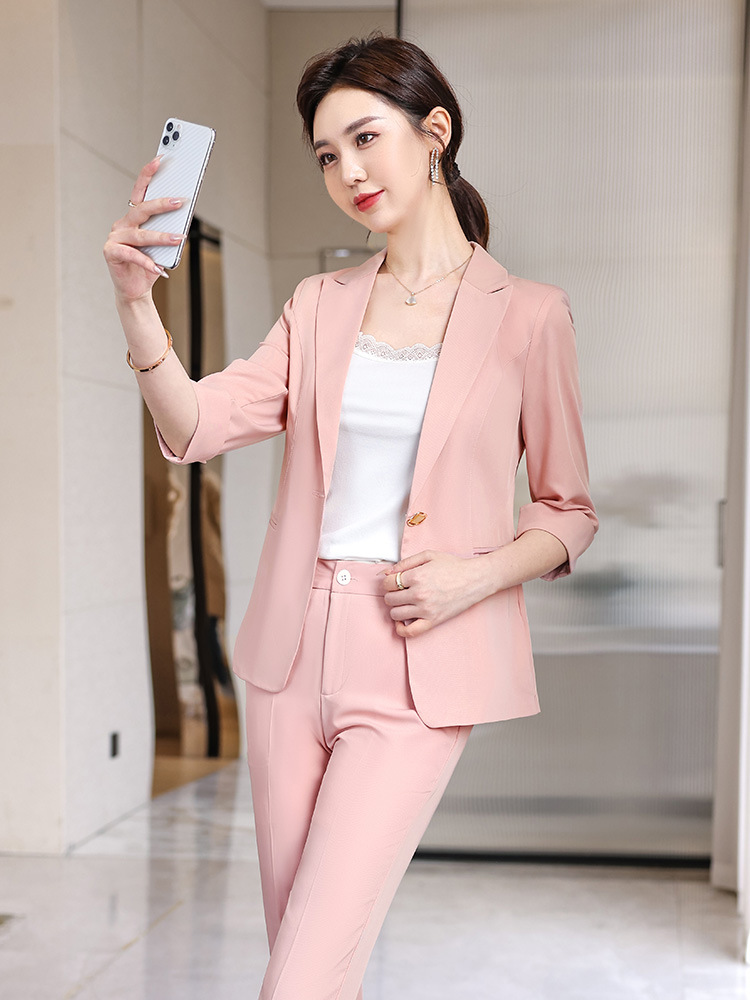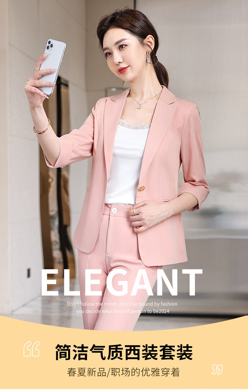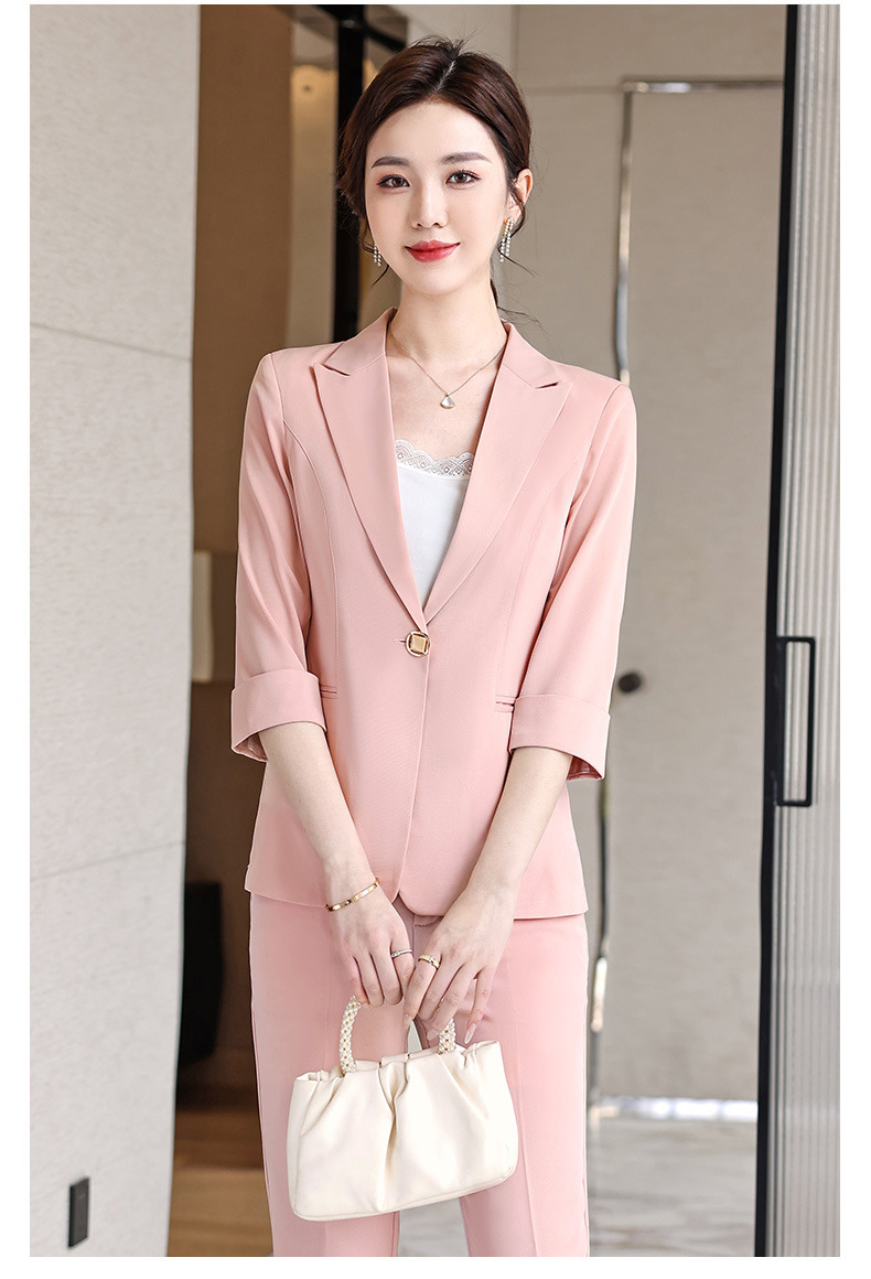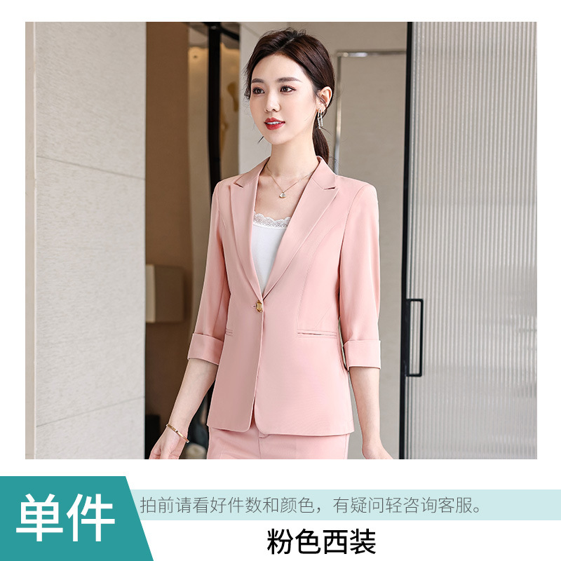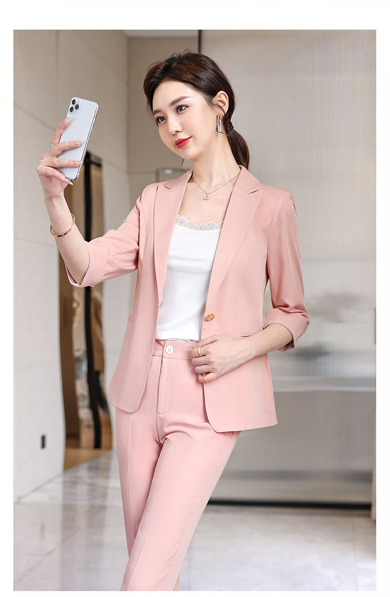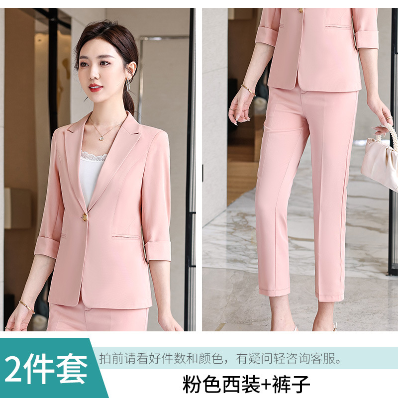 2024 핑크 세븐 포인트 슬리브 코트 여성 봄과 여름 OL 패션 슬림핏 슬리밍 미드 슬리브 비즈니스 착용 바지 바지 작업복스토어 가기