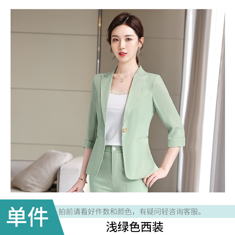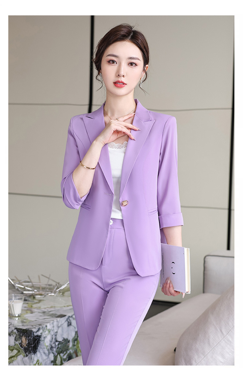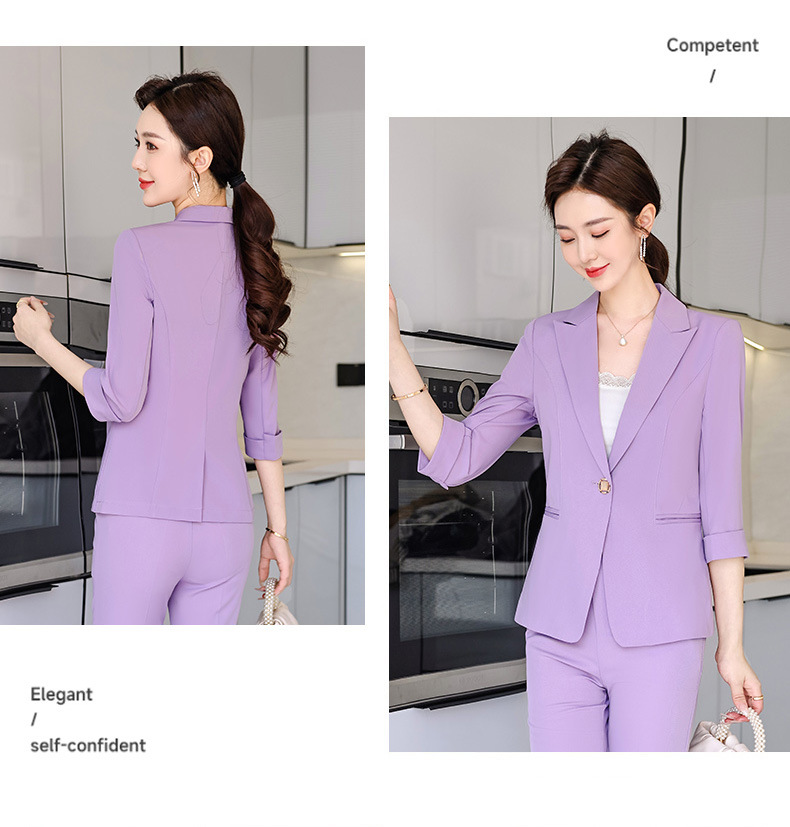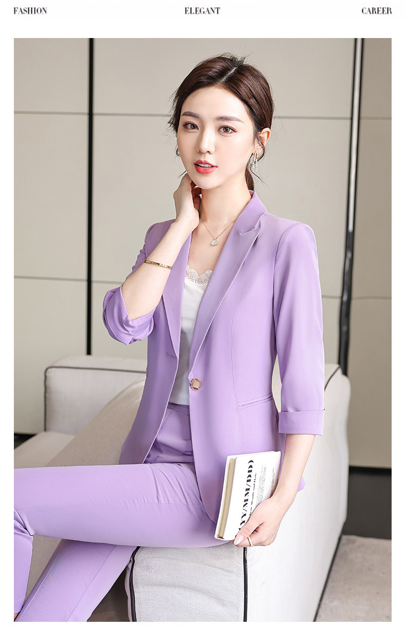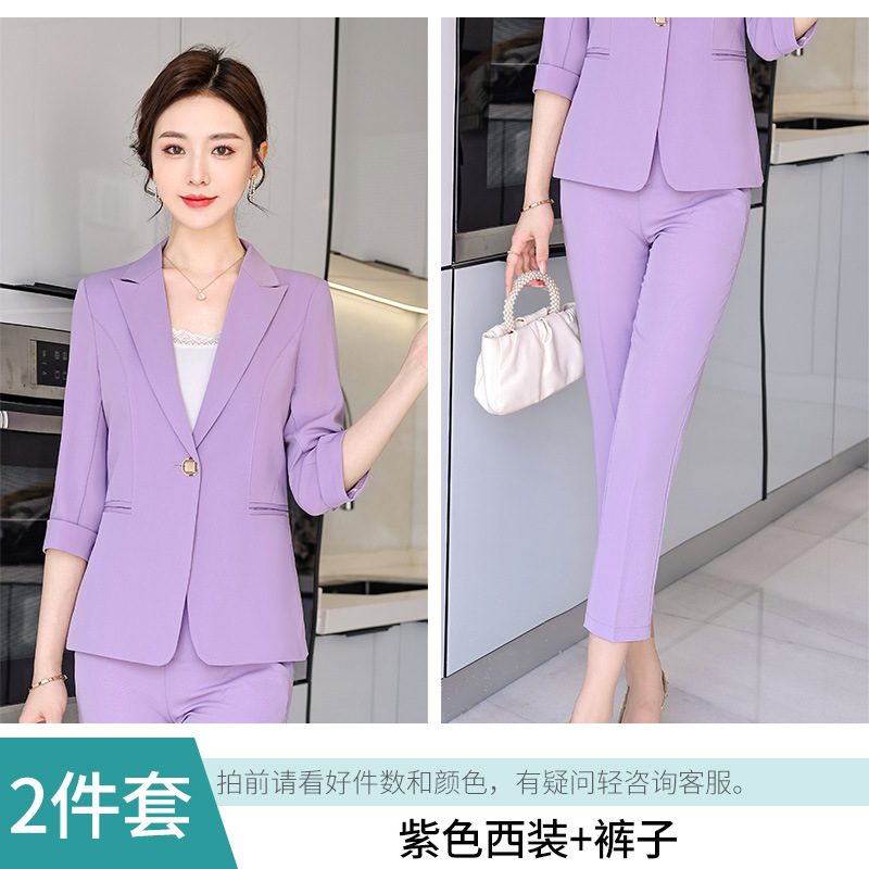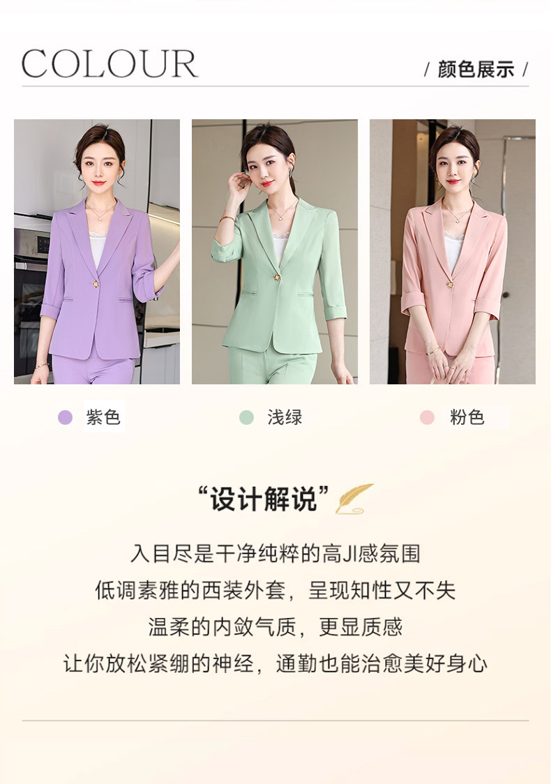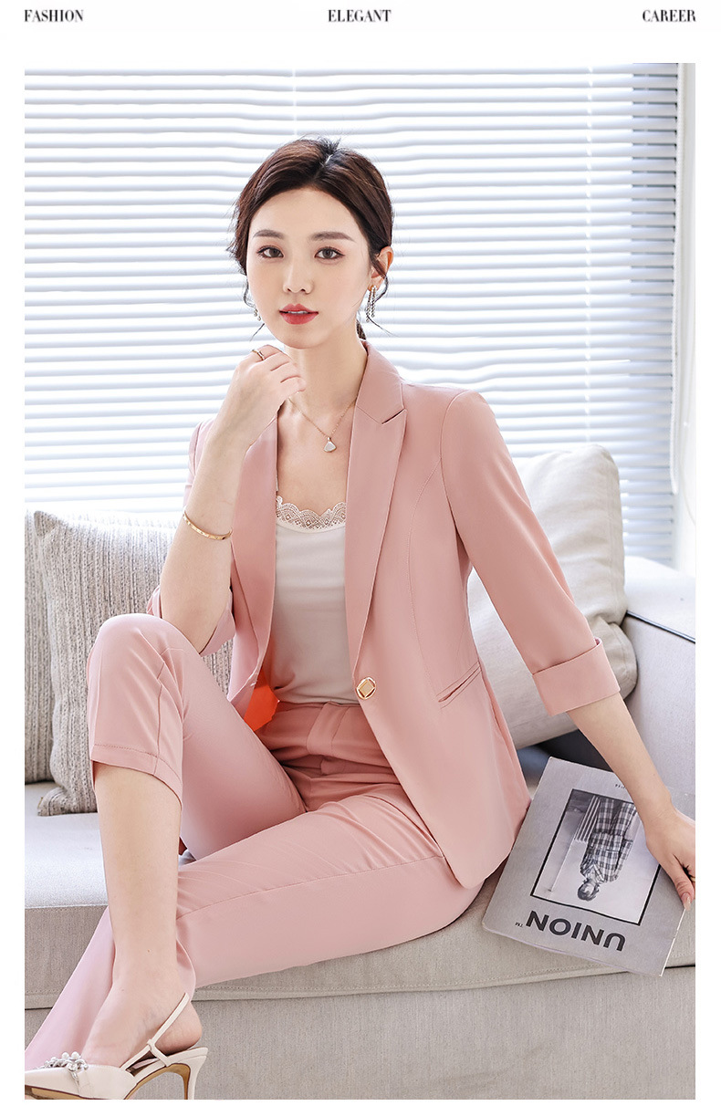 2024 핑크 세븐 포인트 슬리브 코트 여성 봄과 여름 OL 패션 슬림핏 슬리밍 미드 슬리브 비즈니스 착용 바지 바지 작업복스토어 가기