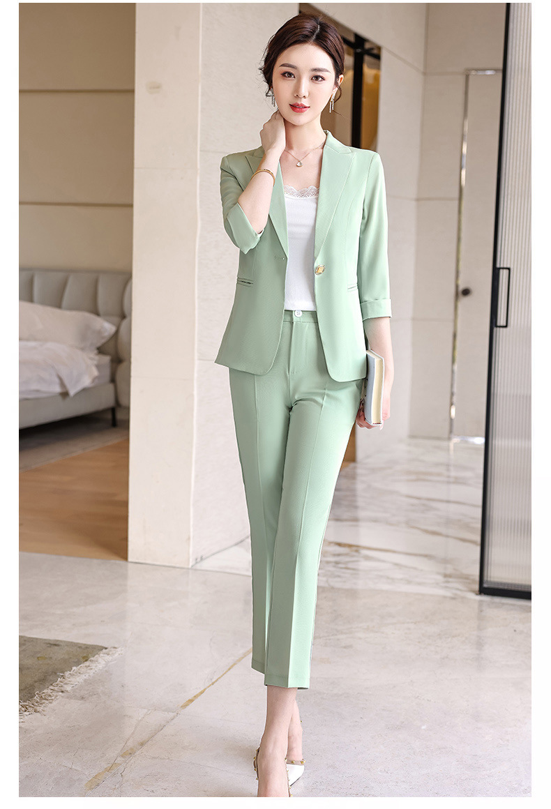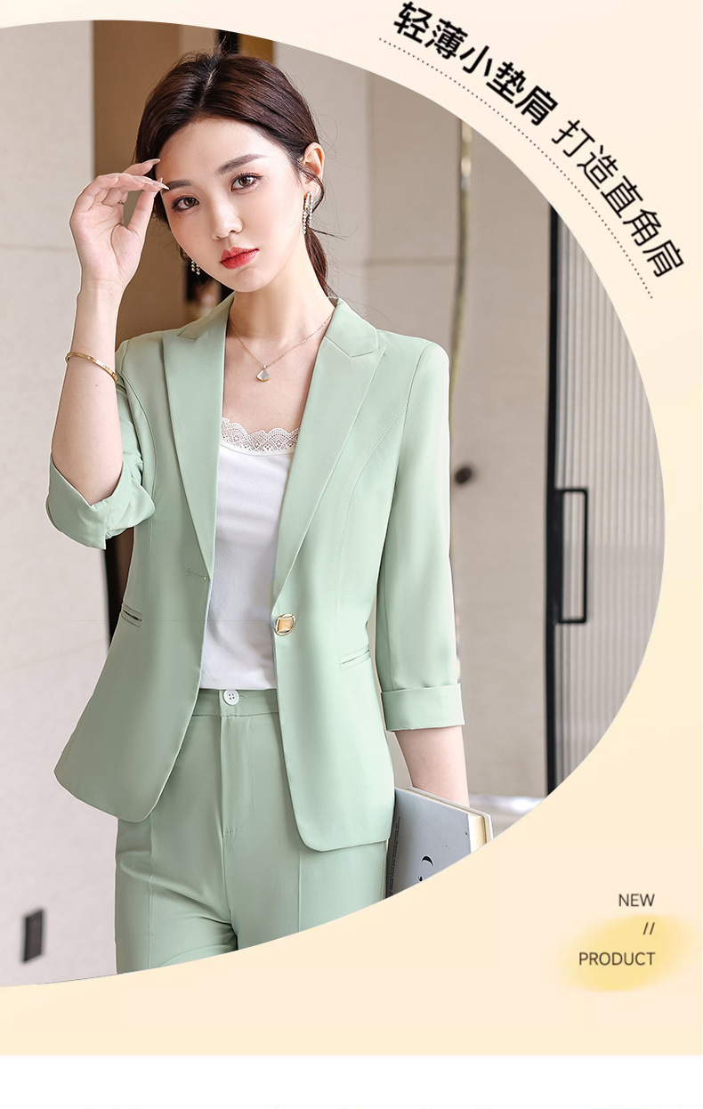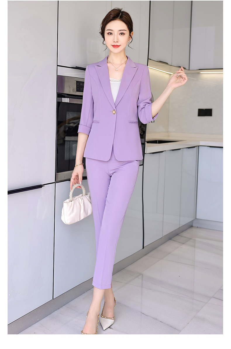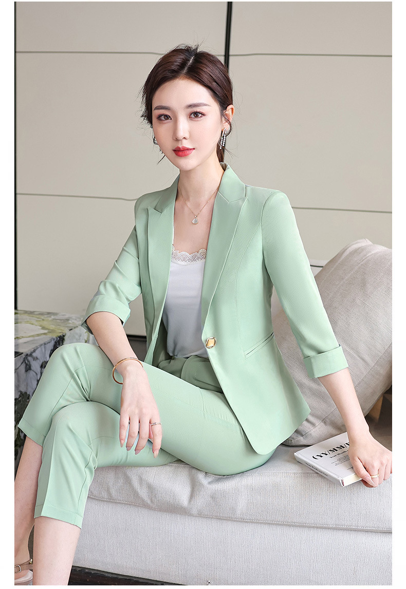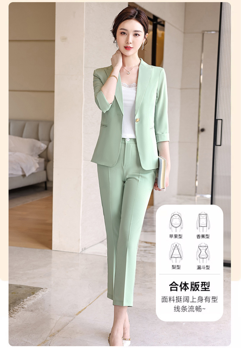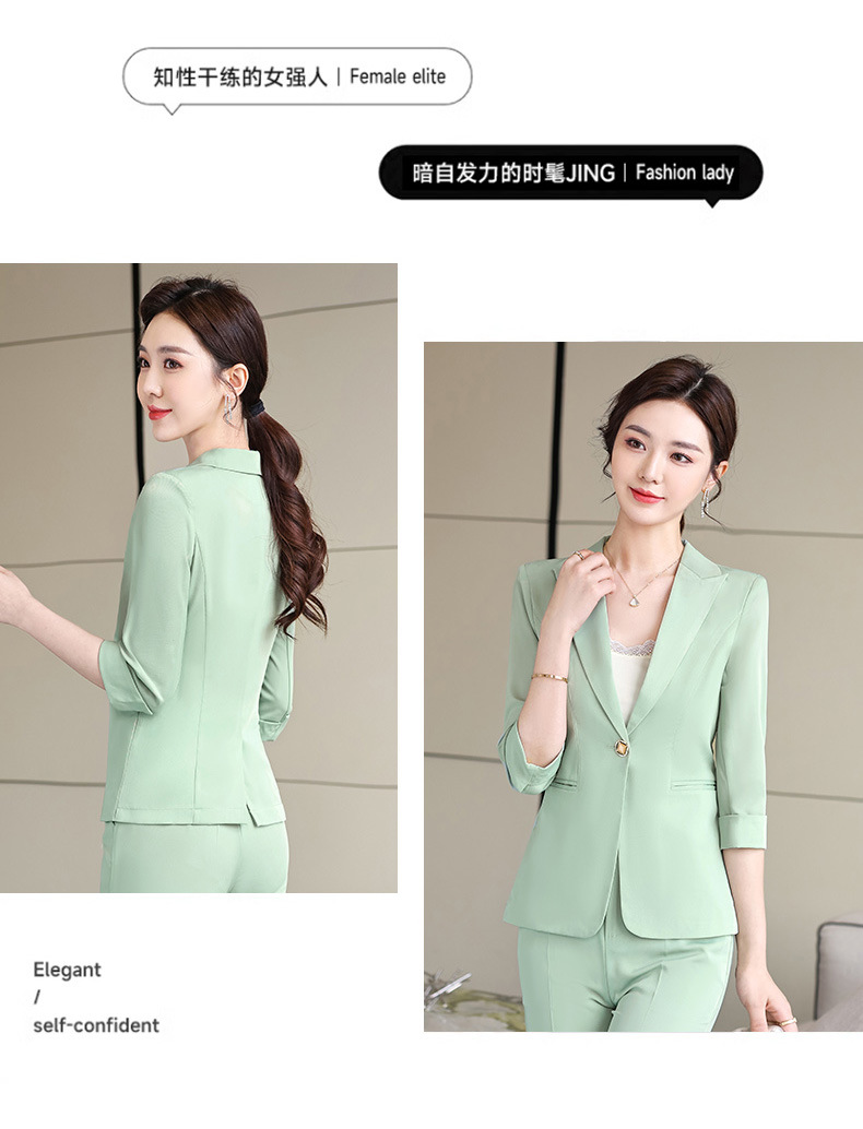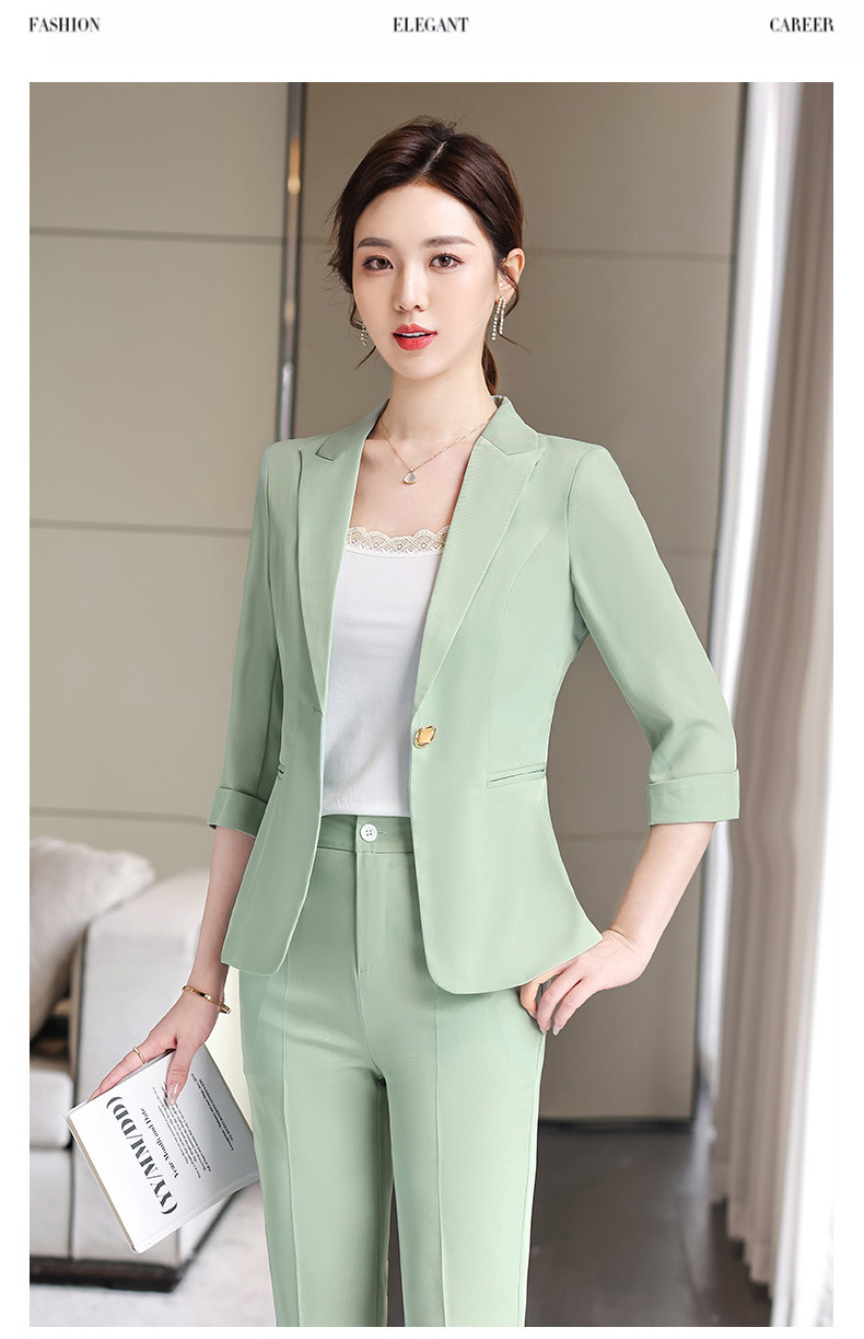 2024 핑크 세븐 포인트 슬리브 코트 여성 봄과 여름 OL 패션 슬림핏 슬리밍 미드 슬리브 비즈니스 착용 바지 바지 작업복스토어 가기