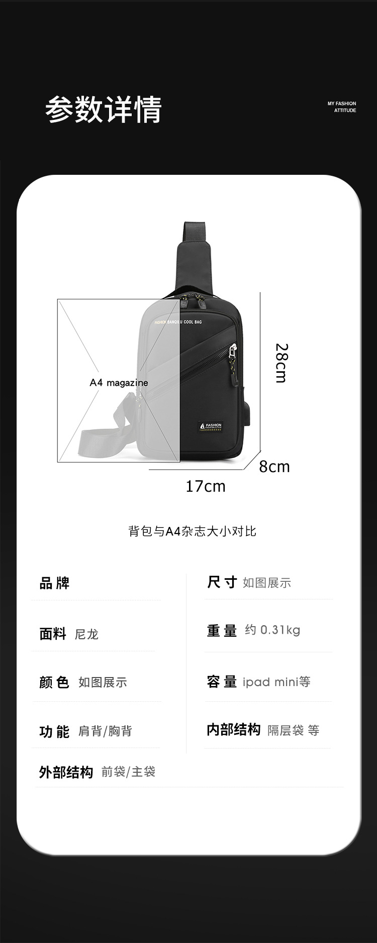 2024 봄과 여름 새로운 캐주얼 남성 가슴 가방 유행 대용량 크로스 바디 가방 나일론 천 어깨 가방스토어 가기