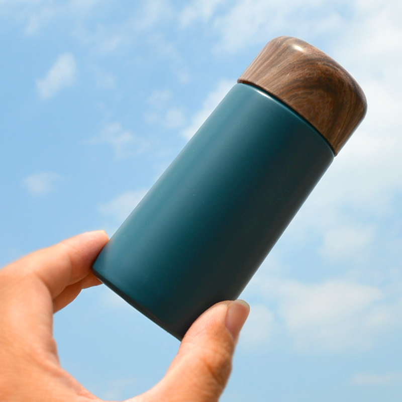 ✅ 150ml 미니 물컵 보온병 컵 신선하고 트렌디 한 나뭇결 복고풍 스타일 컵 여성용 소형 및 휴대용 304 스틸