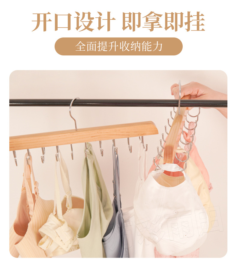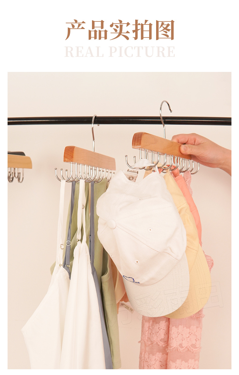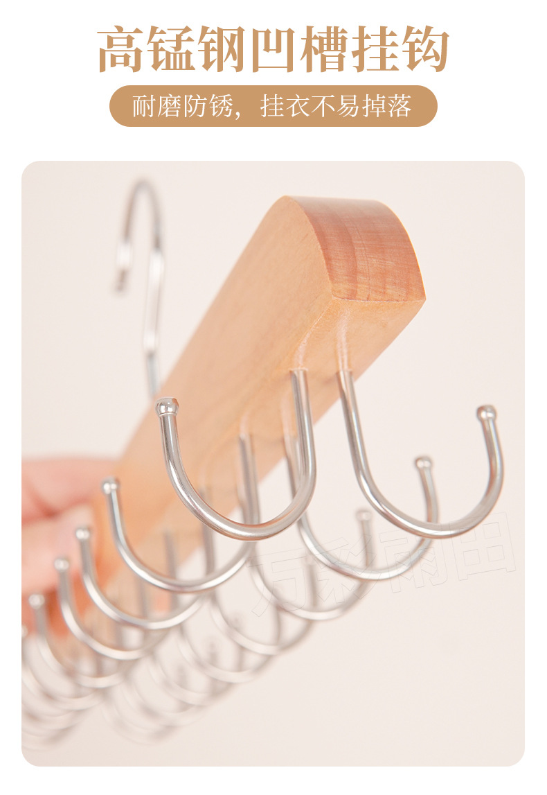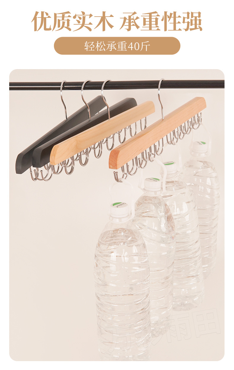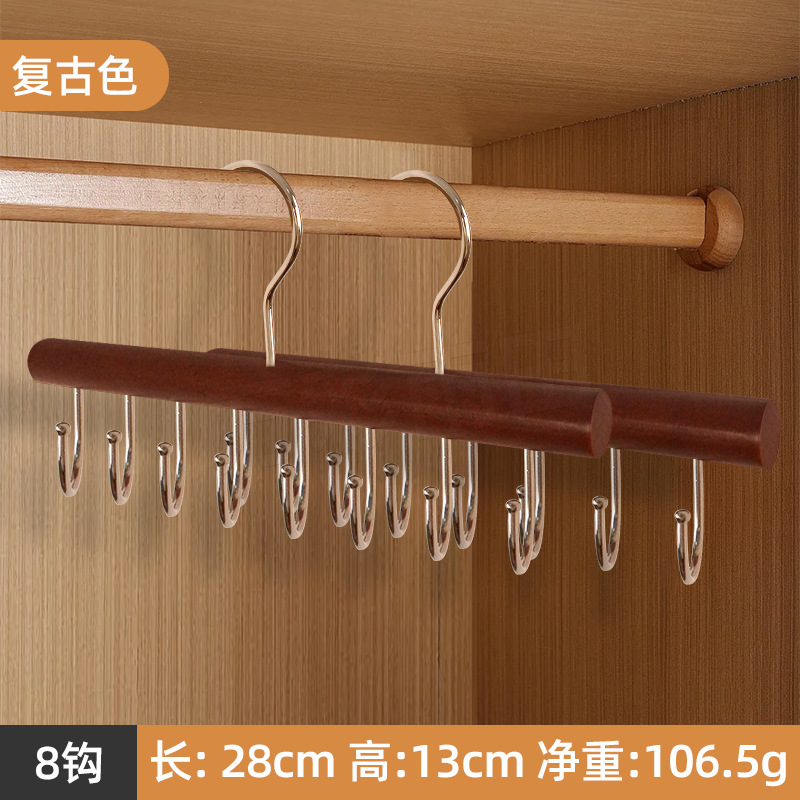 도매 단단한 나무 다기능 타이 랙 원활한 미끄럼 방지 보관 의류 벨트 14 훅 옷걸이 모자 옷 랙스토어 가기