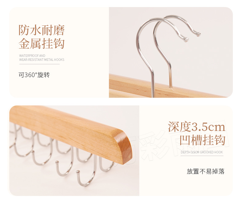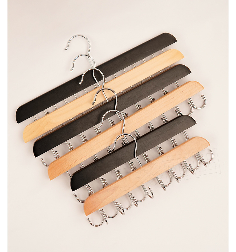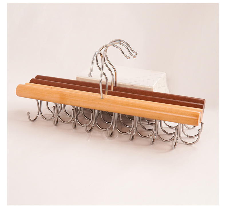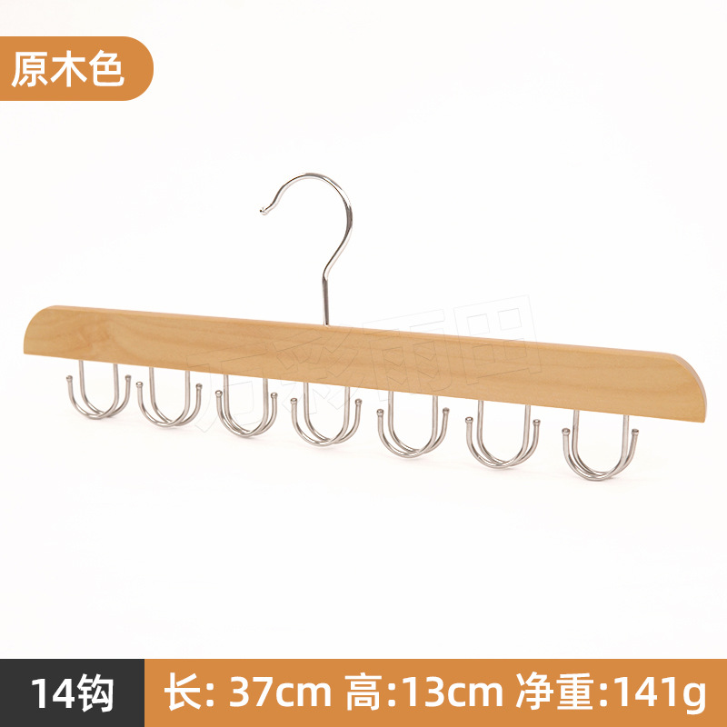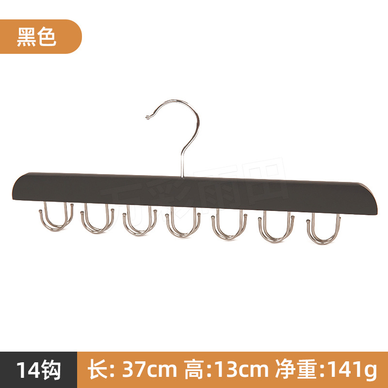 도매 단단한 나무 다기능 타이 랙 원활한 미끄럼 방지 보관 의류 벨트 14 훅 옷걸이 모자 옷 랙