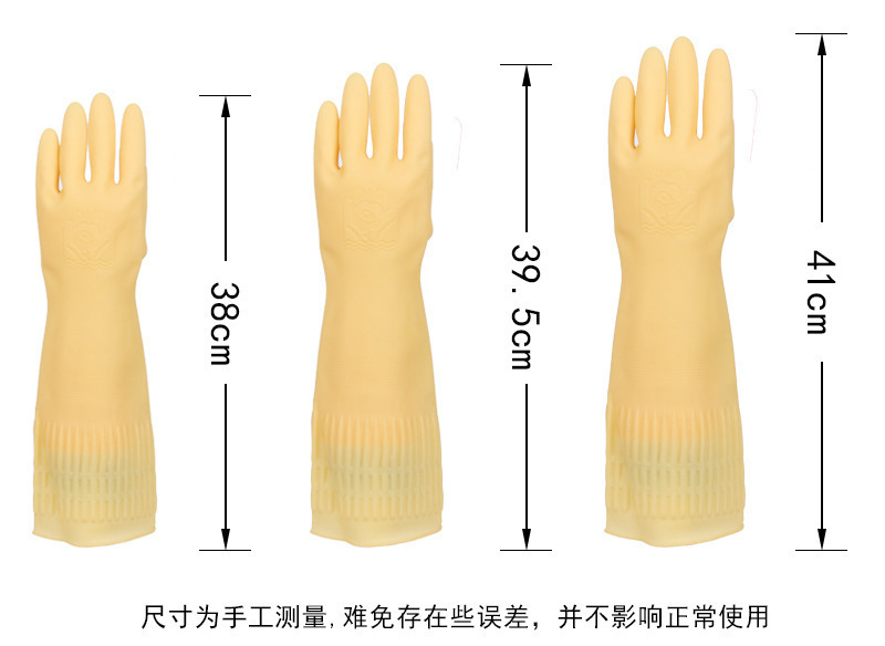 Baijiebang 길어진 노란색 라텍스 장갑 가정용 청소 접시 방수 노동 보호 38CM 고무 소고기 산업스토어 가기