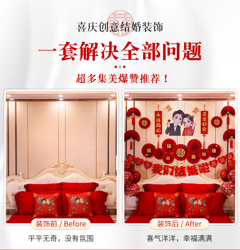 여성용 웨딩룸 레이아웃 세트, 웨딩 침실, 웨딩 레터링 장식, 남성용 웨딩, 새 집, 거실 장면, 왕진스토어 가기
