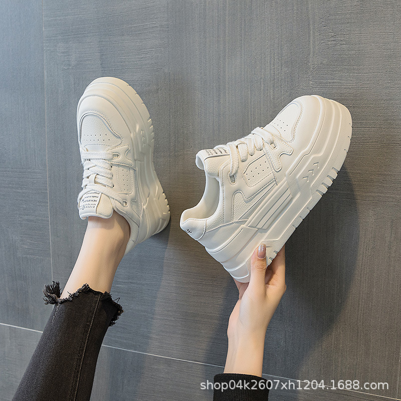 여성을위한 흰색 신발 여름 새 아빠 신발 두꺼운 밑창 플랫폼 신발 다목적 증가 통기성 스포츠 및 레저 여성 신발스토어 가기