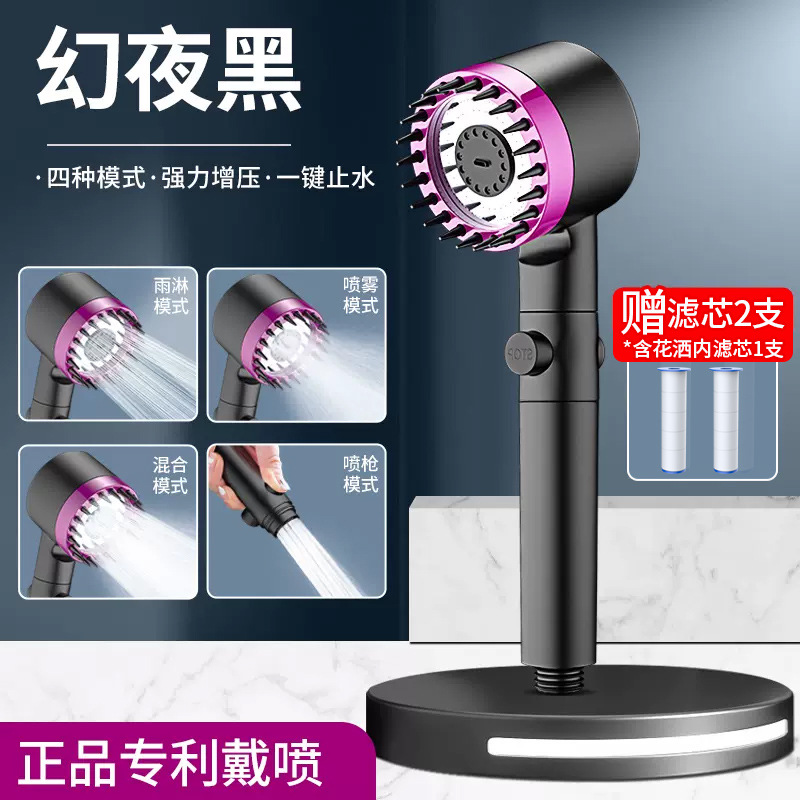 • [매직나이트 블랙다이스프레이] H9 업그레이드된 슈퍼차지 필터 샤워헤드(마사지 브러쉬 및 무료 필터엘리먼트_2 포함)