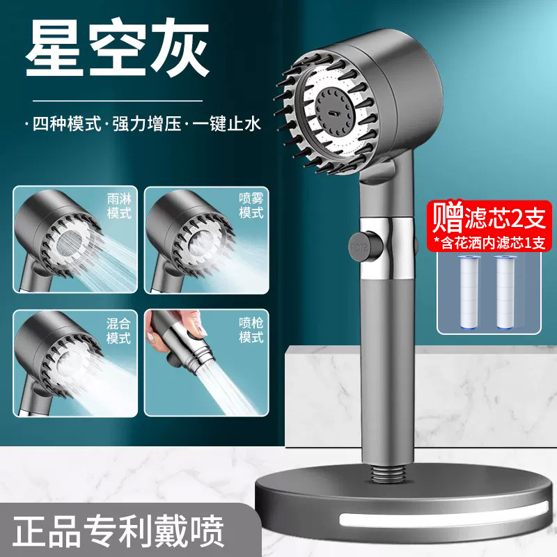 • [스타리 스카이 그레이-다이 스프레이] H9 업그레이드된 슈퍼차지 필터 샤워헤드(마사지 브러시 및 무료 필터 엘리먼트_2 포함)