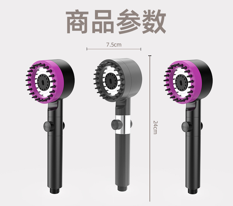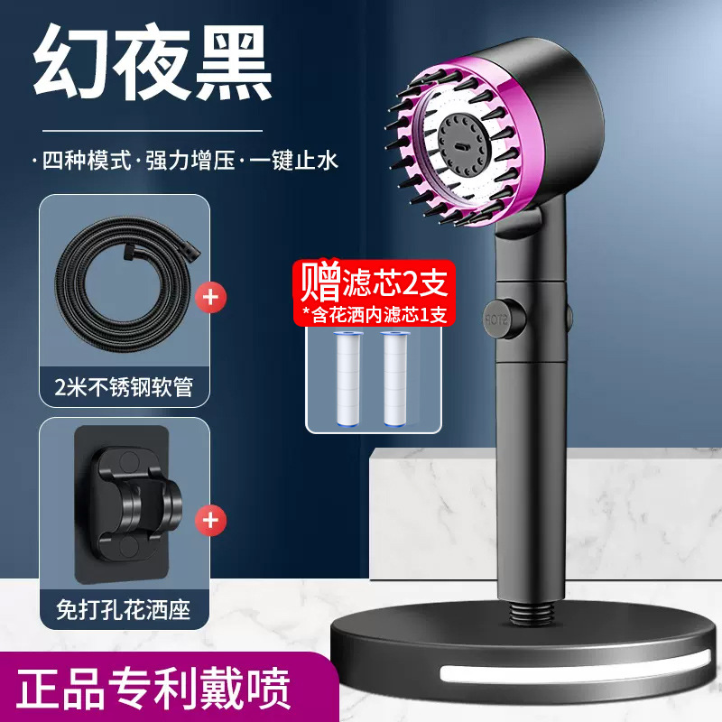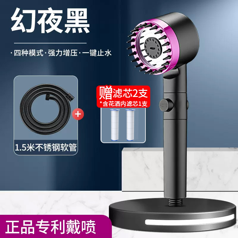 • [블랙세트1] 마사지 브러시가 포함된 강력한 가압 필터 샤워기 + 방폭 호스 1.5m개 + 필터 엘리먼트 2개