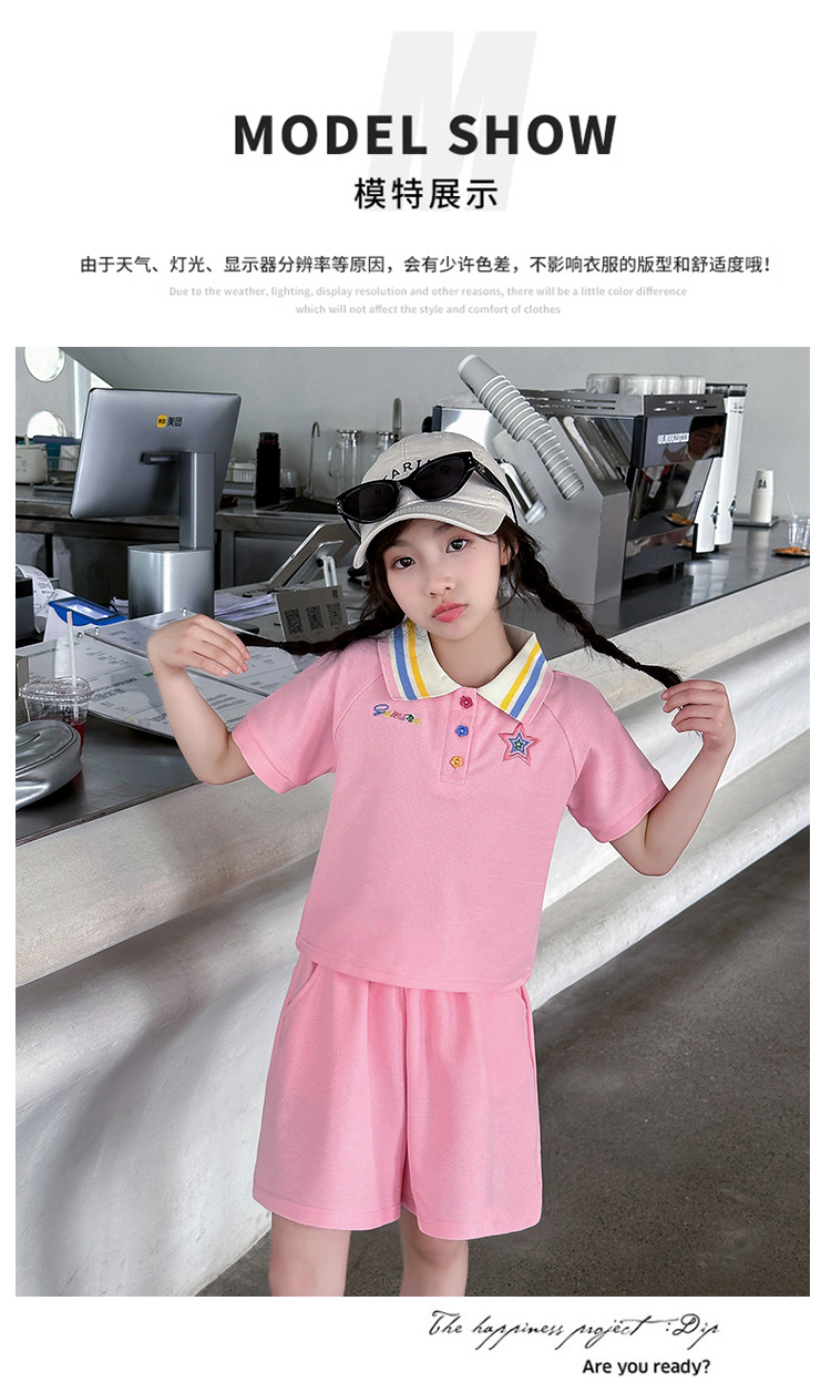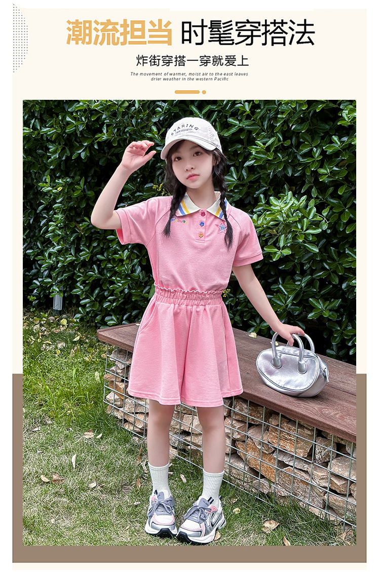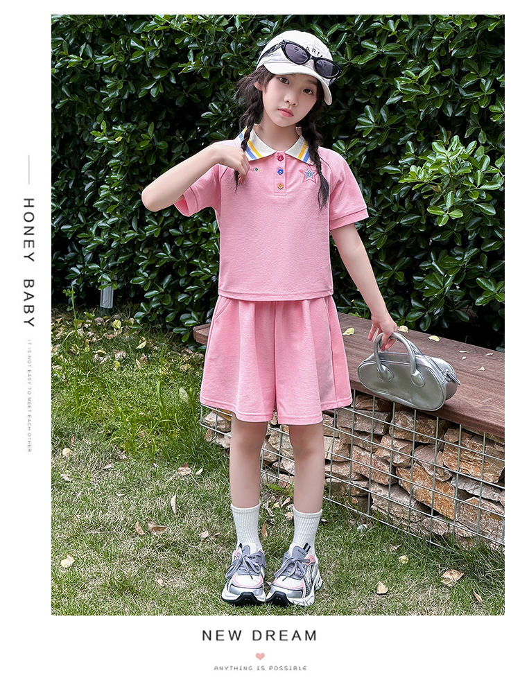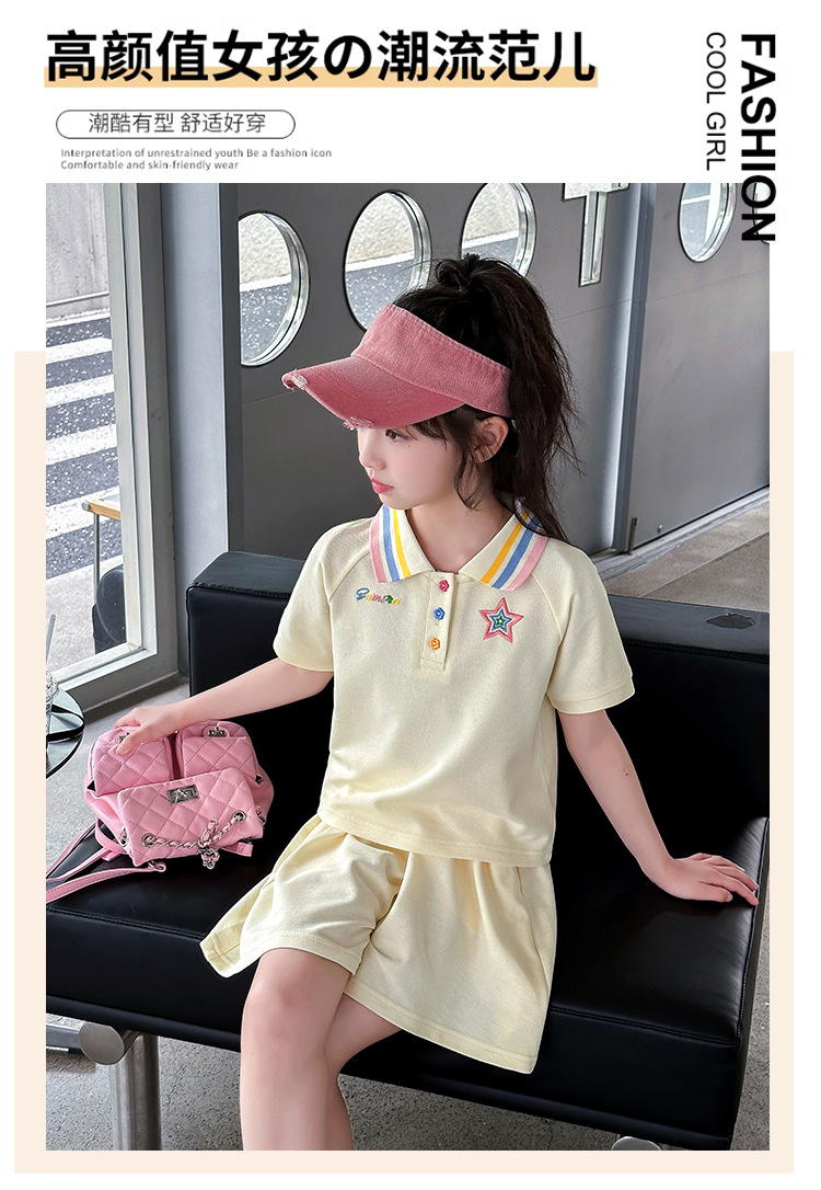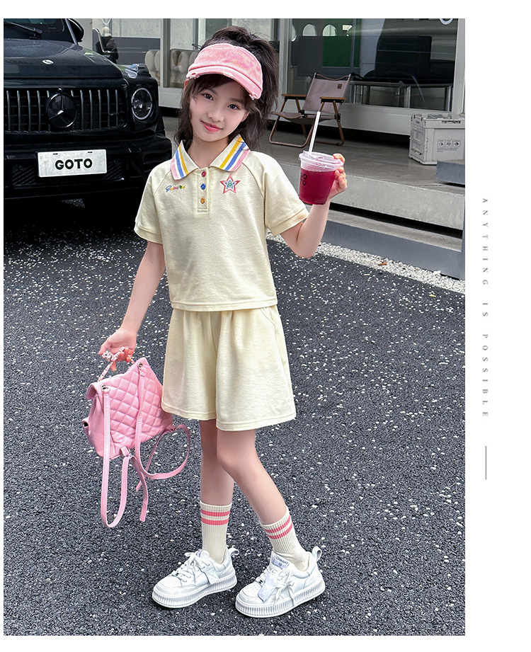 여자 여름 패션 폴로 세트 2024 새로운 여성의 보물 서양 스타일 자수 5 점 별 폴로 칼라 짧은 바지 세트 트렌디스토어 가기