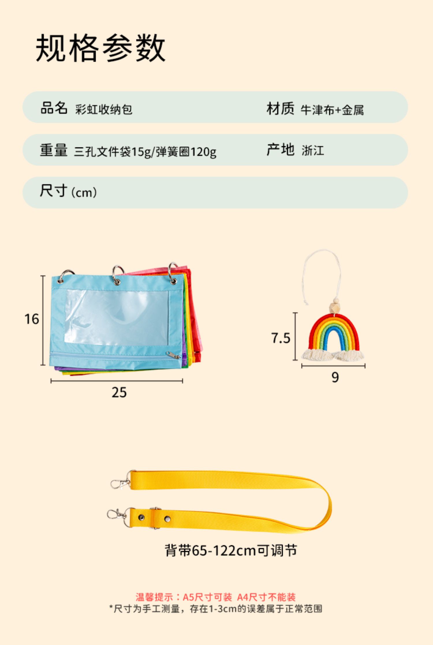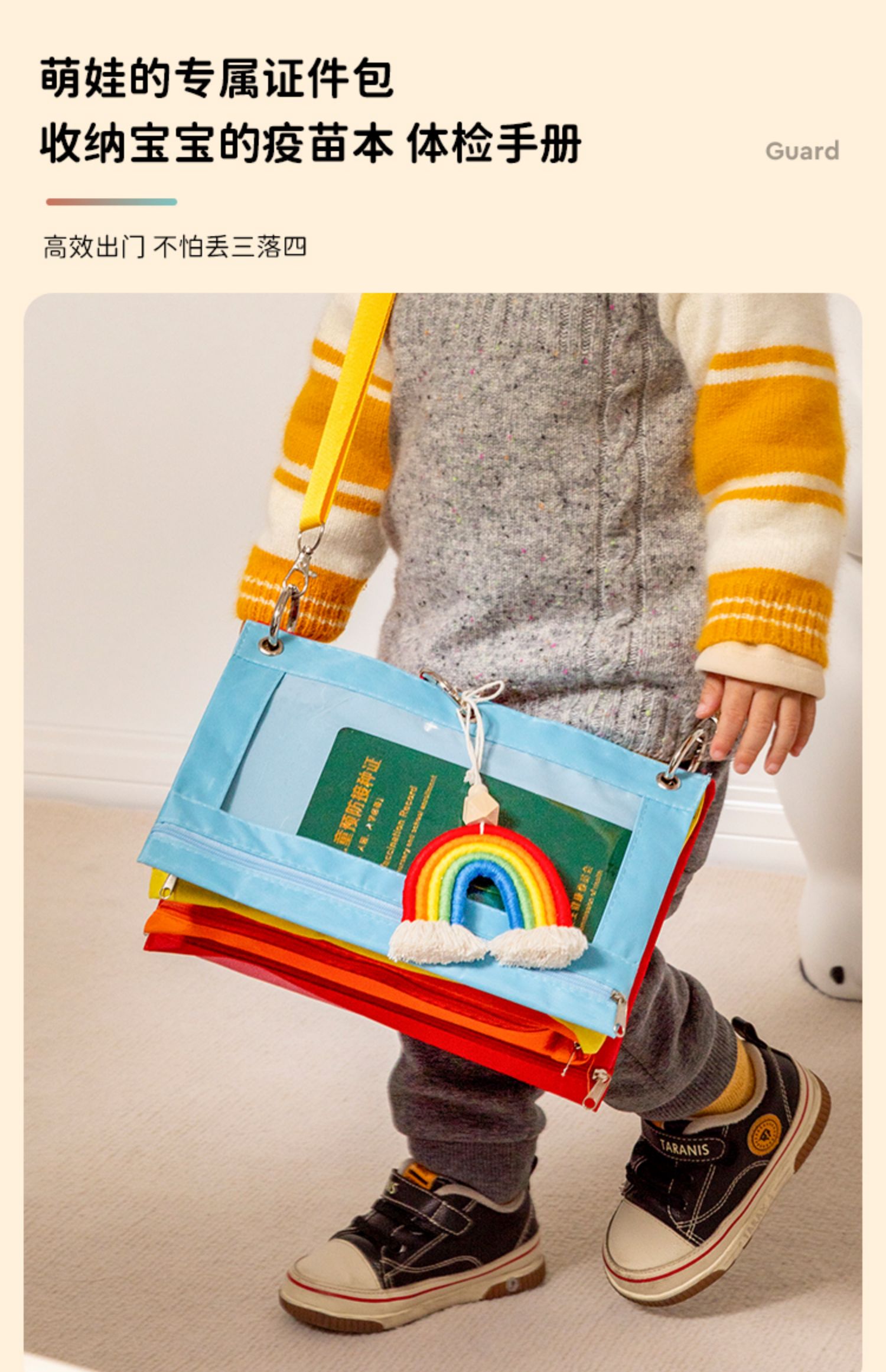 15N 무지개 저장 가방 아기 백신 A5 인증서 가방 가구 계정 이 여권 적합 가방 어린이 어깨 크로스 바디 백스토어 가기