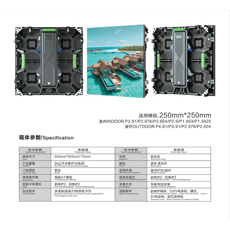 실내 및 실외 LED 풀 컬러 대여 화면 P3.9P2.6 항공 박스 바디 전자 스크린이있는 높은 새로 고침 률 다이 캐스트 알루미늄