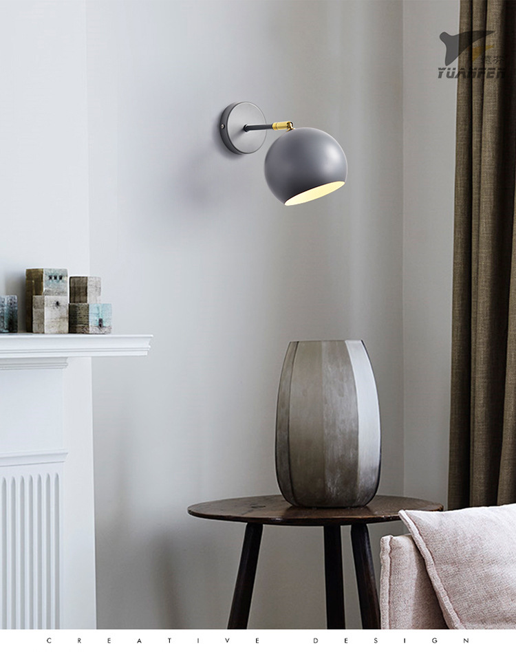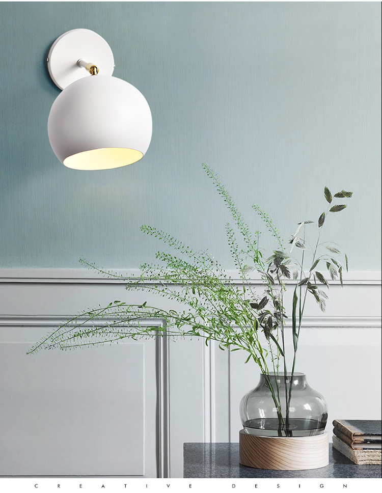 국경 간 북유럽 새로운 현대적인 미니멀리스트 침실 식당 램프 라운드 커버 거실 흰색 창조적 인 침대 옆 벽 램프 제조 업체