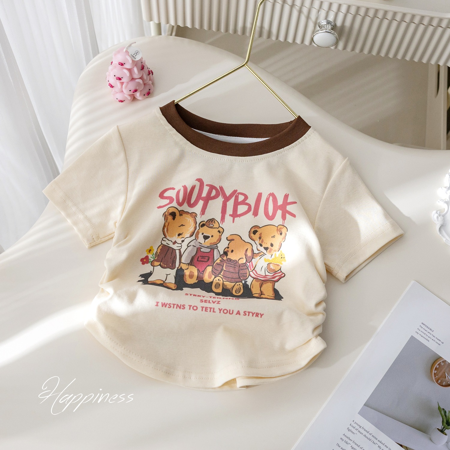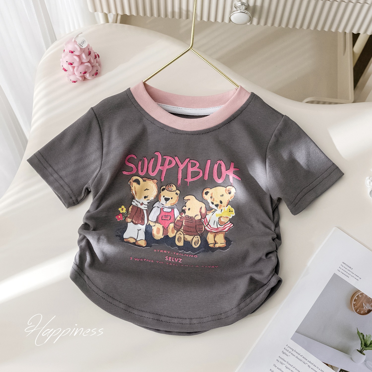 여자 여름 인터넷 트렌디 핫 걸 스타일 티셔츠 귀여운 곰 인쇄 반팔 옷 아기의 유행 슬림 반팔 티셔츠스토어 가기