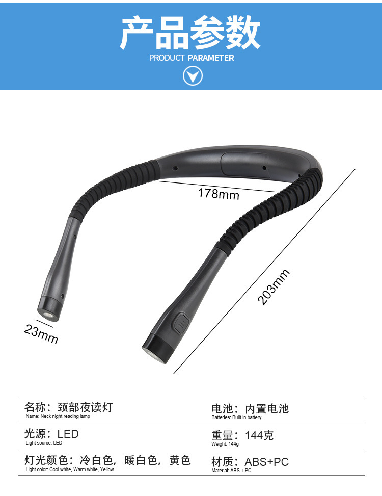 침실 USB 독서 램프 매달려 목 램프 호스 조정 눈 보호 독서 램프 야외 밤 달리기 조명 교수형 목 램프