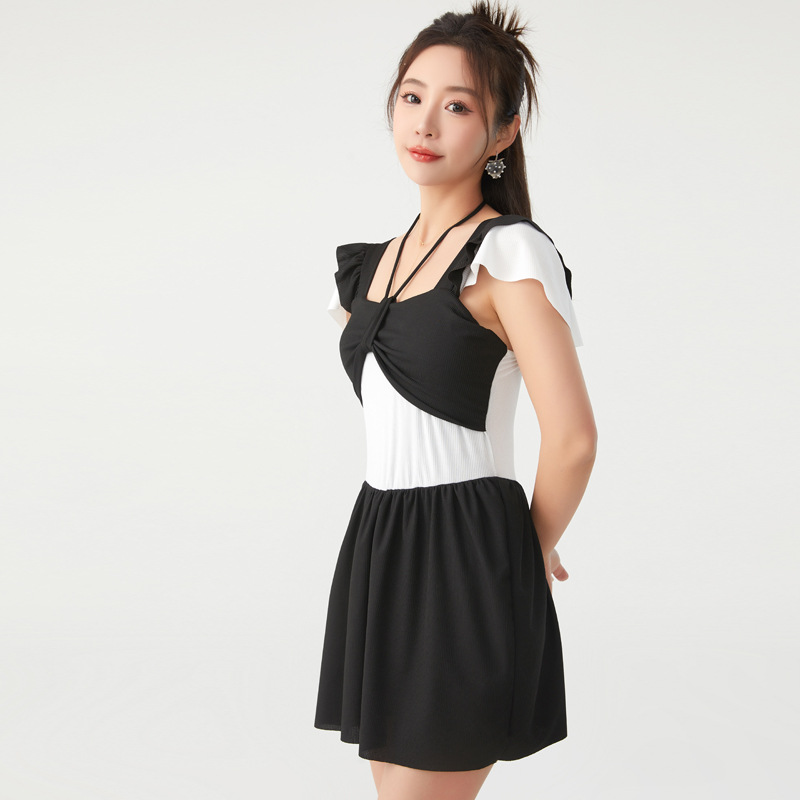 유행 여자 수영복 여성의 보수적 인 배꼽 덮음 슬리밍 스커트 스타일 결합 된 고기 커버 작은 가슴 벨트 유방 패드 반대로 빛 수영복