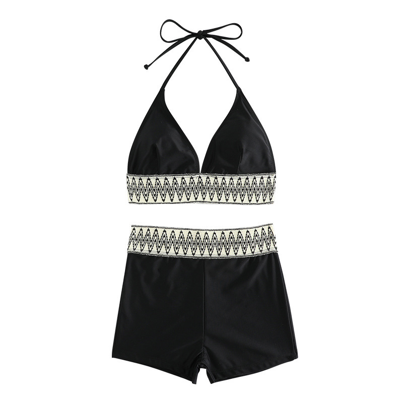 2024 유럽과 미국의 새로운 분할 수영복 여성의 섹시한 백리스 목 벨트 비키니 아마존 대외 무역 인쇄 비키니스토어 가기