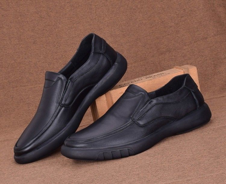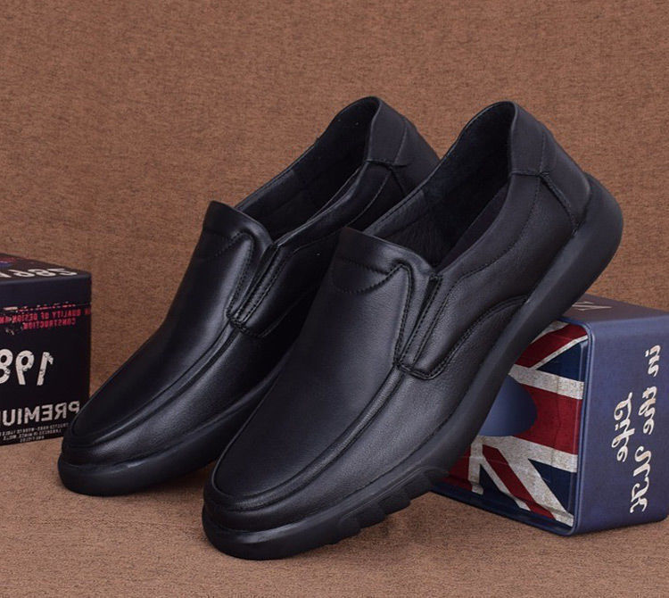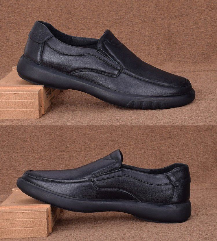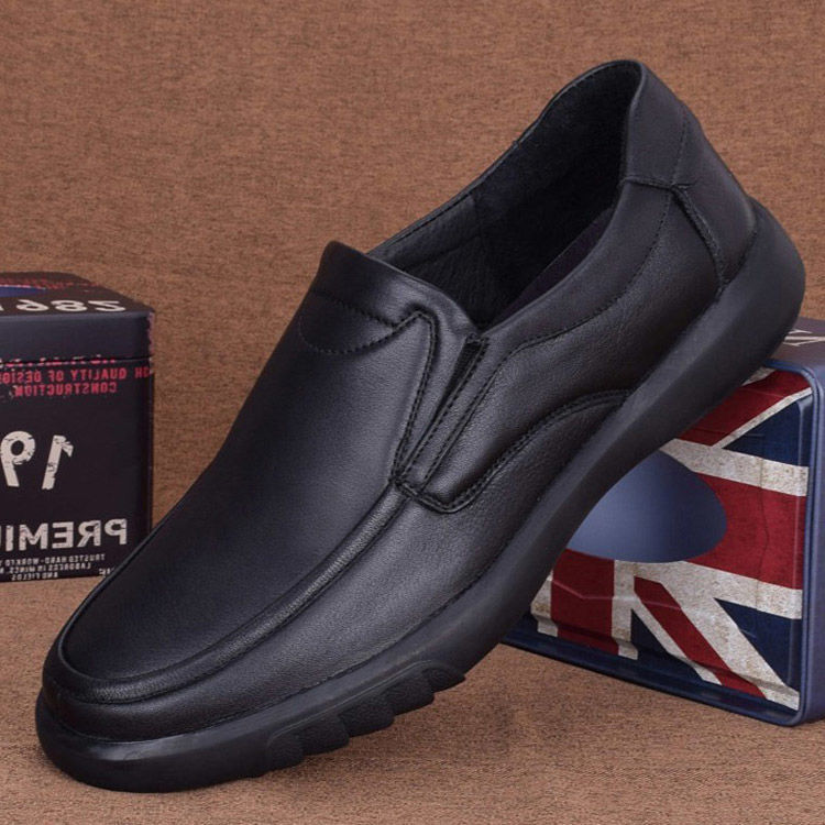 가죽 신발 남성 정품 가죽 미끄럼 방지 캐주얼 신발 내마모성 부드러운 표면 슬립 온 비즈니스 가죽 신발 중년 아빠 신발 대형 남성 신발스토어 가기